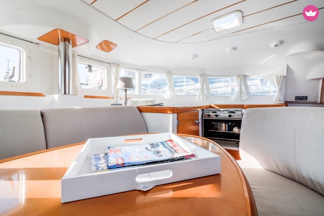 Description of Catarina's catamaran Come sail with us. See all of our packages, and feel free. It´s a pleasure for us to make your wishes come true. We welcome you aboard our Lagoon 410 s2 Our specialized crew will guarantee all sailing operations as well as a premium service on-board. This will turn coastal sighting into a memorable and relaxing experience. Private Charter: • Half Day: Enjoy a great cruising with your soul mate, family or friends on an exclusive basis. Schedule: 10am to 1pm, 2pm to 5pm, 6pm to 9pm. Duration: 3 hours • Full Day: Get tanned, relax, read, take a nap, jump in the water, get a drink or some fresh fruit. Spend the day at the sea. We take care of the rest and make sure you’ll have a memorable day. Schedule: 10am to 5pm 1.30 pm to 8.30pm Duration: 7 hours All prices include welcome drink.
