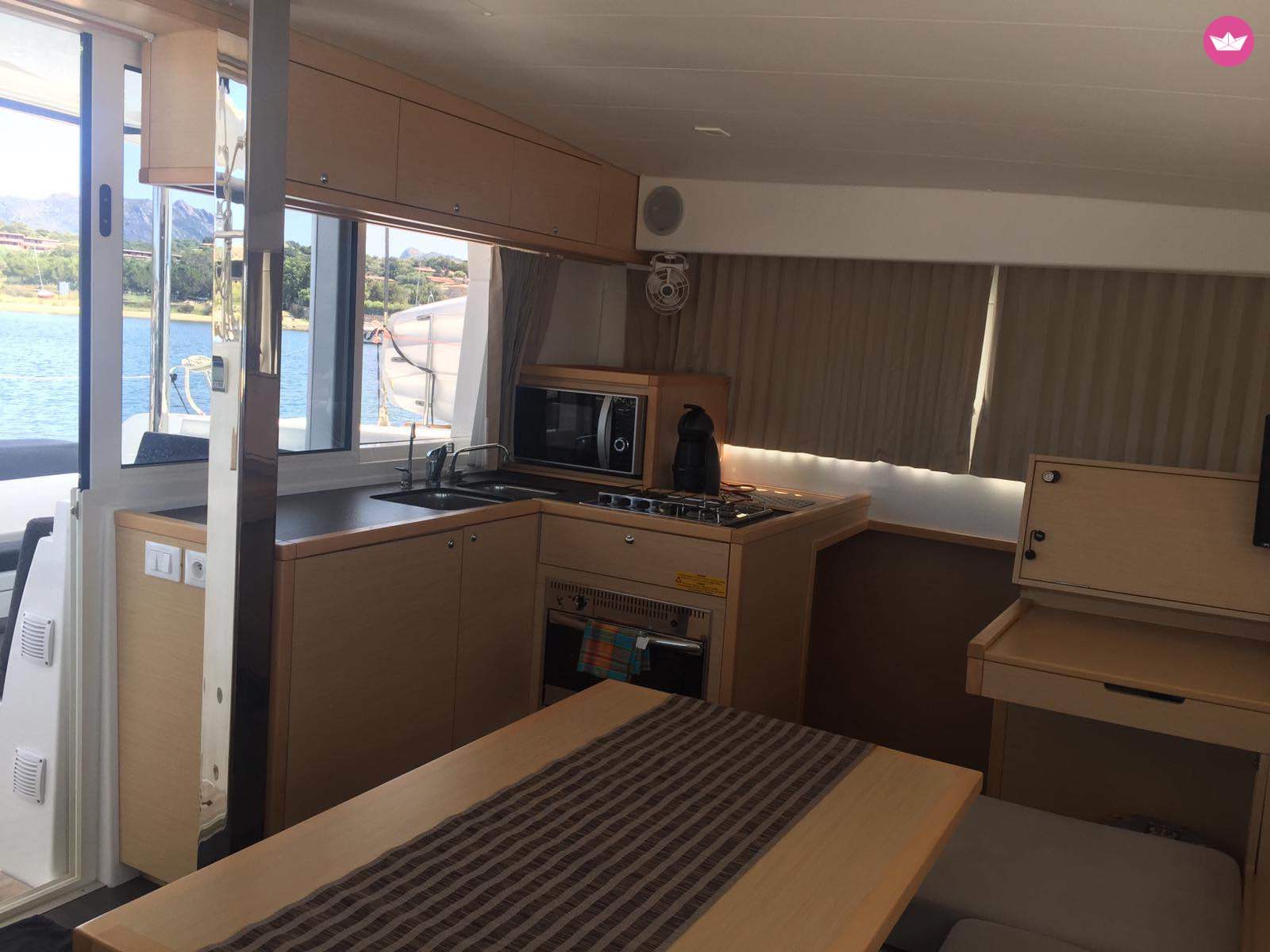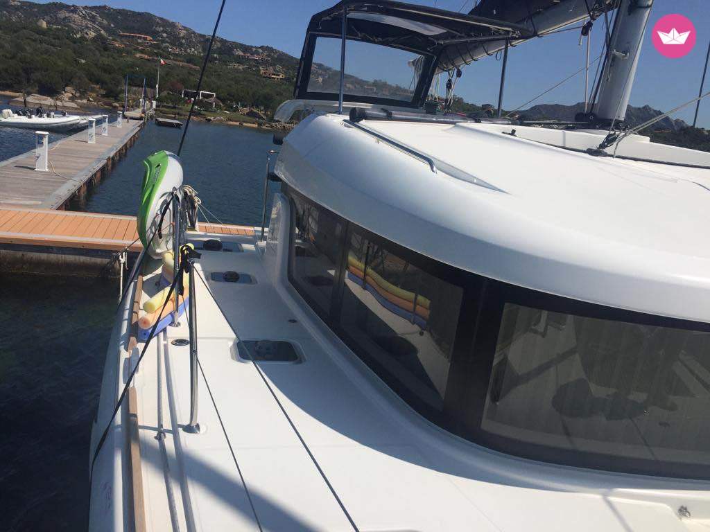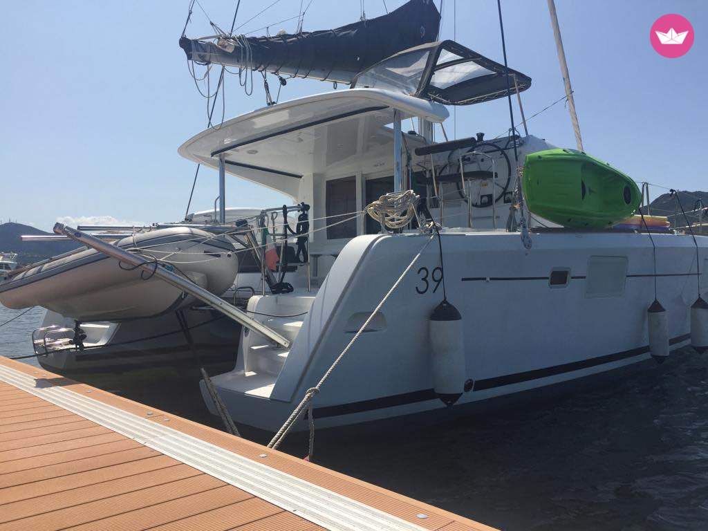 Description of Alessandro's catamaran Lagoon 39, full optional catamaran of 2017. on board USB in all cabins, external barbeque, beer dispenser offered. Watermaker, 600 lt water tank, double fridge, tender, music. all standard safety equipment. Boat practically new. two 45 hp yanmar engines. used only by me, both for family outings and for weekly and daily charters. mainly I sail in the south of Corsica in the splendid Lavezzi, Cavallo, Isola Piana, and the magnificent bays like San Cipriano, la Rondinara and Santa Manza. The creeks like Fazio, very close to the characteristic Port of Bonifacio and its characteristic restaurants. At 45 I crowned the dream of buying a catamaran and turning my passion into a job. I personally picked up my boat in La Rochelle and sailed for 2,000 miles to Sardinia. A wonderful navigation thanks to which I learned to know my boat and its and my limits, a beautiful experience. Allimac, my Lagoon 39 is found in winter in the Port of Porto Rotondo and in summer in the small port of the Gulf of Cugnana named Sa Jaga Brujada (Porto Rotondo) The price of the skypper is added to the cost of the rental only for the weekly. Euro 180 per day.