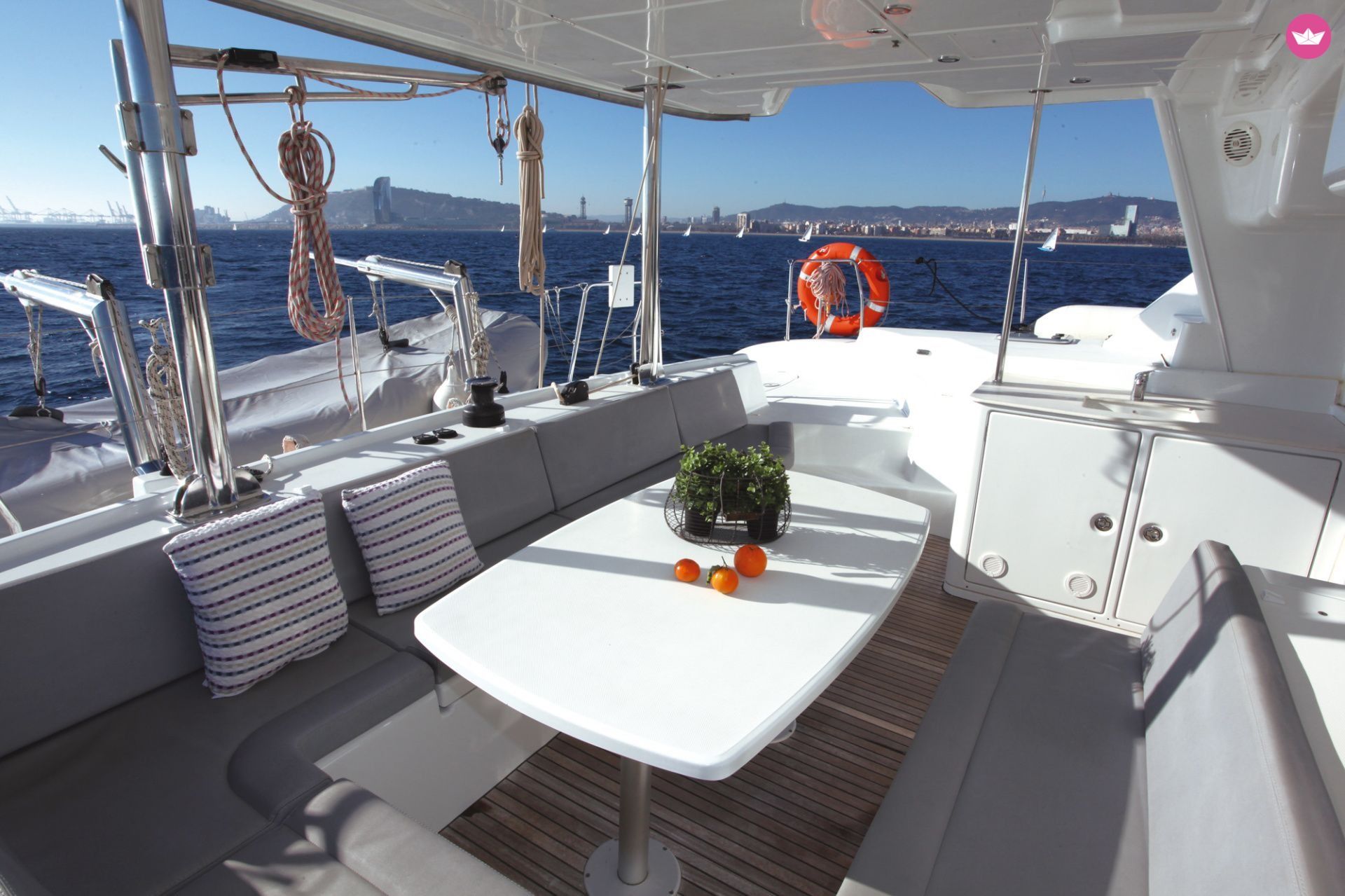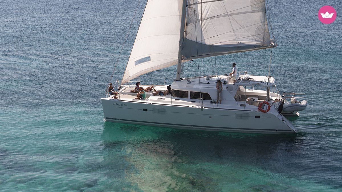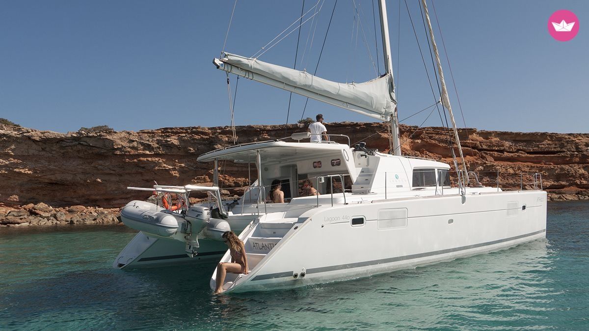 Description of Pablo 's catamaran , El Atlantis se alquila en Ibiza y Formentera durante los meses de primavera y verano y en Barcelona durante el invierno. Es un catamarán de 44 pies de eslora, espacioso y sofisticado; la opción ideal para todo aquel que busca unas vacaciones en el mar sin renunciar a comodidad alguna. Con capacidad para un total de 12 personas. Dispone de potabilizadora, guinches eléctricos, generador, baños eléctricos, equipo de música HI-FI (con conexión Ipod-mp3 y altavoces BOSE interiores y exteriores), televisión de leds de 32”, gadgets para los clientes (pádel surf y equipos completos de esnórquel), etc. Su completo equipamiento lo dota de gran autonomía. Las características de un catamarán, hacen que proporcione amplios espacios diferenciados – tanto interiores como exteriores -, ideales para relajarse. En la proa se encuentra una magnífica terraza sobre el mar, con dos redes suspendidas sobre el agua, en las que disfrutar del suave y mágico balanceo de las olas. Su mínimo calado te permite fondear prácticamente sobre la arena, en la infinidad de rincones idílicos que encontraréis en Ibiza y Formentera. Mientras sus dos cascos favorecen una navegación segura, estable y placentera. Por su confortabilidad, el Atlantis es el barco ideal para rodajes de publicidad y cine. También es la mejor opción como barco-hotel para aquellos que buscan una opción romántica y diferente de hospedaje, o para los que quieren un escenario único y personal para todo tipo de ceremonias. Lagoon 440 Ibiza!!! Extras - Patrón: 200€ /día; 1400€ /semana. - Cocinero/a: 170€ /día; 1190€ sem. - Azafata: 140€ /día; 980€ sem. - Ropa de cama y toallas: 20€ /pers. - Limpieza final: 180€ /semana. Incluidos en el precio: - IVA - Seguro del barco y ocupantes - amarre puerto base (Marina Badolona), embarque y última noche en amarre en el centro de Ibiza (Club Náutico Ibiza) - servicio de supermercado, paddle surf y dinghy con motor de 20 cv.
