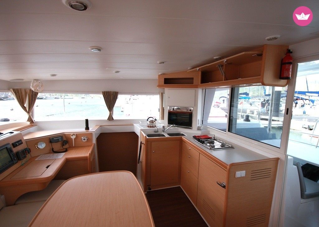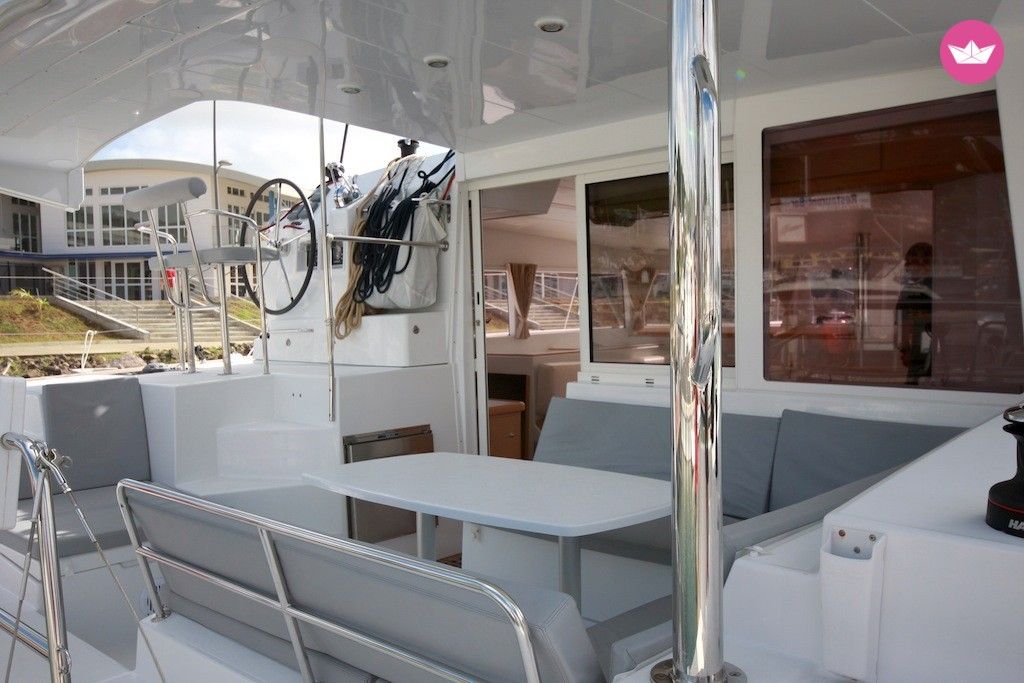 Description of Jean-Claude's catamaran , Nous sommes propriétaire d’un catamaran à voiles de type LAGOON 400 dénommé NEMESIS, exploité aux Antilles pour des stages croisières ou des croisières avec skipper. Le départ se fera du port du Marin au sud de la Martinique. Alors n’hésitez pas, succombez au plaisir de la navigation dans des îles paradisiaques. Larguez les amarres, prenez la barre d’un catamaran et explorez la Martinique, vers le sud Sainte Lucie, Saint Vincent, et surtout l’archipel des Grenadines, ou vers le nord la Dominique, la Guadeloupe (les Saintes, Marie Galante). Avantages des stages croisières : Si vous n’êtes pas sûr de pouvoir prendre la responsabilité d’un catamaran en location simple par manque d’expérience, ou si vous n’arrivez pas à regrouper assez d’amis navigateurs pour faire un équipage au moment où vous pouvez partir, ou bien si vous estimez ne pas connaître suffisamment la zone de navigation pour en profiter pleinement, la formule des stages croisières est idéale pour vous : vous vous contentez de réserver une place ou une cabine sur ce multicoque et un skipper moniteur s’occupe de tout. Vous pouvez naviguer et manœuvrer si vous le souhaitez avec la supervision du moniteur, ou perfectionner votre navigation, ou simplement vous laissez mener. Aucune obligation ne vous est faite et la croisière formation peut devenir une simple location à la cabine ou charter à votre volonté. Le skipper moniteur assure en outre la sécurité et l’ambiance, s’occupe des formalités, vous laisse naviguer en vous conseillant et vous fait découvrir les meilleurs spots. Cette croisière de rêve est accessible à partir de 90 €/jour par personne. Descriptif du bateau: Le bateau est un catamaran de type LAGOON 400 de 12 mètres de long par 7,25 mètres de large, comprenant 4 cabines doubles équipées chacune d’une salle d’eau privative avec douche et WC. Plus deux couchages dans les pointes avant. Ce multicoque possède 2 moteurs diesel de 40CV. Une annexe à moteur de 6CV. Une grand voile à corne lattée et un gennaker. Il est parfaitement équipé pour votre confort: Immense carré est entièrement entouré de baies vitrées procurant une grande luminosité intérieure. Cuisine complète avec réfrigérateur, gazinière, four, four à micro-onde 220V, évier 2 bacs eau chaude, eau froide. Couverts et instruments de cuisine au complet. Téléviseur, radio avec enceintes intérieures et extérieures. Chauffage complet (de type Webasto) avec ventilation des cabines et du carré. Table à cartes avec tous les accessoires. Partout prises 12V et 220V alimentées sur secteur au port et en navigation par convertisseur 12V / 220V (2000W) et 4 batteries 160Ah en parallèle rechargées par panneaux solaires. Grand cockpit couvert d’un bimini rigide équipé de coussins et grande table pour repas extérieurs. Douche de pont avec eau chaude. 2 réservoirs d’eau de 300L. 2 réservoirs de carburant de 200L chacun. Guindeau électrique 1000W. Le poste de barre est ergonomique et couvert d’un taud de toile. Il regroupe l’ensemble des commandes et aides à la navigation qui sont doublées à la table à cartes. Elles permettent de surveiller la marche du bateau quel que soit l’endroit où l’on se trouve. Elles comprennent: 2 GPS traceurs 2 commandes de pilote automatique. 2 Sondeurs, anémomètres, loch speedomètres. 1 radar avec signaux visibles sur les deux traceurs. 1 VHF intérieure. L’ensemble des cordages (bouts) est ramené au poste de barre sur des coinceurs et 3 winchs dont 1 électrique permettant la manœuvre par un seul homme (seules les écoutes de gennaker sont séparées). Les équipements de sécurité complets pour dix personnes pour la navigation hauturière sont bien évidemment présents. Ainsi que des équipements de loisirs: Palmes, masques, tubas, cannes à pêche, barbecue. Pour plus de détails, contactez-nous via la messagerie du site.