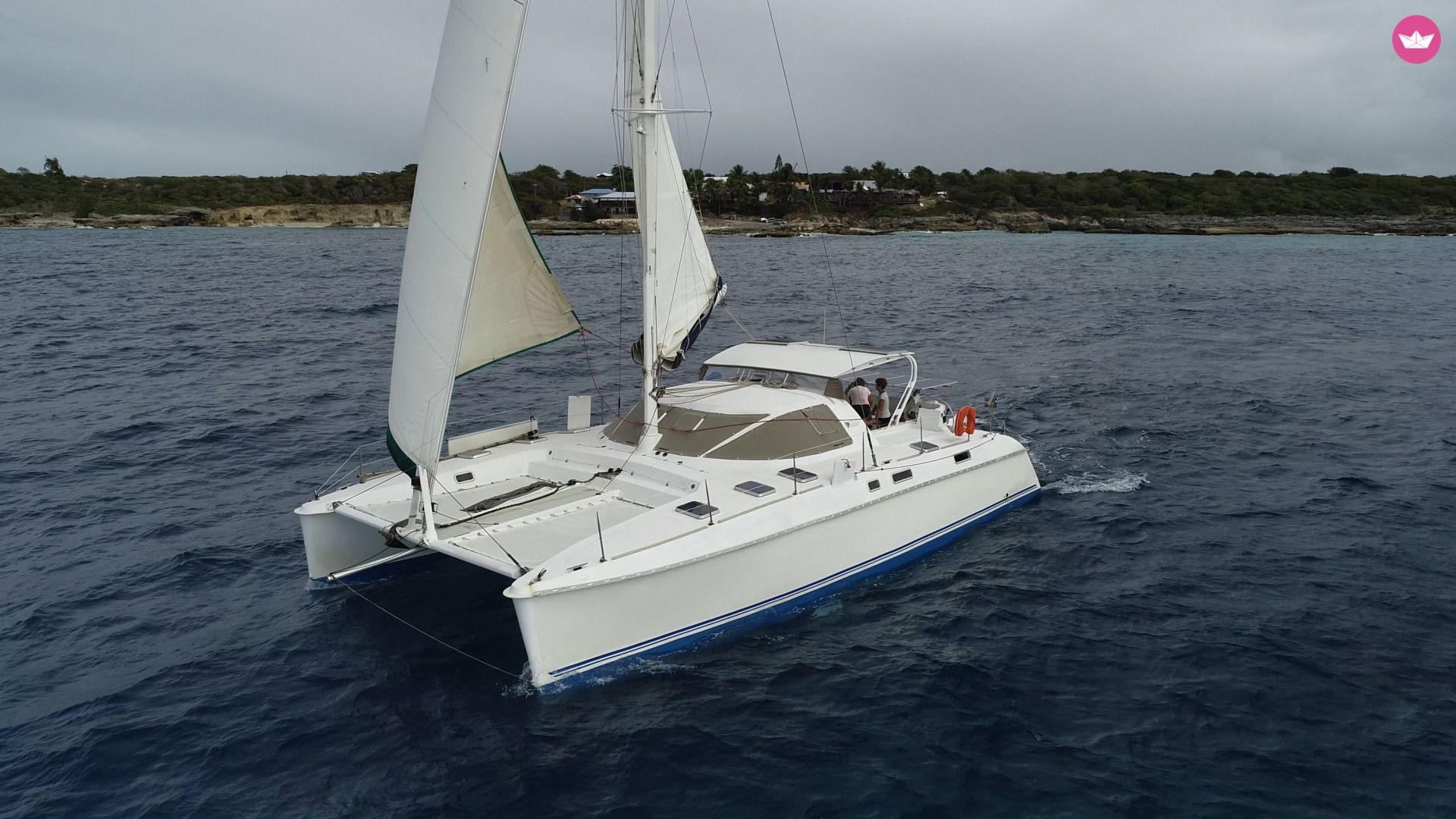 Description of Marc's catamaran , Nous vous proposons de venir partager nos navigations (minimum 1 semaine), nous sommes un couple de jeunes retraités. Frédérique et Marc plus de cinquante ans de navigation, propriétaires successivement de plusiers bateaux, une grande expérience de la Mer, Marc brevet d'état d'éducateur sportif deuxième degré voile,architecte d'une quinzaine de bateaux est toujours prêt à partager ses connaissances. Le bateau CHARLOTTE2 un CATANA42S catamaran à dérives de grande croisière,confortable et performant, qui a fait la réputation du chantier CATANA. Longueur 13 mètres Largeur 7 mètres déplacement moyen 7,5 tonnes 4 cabines doubles, 2 cabines simple, 4 cabinets de toilette. Nous mettons à disposition la coque bâbord,deux cabines doubles avec chacune son cabinet de toilette et une cabine simple à l'avant. Nous sommes actuellement en Martinique , nous vous proposons des navigations sur les Antilles. Nous vous attendons, n'hésitez pas à nous contacter pour nous faire part de vos projets. Nous pouvons nous adapter, sur le port de départ, la zone de navigation, le thème; enseignement, découverte de la Mer... C'est vos vacances, votre croisière, nous sommes là pour que tout soit le plus agréable possible.