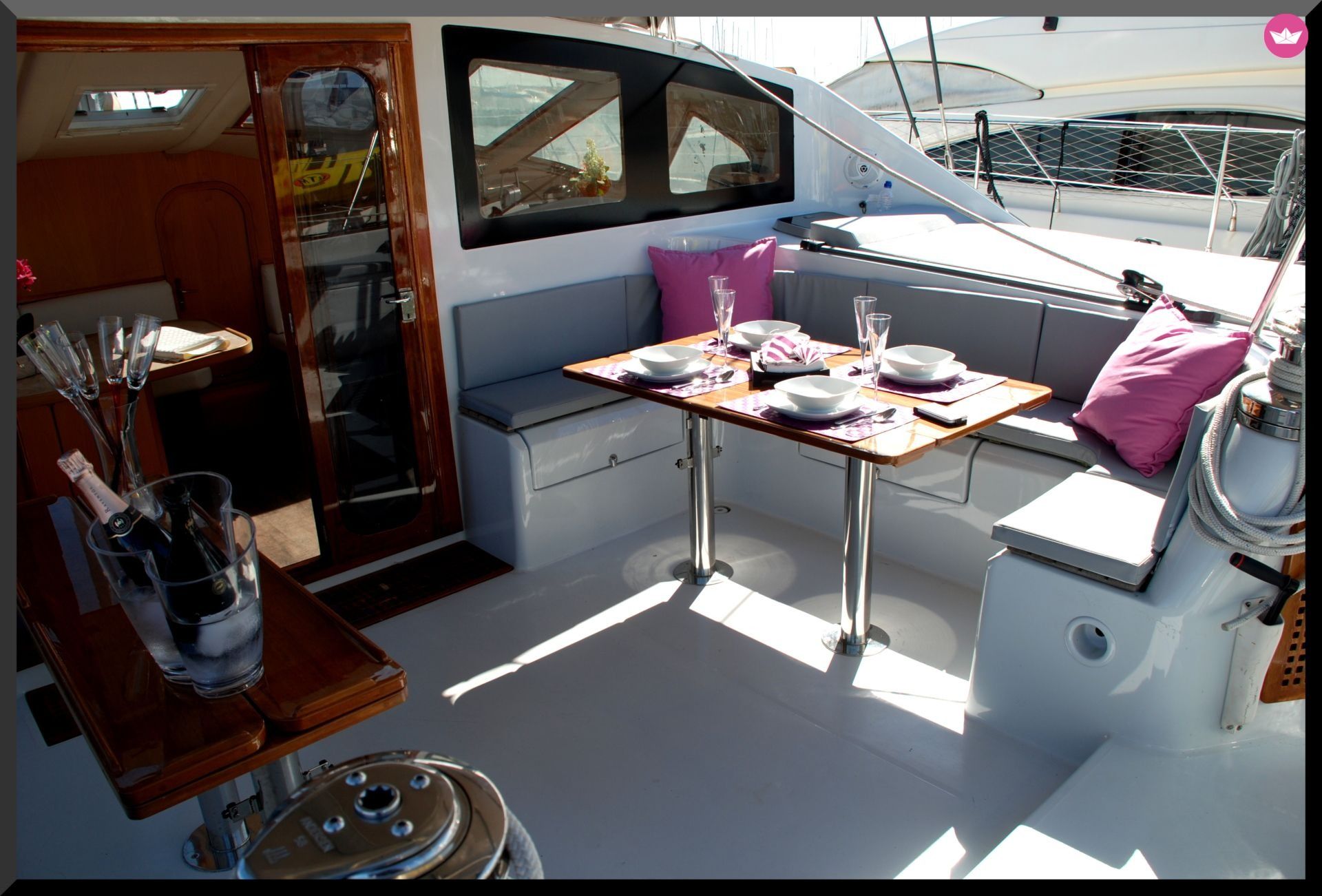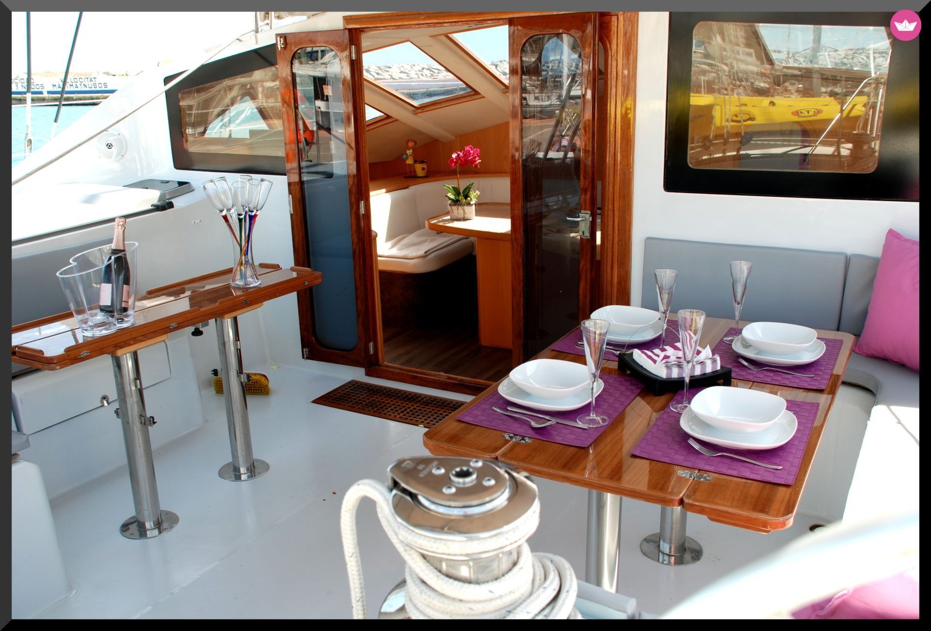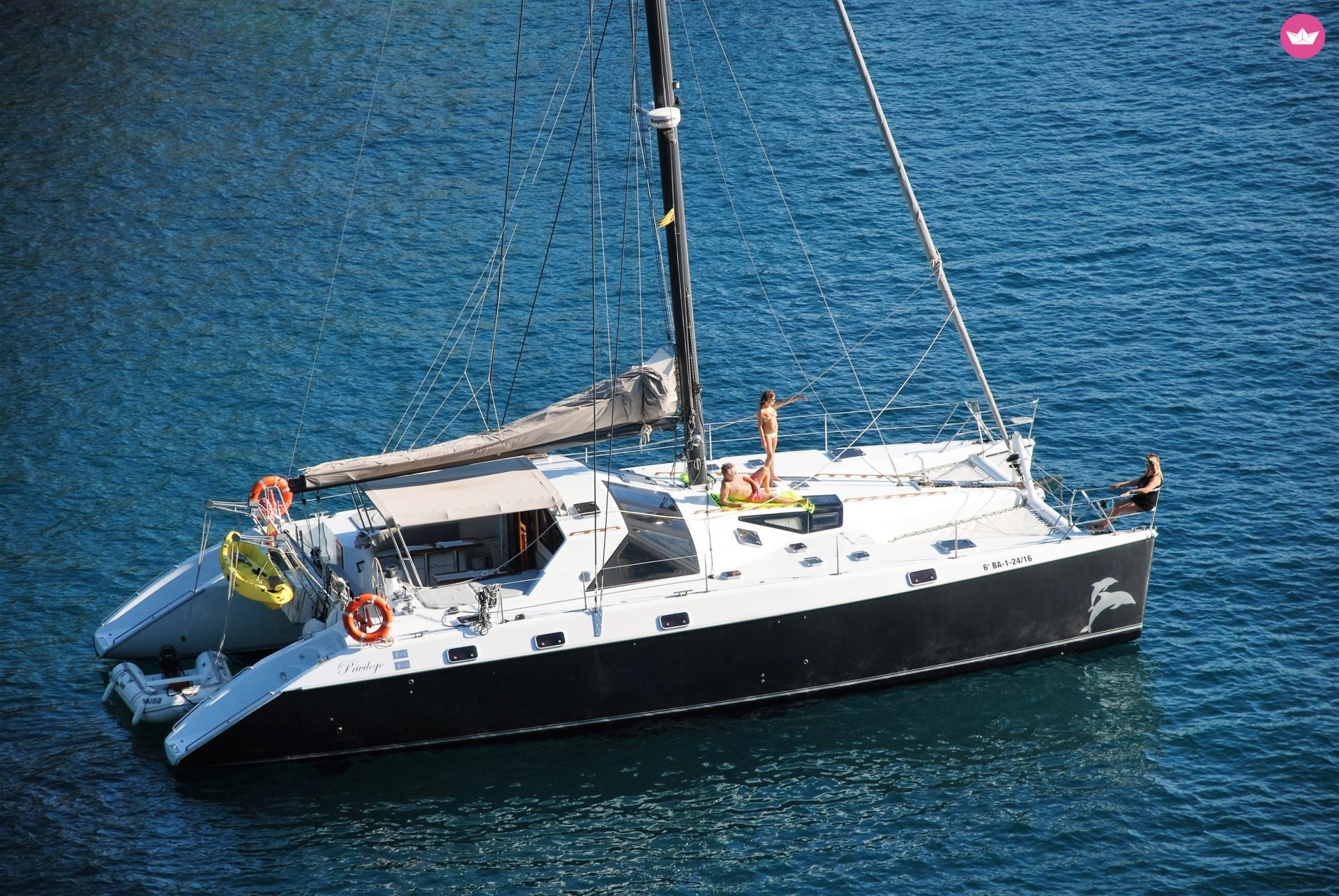 Description of Jaime's catamaran , Este catamarán Privilege 51 -REFIT COMPLETO 2016- se encuentra equipado con lo último en electrónica y tecnologia. Además va equipado con accesorios y un equipo de música excelente. A parte de la larga trayectoria profesional del patrón, conoce a fondo todos los rincones de la isla para poder mostraros los lugares más sorprendentes. Con una capacidad de hasta 10 personas (más patrón y marinero) este Privilege 51 destaca por sus amplios espacios interiores y por su amplia proa en la que podrás relajarte cómodamente mientras tomas el sol. Esta embarcación es ideal para 10 pasajeros que se distribuyen en 5 camarotes dobles y 2 camarotes para tripulación. Dispone de 4 baños con duchas para hacer la travesía lo más cómoda posible. Sin duda alquilando este Privilege 51 pasarás unas vacaciones inolvidables con todo el confort, diversión y relax que te mereces. Incluido: - IVA - Seguro del barco y ocupantes - Amarre puerto base (Port Balís), embarque, desembarque y estancia en boya en la bahía de Sant Antonio - Servicio de supermercado - Kayak - Dinghy con motor de 15 cv. No Incluido: - Patrón: 190€ /día; 1330€ /semana. - Cocinero/a: 160€ /día; 1120€ sem. - Azafata: 130€ /día; 910€ sem. - Ropa de cama y toallas: 20€ /pers. - Limpieza final: 180€ /semana. - Torpedo: 150€ / Semana - Combustible Tu consulta sera bien recibida! Escribenos en Catamaran Yacht Charter!