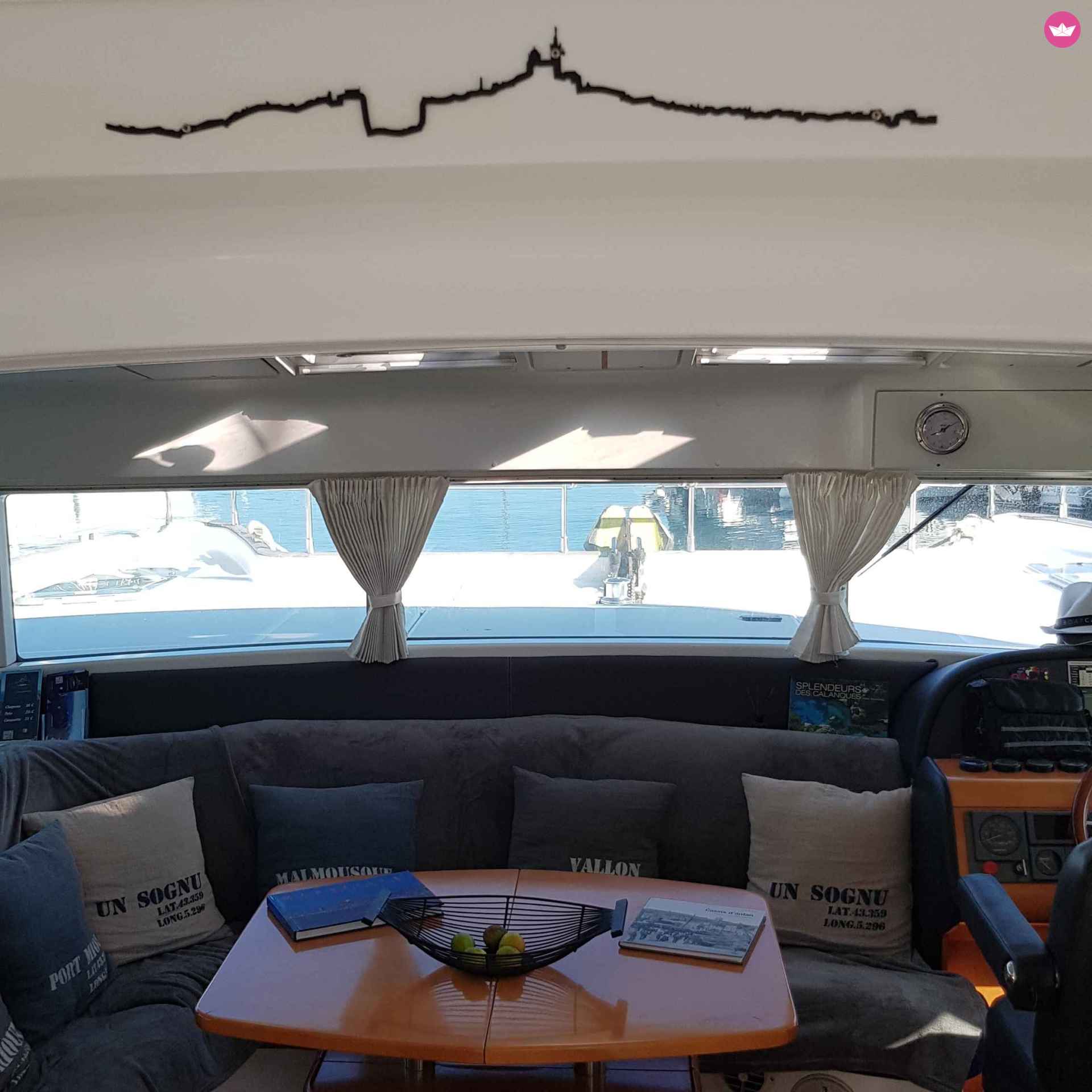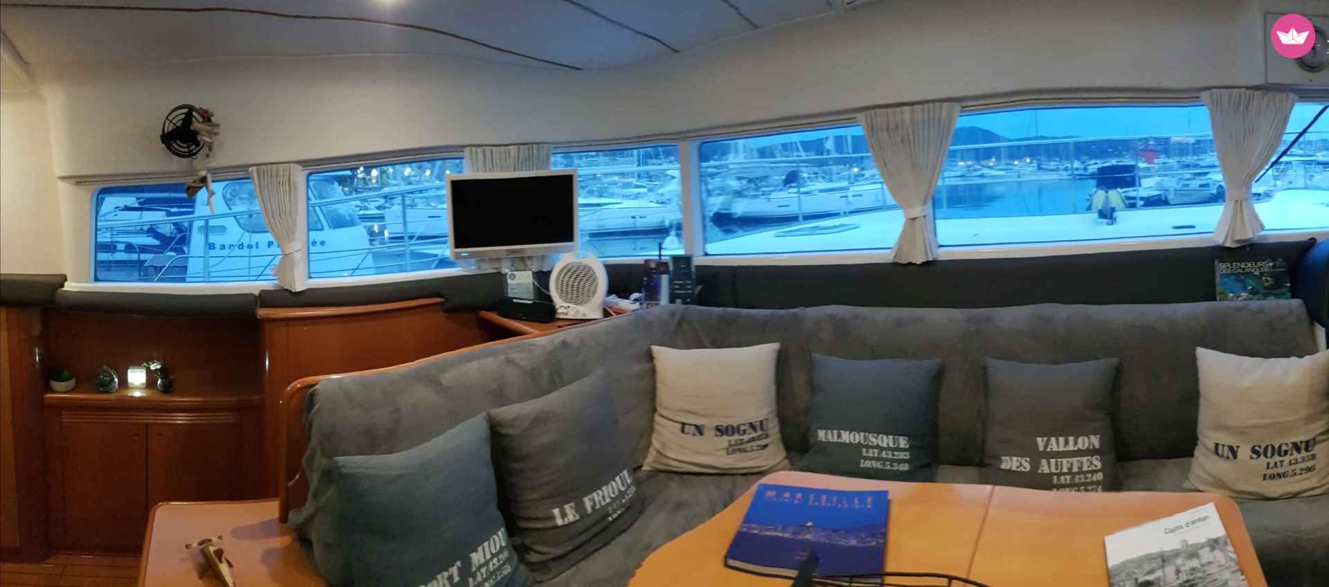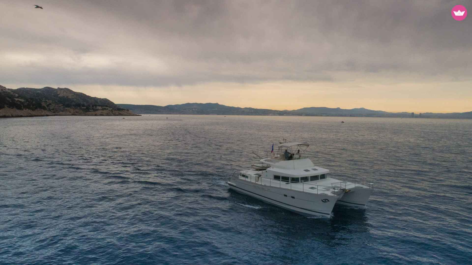 Description of pierre's catamaran , Bonjour, Je vous propose ce bateau en co-navigation. Il peut accueillir 12 personnes donc sera idéal pour des sorties en famille, entre amis ou pour des événements tels que des team buildings, des afterworks ou apéros au coucher du soleil, des anniversaires, des enterrement de vie de jeune fille ou garçon. Le catamaran est très confortable et spacieux. Le bateau dispose d'un grand salon intérieur avec une large banquette très confortable, de 4 cabines double et de salles d'eau. Une plancha se trouve à l'extérieur pour de bonnes grillades Au départ de Bandol, de nombreuses options de navigation s'offrent à vous puisqu'il est possible de naviguer en direction d'endroits splendides comme les îles d'Hyères notamment. Vous pourrez profiter des jouets à bord : paddle x3, annexe avec moteur, plateforme de bain, palmes, masques, tubas. Le moteur est très économique en matière de gasoil (prévoir environ 250€ par jour, à rajouter au prix de location). Possibilité de louer à la semaine avec Capitaine 200. Capacité du bateau : 2 cabines et 4 couchages Possibilité d'avoir le déjeuner et les boissons en supplément. N'hésitez pas à nous contacter via la messagerie Catamaran Yacht Charter propos de vos envies, A bientôt !