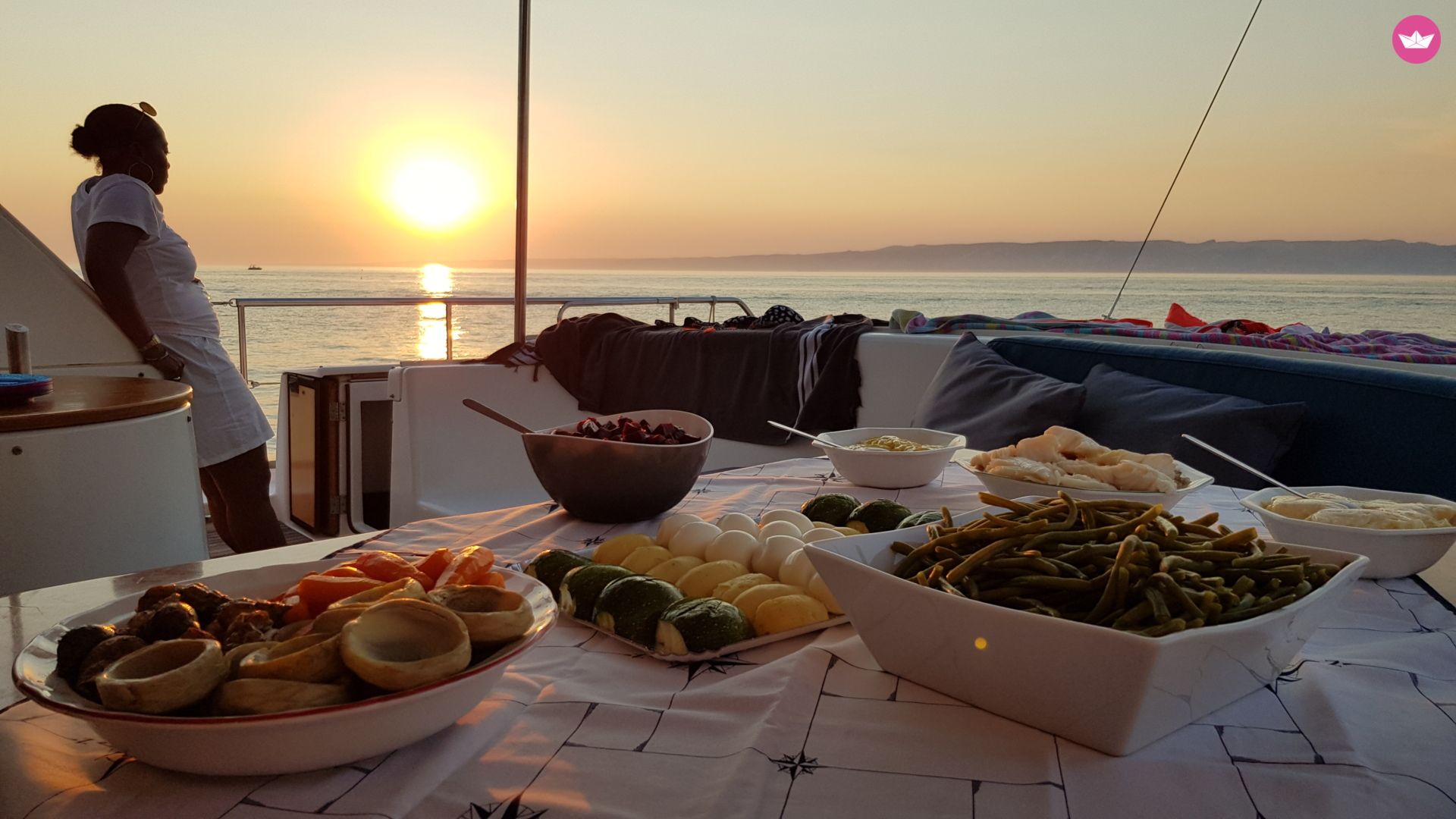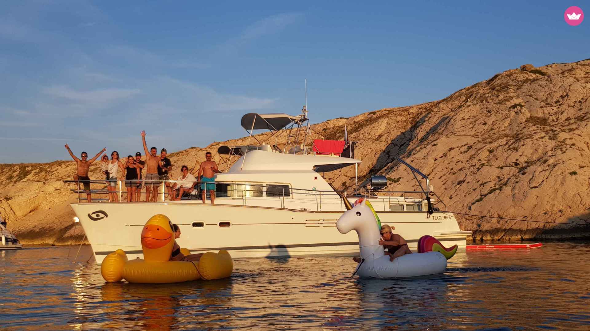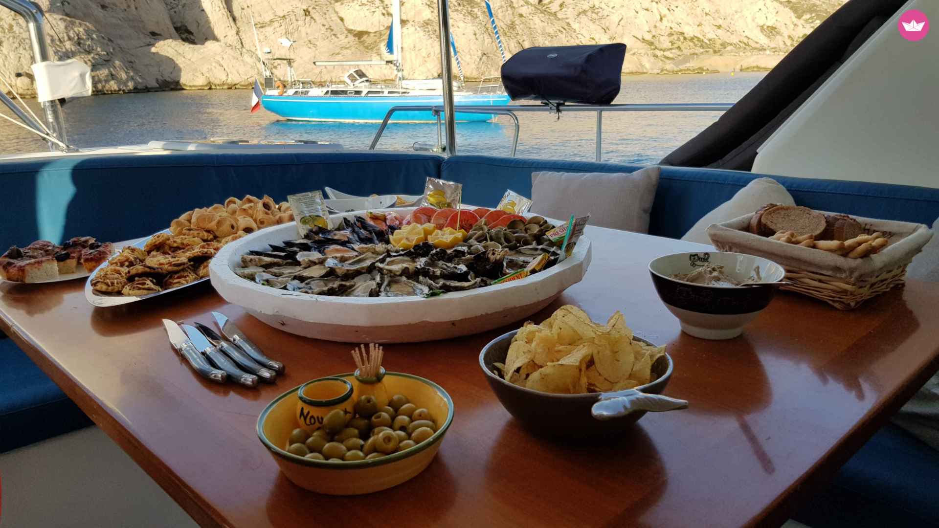 Description of pierre's catamaran , Bonjour, Je vous propose ce bateau en co-navigation. Il peut accueillir 12 personnes donc sera idéal pour des sorties en famille, entre amis ou pour des événements tels que des team buildings, des afterworks ou apéros au coucher du soleil, des anniversaires, des enterrement de vie de jeune fille ou garçon. Le catamaran est très confortable et spacieux. Le bateau dispose d'un grand salon intérieur avec une large banquette très confortable, de 4 cabines double et de salles d'eau. Une plancha se trouve à l'extérieur pour de bonnes grillades Au départ de Bandol, de nombreuses options de navigation s'offrent à vous puisqu'il est possible de naviguer en direction d'endroits splendides comme les îles d'Hyères notamment. Vous pourrez profiter des jouets à bord : paddle x3, annexe avec moteur, plateforme de bain, palmes, masques, tubas. Le moteur est très économique en matière de gasoil (prévoir environ 250€ par jour, à rajouter au prix de location). Possibilité de louer à la semaine avec Capitaine 200. Capacité du bateau : 2 cabines et 4 couchages Possibilité d'avoir le déjeuner et les boissons en supplément. N'hésitez pas à nous contacter via la messagerie Catamaran Yacht Charter propos de vos envies, A bientôt !