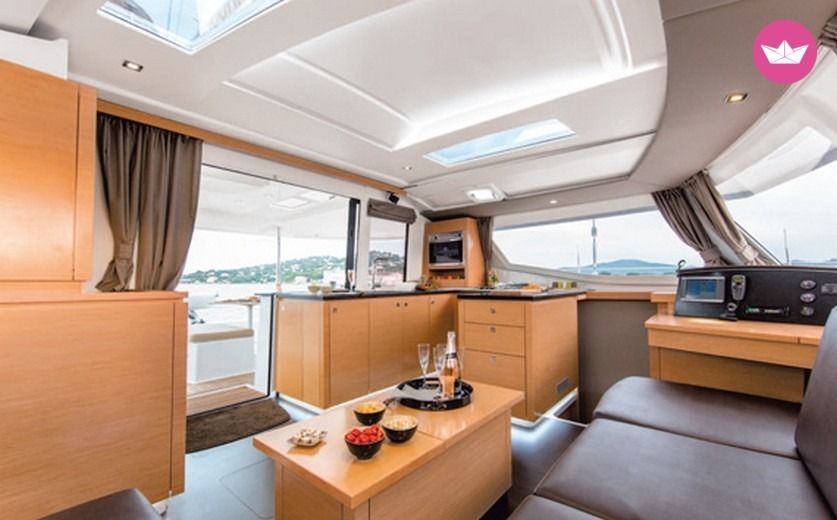 Description of Pierre's catamaran , Notre HELIA 44 est confortable et spacieux c'est un catamaran parfait pour une croisière "grand luxe"dans la caraïbe. Nous l'avons équipé d'un déssalinisateur d'une capacité de 120L/heure. Il est également autonome en énergie grâce à ses panneaux solaires. Il possède: • 4 cabines doubles • 2 couchages dans les pointes avant avec accès par le pont et la cabine. • 4 SDB avec douche et WC La réservation comprend: • Annexe semi-rigide, Moteur hors-bord 9.8cv • Pilote automatique, GPS, Traceur de cartes, ainsi que tout l'équipement nécessaire à la navigation. • Convertisseur 12V / 220V • Déssalinisateur 120L/heure • Lecteur CD, USB, Auxiliaire (prise jack) • Literie et linge de bord (hors serviette) • Barbecue • Palmes, masques, tubas. A votre demande nous pouvons organiser votre transfert Aéroport/Marina. ********** Options ******** - Rachat de franchise (obligatoire lorsque l'on fournit un skipper): 28 €/jour et une caution réduite à 500€ - Skipper: 180€/jour - Hôtesse: 135€/jour - Formule "All inclusive" (approvisionnement, alcool, frais de mouillage, visa, carburants…): 40€/jours/pers - SUP: 15€/jours - Kayak : 50€ - Canne à pêche 50€ (25€ si vous ne ramenez aucun poisson ;). - Serviettes: 45€/bateau - Transfert Aéroport - Marina : Jusqu'à 5 personnes 68€ puis 12€/personne supplémentaire. *************************** Si vous avez des demandes particulières, faite le nous savoir, nous ferons de notre mieux pour les satisfaire. Nous serons également ravis de vous donner des informations utiles , des idées pour votre croisère ou d'autres renseignements. N'hésitez pas à nous contacter sur notre messagerie Catamaran Yacht Charter pour plus d'informations.