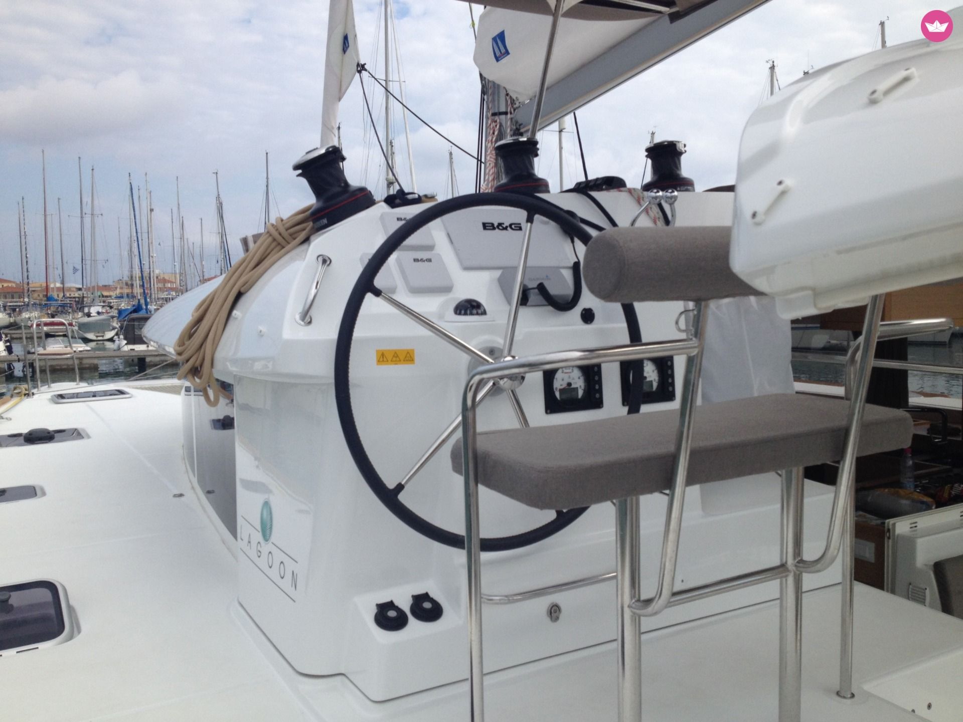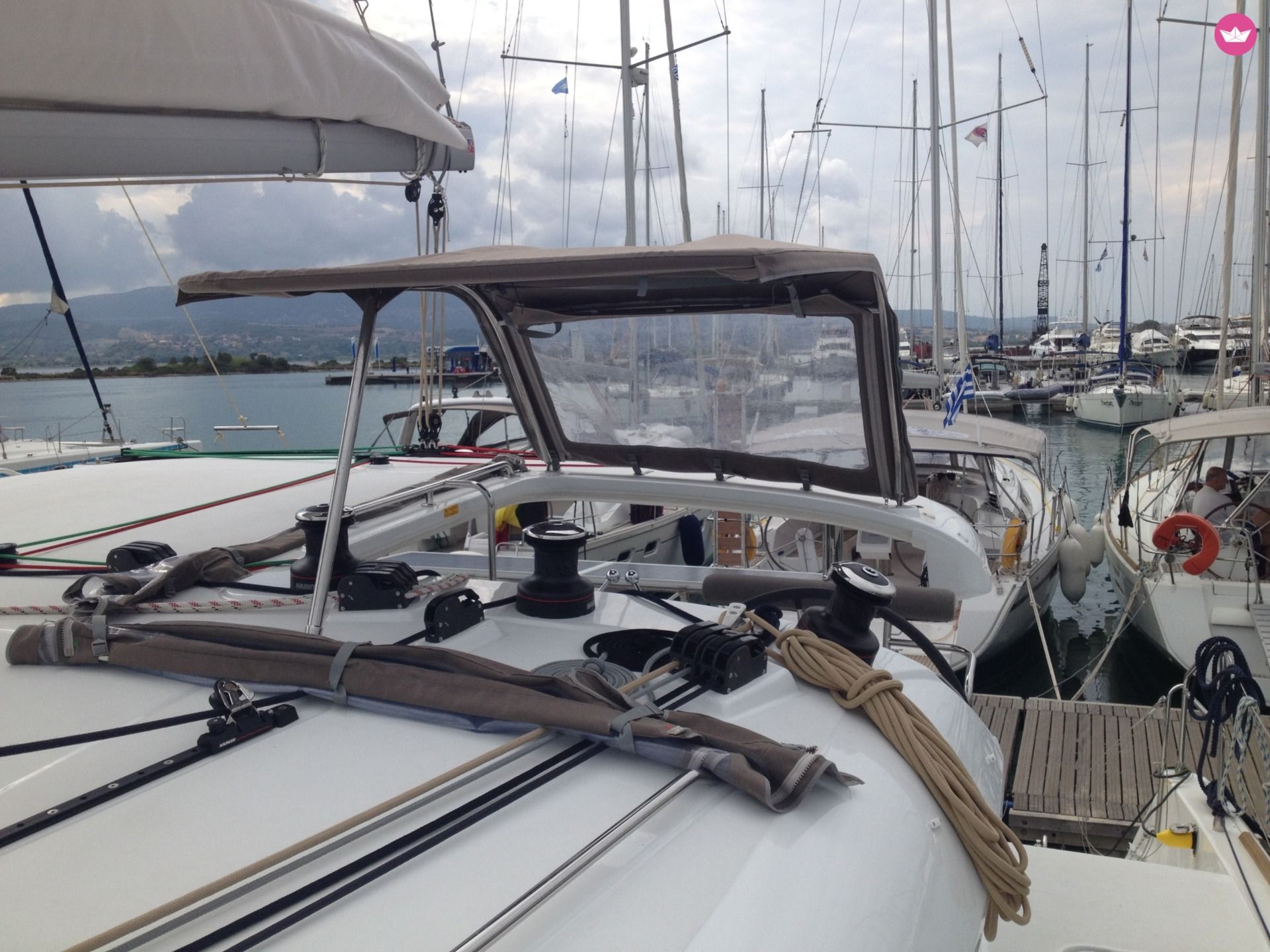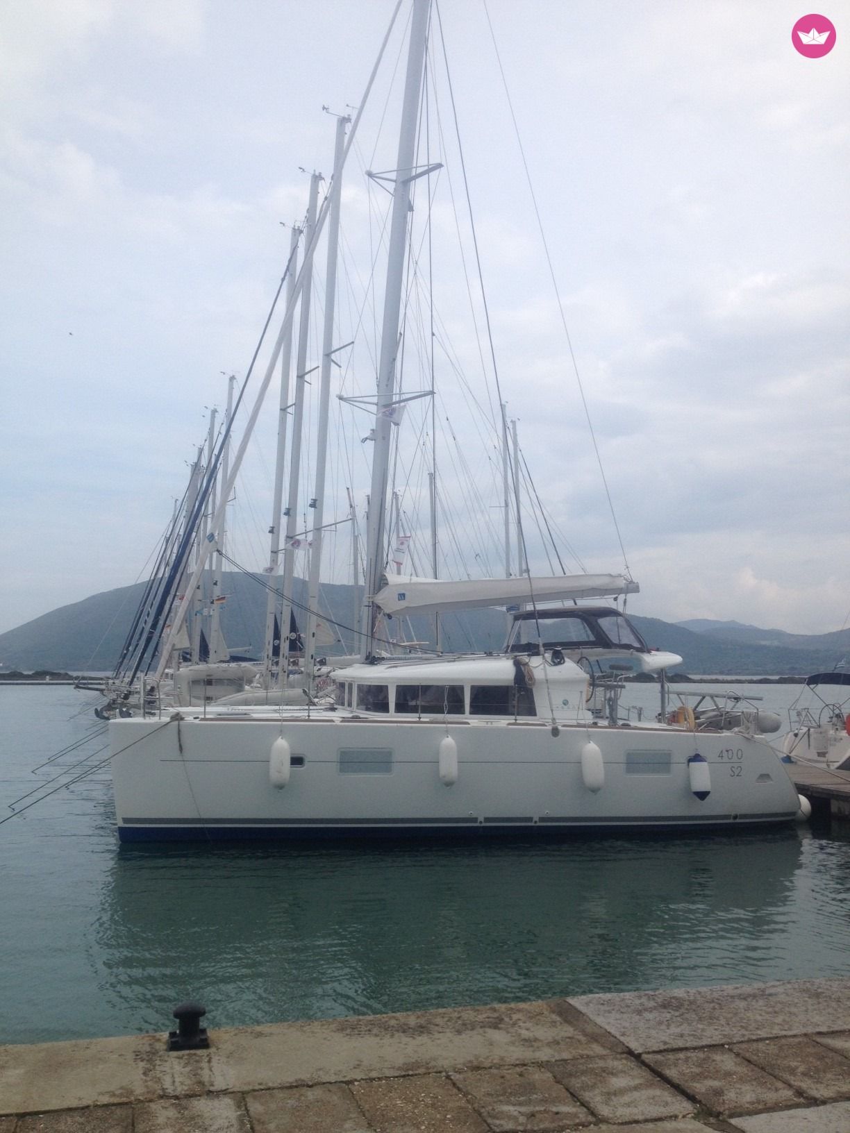 Description of Thanos's catamaran To rent a catamaran is a perfect option for a comfortable, spacious and organized boat. Designed from the manufacturer Lagoon, this catamaran is perfection in both construction and manufacture. Utopia, the Lagoon has a very cosy layout, with 4 double cabins and 4 bathroom. It can welcome up to 8 persons in cabins and has new sails from 2015. The exterior is solid and wide; with new design of flat windows that provide a comfortable sun deck, and cosy trampoline. You will love to start your cruise in Rhodes, perfect to discover the Dodecaneses islands.