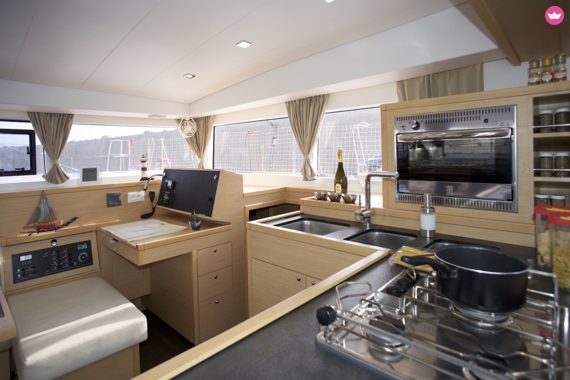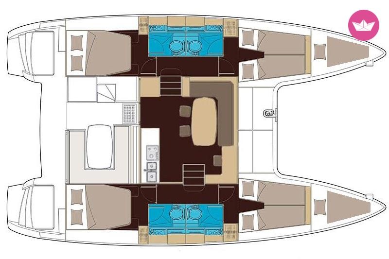 Description of Claudio's catamaran The new Lagoon 400 S2 is the worthy successor of the Lagoon 400, of which over 260 models have been delivered in a little under three years. Is 4 cabin versions, the keyword is balance: balance between hull space and performance, saloon and cockpit, cabins and bathrooms, and between interior and exterior. The impressive new interiors designed by the Nauta Design agency make the Lagoon 400 S2 even more comfortable, elegant and distinctly contemporary, while remaining ever-faithful to the brand’s values. Extras (mandatory): Final cleaning: € 150,00 Optional extras: - Airport Transfer (pax/one way): 30.00 € per person - Bed Linen & Towels/cabin: 15.00 € per person - Hostess (+ food): 110.00 € per day - One Way free between the bases - Outboard engine/Week: 100.00 € per week - Parking inside the Marina di Nettuno: 15.00 € per day - Skipper (+food): 150.00 € per day - Stand Up Paddle/Week: 100.00 € per week