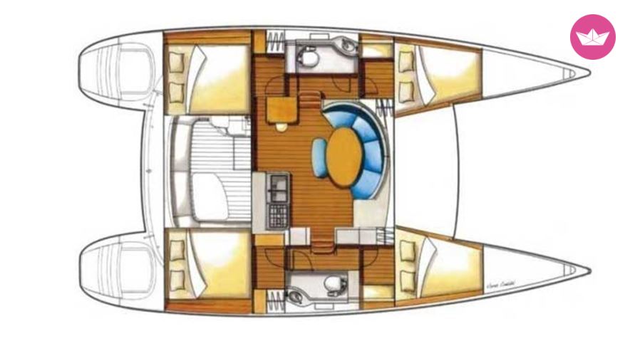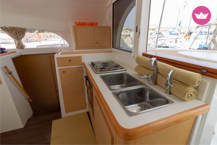 Description of Paolo's catamaran Extras to be paid on spot: Final cleaning catamarans 180,00 euro Lagoon and bath towel: 15,00 euro p.p. (on request) Beach towel: 15,00 euro p.p. (on request) Outboard engine: 100,00 euro per week (on request) Cushions in cockpit: 60,00 euro per booking (on request) Wi-Fi: 50,00 euro per week (on request) Safety net: 200,00 euro per booking (on request) SUP: 100,00 euro per week (on request) Priority check-in (within 14:00): 150,00 euro (on request) Deposit (Visa, Mastercard): 4.000,00 euro 56' and 57' + catamarans