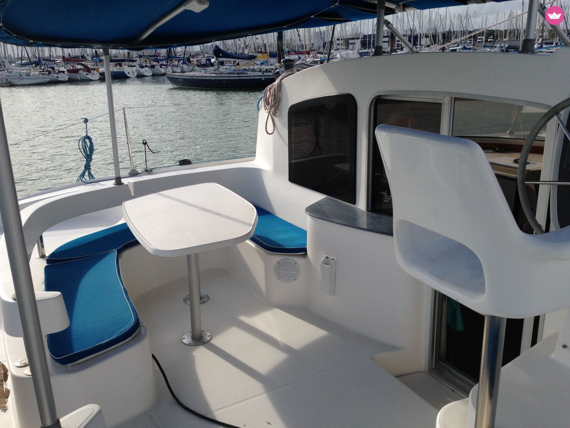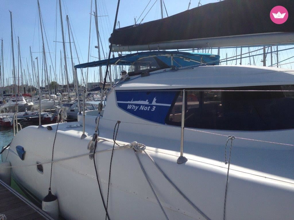 Description of Christophe's catamaran , Catamaran Fountaine Pajot Lavezzi 40 de 12 mètres très marin. Idéal pour 8 personnes (4 cabines doubles et 2 salles de bain). Annexe avec moteur 8 cv, cuisine équipée (plaque et frigo neuf 2016), carré spacieux, pilote automatique , centrale RAYMARINE, guindeau électrique. Grand-voile 2015 entièrement lattée, génois incidence refaite intégralement en avril 2016, plancha gaz dans cockpit, bimini cockpit Options sur cette location de catamaran : -literie (draps, housses oreillers et housses couettes): 25 € /cab/we ou en semaine -gennaker sur emmagasineur (neuf) : 150 €/semaine à partir de mi-juillet 2016 (en commande) A proximité de l’île de Ré, l’île d’Aix, l'île de Nole, l’île d’Yeu, Noirmoutier encore un peu plus au nord et les Sables d’Olonne. Départ de l'aventure nautique à La Rochelle, depuis le port de plaisance des Minimes, à 9 milles par exemple de Saint-Martin-en-Ré. La Rochelle est la porte d'accès de référence pour l'archipel charentais. Location pour navigation exclusivement. Nouveau 2019: chauffage à eau ,nouveau Bimini avec partie centrale rigide, hélices maxprop,carène aerogommee pour une glisse top, électricité moteur bâbord rénovée Why not s’est refait une beauté cet hiver !!!!