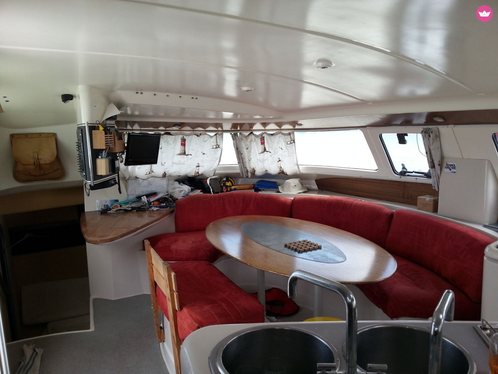 Description of Guy's catamaran , Bonjour et bienvenue à bord de mon catamaran Fountaine Pajot Venezia 42 ! Ce bateau est disponible au départ de Lorient et idéal pour naviguer entre amis ou en famille jusqu'à 10 personnes en croisière et 16 personnes en navigation, grâce à ses 4 cabines doubles et son carré aménageable. Vous pourrez explorer la Bretagne Sud et l'Île de Groix ! Contactez-moi via la messagerie Catamaran Yacht Charter afin que nous puissions organiser ensemble votre projet de navigation. A bientôt !