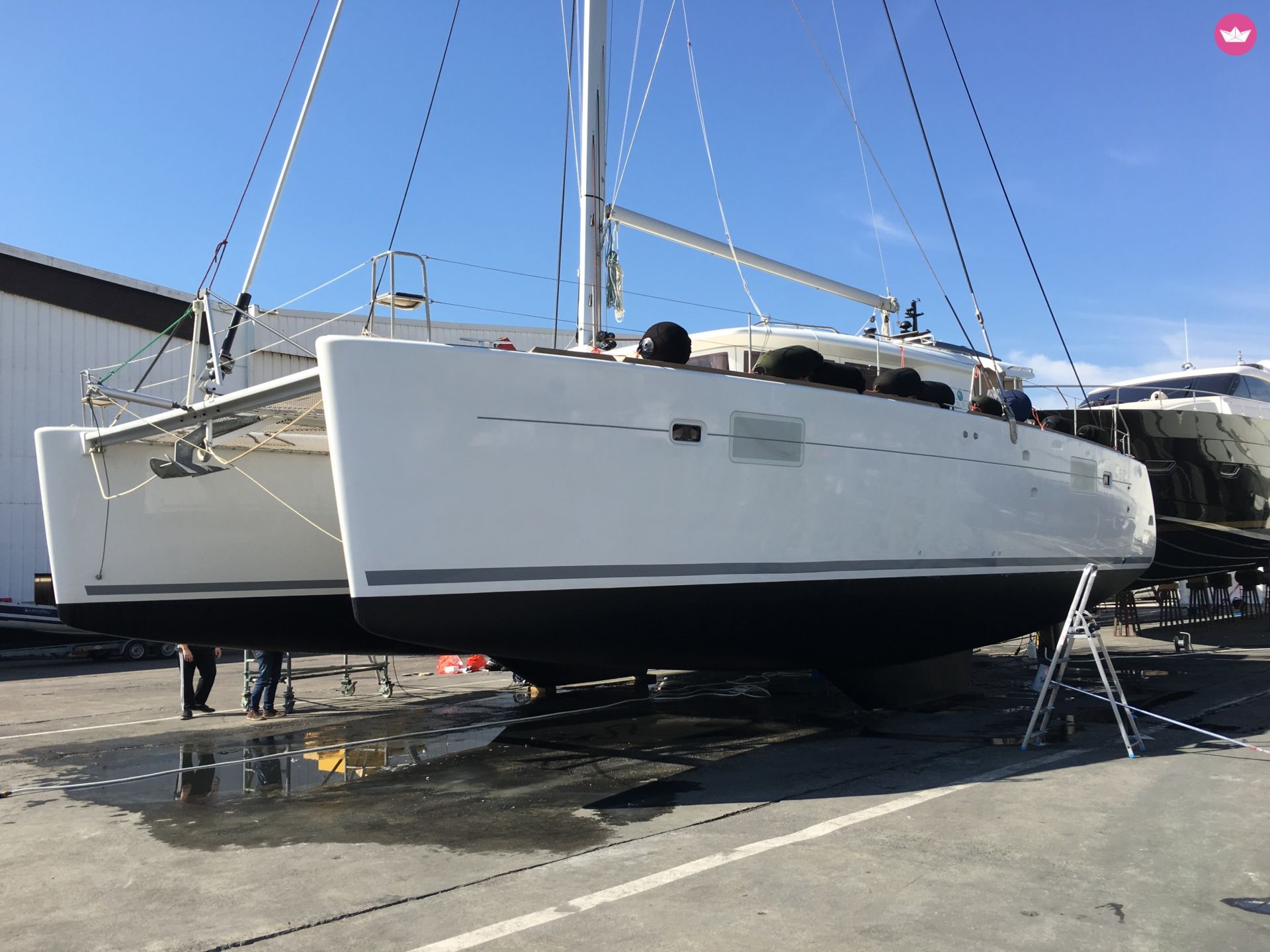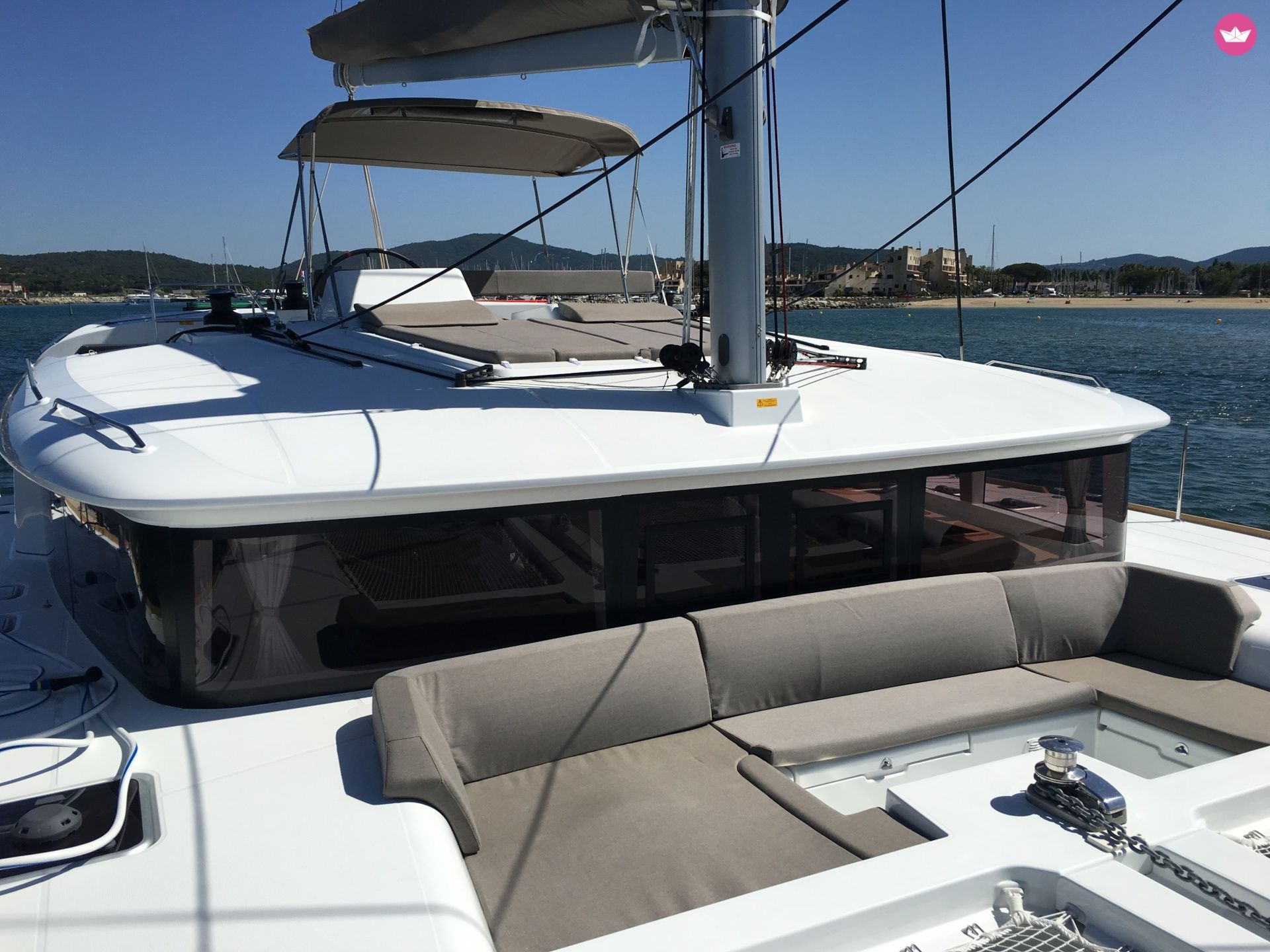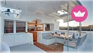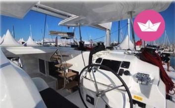 Description of Corentin Flavien Baptiste's catamaran Very powerful and with interesting technical innovations, this boat is still more spacious, comfortable and elegant than its predecessors. Bright indoors, you will bring a joy unparalleled for a cruise in family or between friends out of Port Grimaud. -- I also offer: - Spi (free)