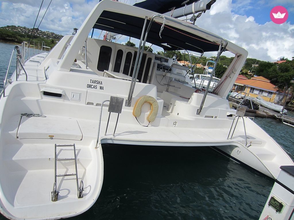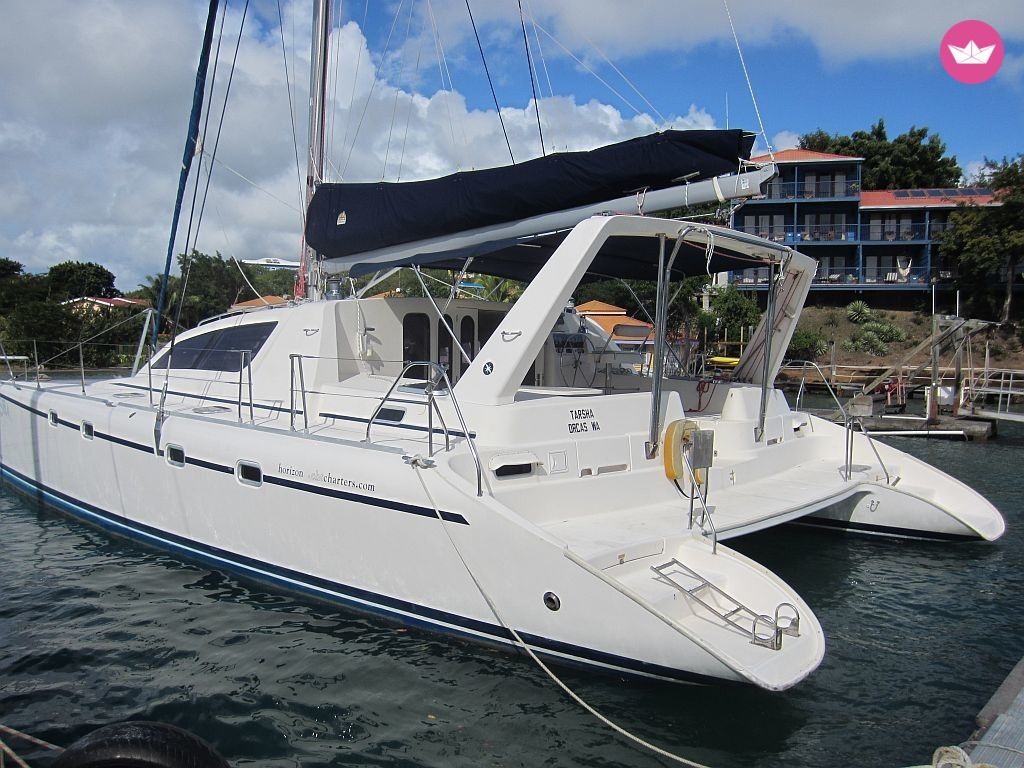 Description of Jacqui's catamaran Discover the beautiful Grenadines from Grenada with this catamaran Leopard 4700 ! This boat can welcome up to 9 people with its 5 double cabins, perfect for a family time or vacation with your friends ! You will discover one of the most famous sailing area in the world such as The Tobago Cays which consist of five uninhabited islands inside a massive horseshoe reef with white sandy beaches, crystal clear water, palm trees, and peerless Caribbean land and seascapes. See you very soon on the Catamaran Yacht Charter chat in order to discuss about your sailing project and make it real !