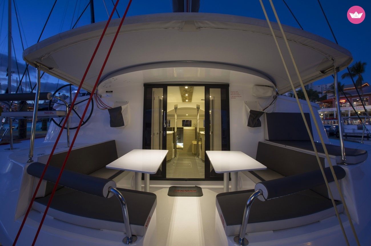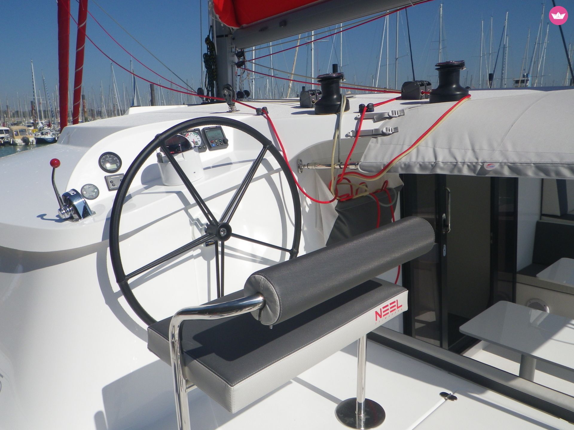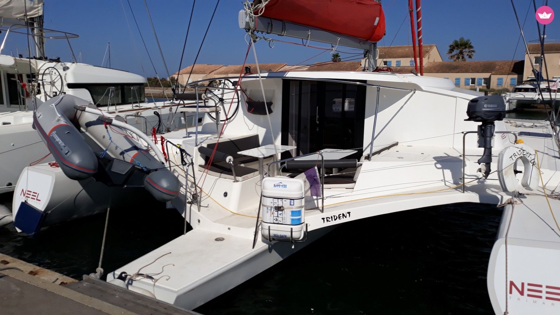 Description of Jean-Noël's catamaran , Bonjour à tous, Nous vous proposons à la location ce magnifique trimaran de 45 pieds. Pour des vacances sur l'eau alliant vitesse, convivialité, confort : osez la location d'un trimaran : le NEEL 45, dynamique, beau, est un concept moderne et séduisant. Il peut accueillir 8 passagers : 3 cabines doubles + 2 couchettes dans un flotteur. Design intérieur contemporain, ouvert et avec des espaces de vie de plain pied : cockpit, carré, cuisine, cabines : un aménagement très ergonomique, permettant une vie à bord très confortable. Au départ de Leucate, mettez le cap vers l'Espagne et la Costa Brava pour découvrir ses mouillages de rêve. Nous vous conseillerons sur vos projets de navigation si besoin. ****Inclus dans les tarifs**** Pilote automatique, GPS, lecteur de cartes, annexe + moteur HB, palmes, masques, tubas, TVA, Oreillers, Couettes ou Couvertures ****Options obligatoires**** Nettoyage : 350€ Consommables (gaz, huiles moteurs, piles) : 50€ Pack confort : 30€ / personne (bateaux avec équipage) ****Options facultatives**** Skipper professionnel : 300€ / jour + nourriture + frais de déplacement Hôtesse : 280€ / jour + nourriture + frais de déplacement Literie : 30€/cabine Serviettes : 15€/personne ****Assurances complémentaires**** Annulation : 3 % par personne couverte Rachat de franchise : 4 % du montant de la location Pour plus d'informations, consultez-nous via la messagerie Catamaran Yacht Charter. A très bientôt !