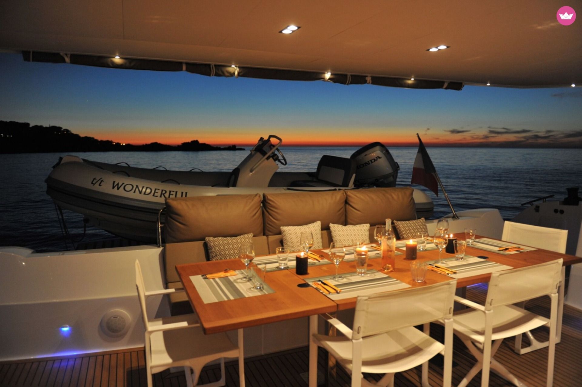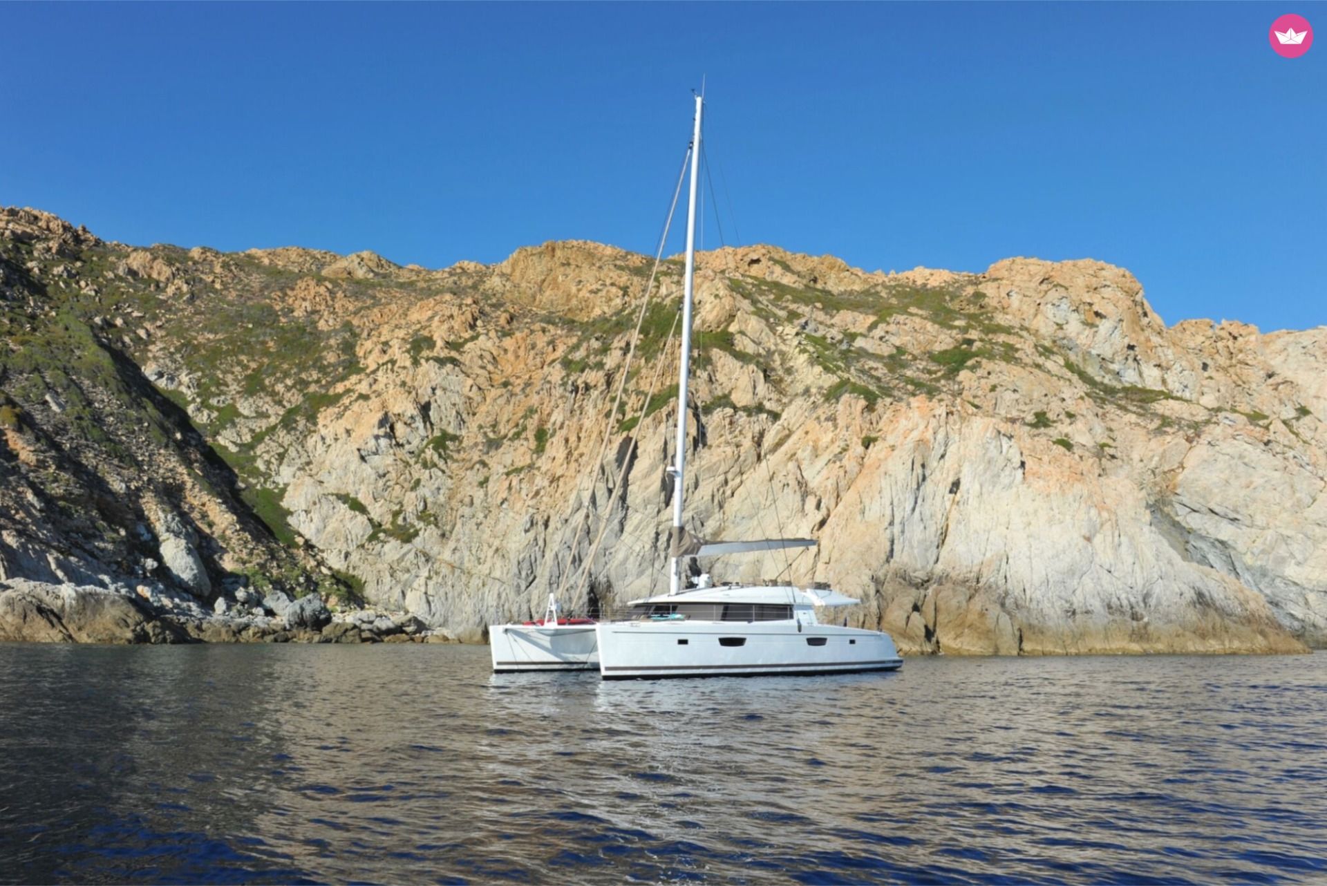Description of Gérald's catamaran , AMBITION, ÉLÉGANCE ET PERFORMANCE ! UN CATAMARAN YACHT À LA HAUTEUR DE VOS EXIGENCES… L’excellence, c’est le mot d’ordre de ce catamaran yacht de 67 pieds signé Fountaine Pajot. Naviguez en vous faisant plaisir et en offrant à votre entourage des moments inoubliables… Offrez-vous le luxe de naviguer et de profiter des plus beaux endroits du monde dans le plus grand des conforts : embarquez sur le Victoria 67. Une esthétique « chic et contemporaine », de grands espaces de relaxation et de partage, de multiples équipements imaginés par notre bureau d’étude, autant d’atouts qui vous feront tomber sous le charme de ce catamaran de croisière. Son flybridge exceptionnel, accessible des deux cotés du cockpit, son carré immense et design, ses cabines alliant luxe et confort, sont accueillants et offrent une parfaite communication à l’intérieur du bateau. AMÉNAGEMENT 5 ETOILES Discrétion des volumes, sobriété des lignes, intégration des équipements, Isabelle Racoupeau a travaillé les intérieurs du Victoria 67 dans une esthétique « Urban Chic » aussi contemporaine que chaleureuse. Fonctionnalité et efficacité n’ont pas été oubliées et les circulations entre les différents espaces de vie ou de repos sont d’une évidente facilité grâce à de grandes coursives. A bord du Victoria 67, vous êtes toujours en contact avec la mer, que ce soit à travers les baies vitrées de l’immense carré ou grâce aux superbes hublots de coque des cabines. ÉQUIPAGE PROFESSIONNEL Un skipper diplômé Marine Marchande et Breveté D'Etat jeunesse et sport, une hôtesse cuisinière et un marin (à partir de 6 personnes embarquées) composent l'équipage à l'année de ce bateau et en connaissent ses moindres recoins. Cet équipage professionnel aura à cœur de faire de votre séjour à bord des moments inoubliables. Le bateau dispose aussi de nombreux "jouets" pour vos séjours à bord : - 2 SUP gonflables fanatic, avec un gréement 5 m2 monofilm. - Bouées à tracter - wake board. - Tender semi-rigide 4m20 avec 50cv Honda et console. Tender lift hydraulique en teck pour le tender, et qui fait plage de bain au mouillage. Côté habitacle, le bateau dispose d'une connexion internet wifi, d'un système audio Sonos/Bose avec multizones bluetooth. Pour vos soirées vous aurez une rétroprojecteur plus écran escamotable pour vidéo, une télévision. Chaque cabine dispose d'une climatisation réversible individualisée. Pour le gréement : Mat carbone Lorima 2 mètre plus haut que l'origine Bôme canoë carbone Lorima GV Hydranet 145 m2 (au lieu de 118) Gênois 90 m2 sur enrouleur électrique Trinquette /h Groupe électrogène 15Kw avec double cocon. N'hésitez pas à me contacter via Catamaran Yacht Charter si vous avez plus de questions et pour que l'on discute de votre projet de navigation