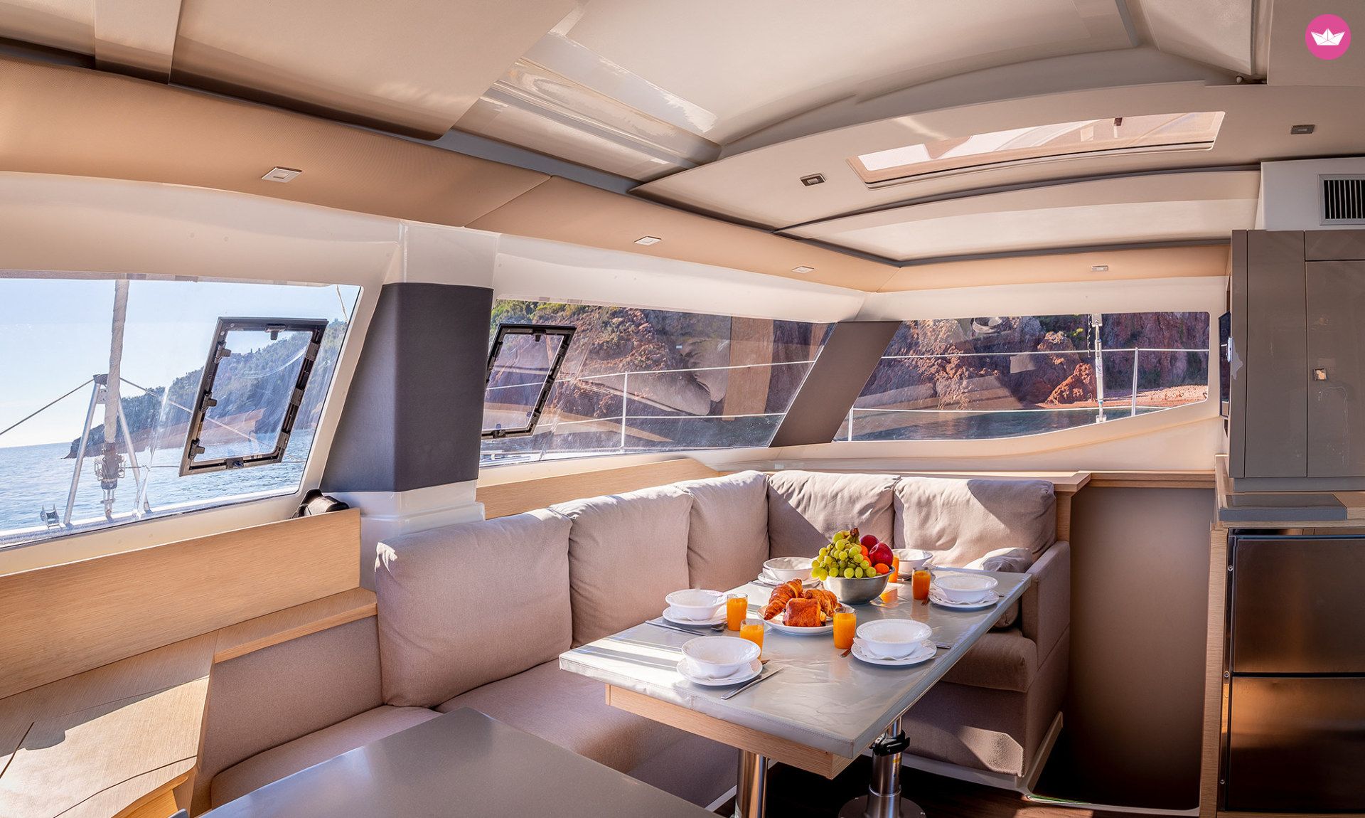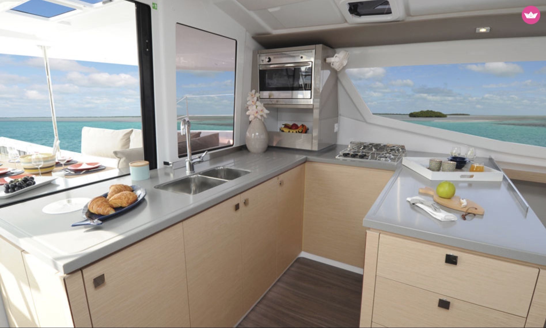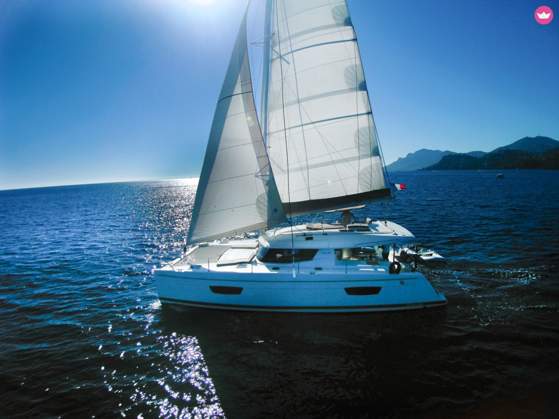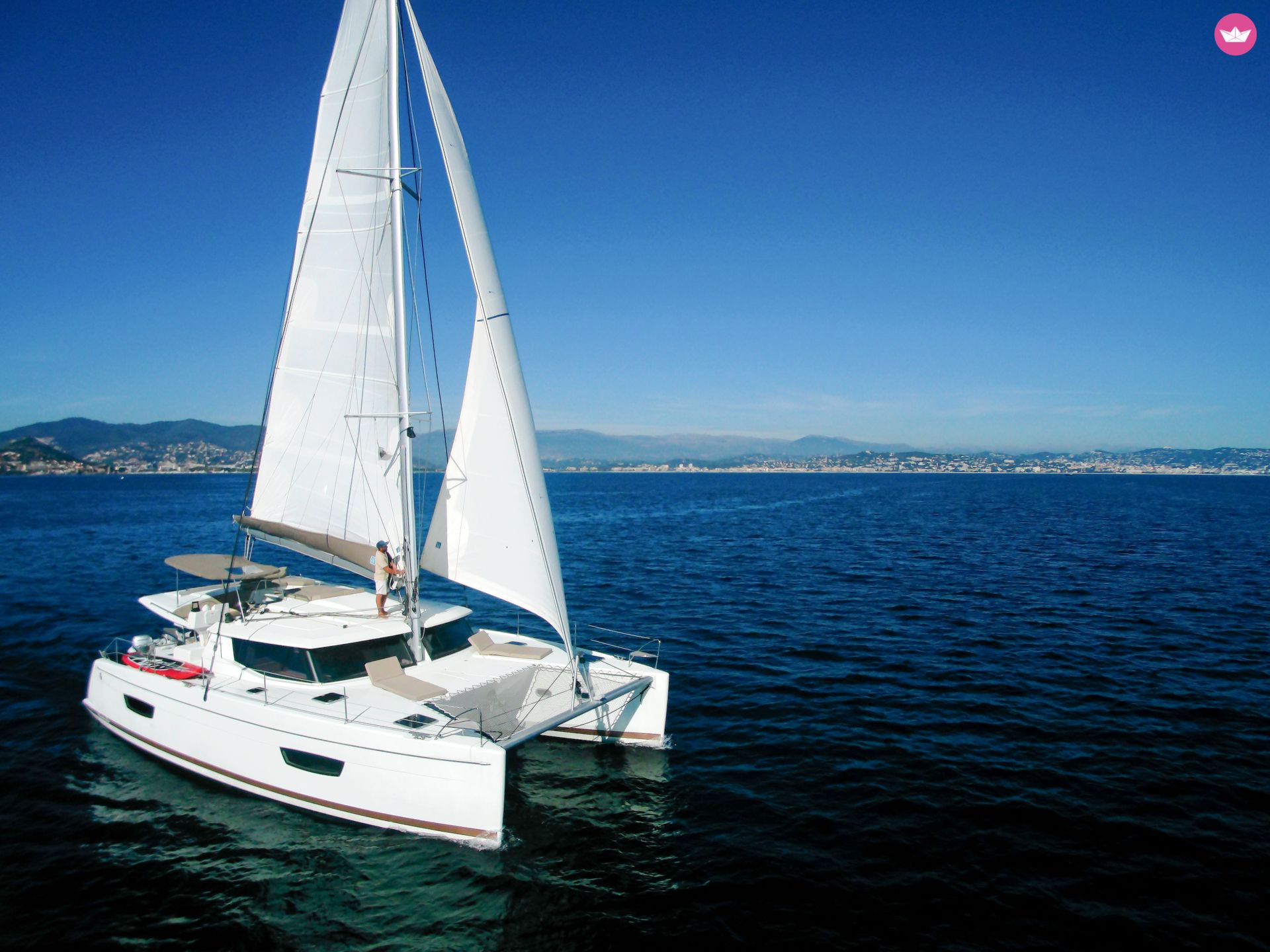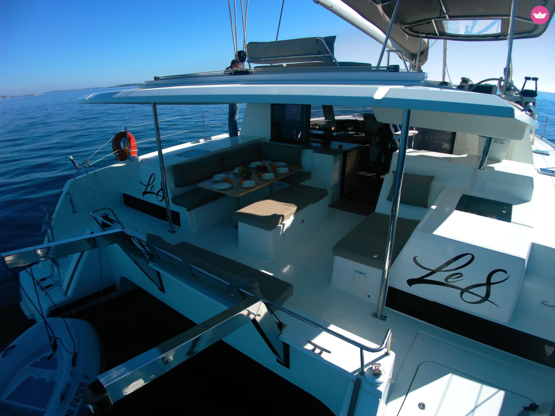 Description of Samuel's catamaran , Bonjour, Je vous propose à la location ce superbe catamaran de 44 pieds pour de belles croisières en famille ou entre amis mais aussi à la journée. Situé à 40 minutes des îles de lèrins, à 60 min de la baie d aguay venez profitez d une expérience inédite. Possibilité de restauration à bord avec services de traiteurs ou d emmener directement votre nourriture vous avez le choix. C'est un Hélia 44 pieds evolution A bord, vous retrouverez de très nombreux équipements de confort. 4 grandes cabines doubles avec 4 salles de bain, un grand séjour, une cuisine tout équipée avec réfrigérateur, plaques, four, évier. Le bateau est équipé de la climatisation, d'un desalinisateur (190l/h), de 2 TV, d'un coffre fort, système son BOSE... Côté navigation : génératrice, winch GV et bossoir électrique, voile à corne, 1er Ris automatique, guindeau électrique, système Garmin AIS,... Moteur VOLVO 2 x 55 CV hélices tripales repliable 1 Paddle / masque tuba Palm inclus dans le prix. Possibilité de location en sup 2 eme et 3ème paddles. Forfait nettoyage semaine 280€ Jour 60€ Prix pour 12 personnes au delà 65€ par personne N'hésitez pas à me contacter sur la messagerie Catamaran Yacht Charter, je serai ravi d'échanger avec vous !