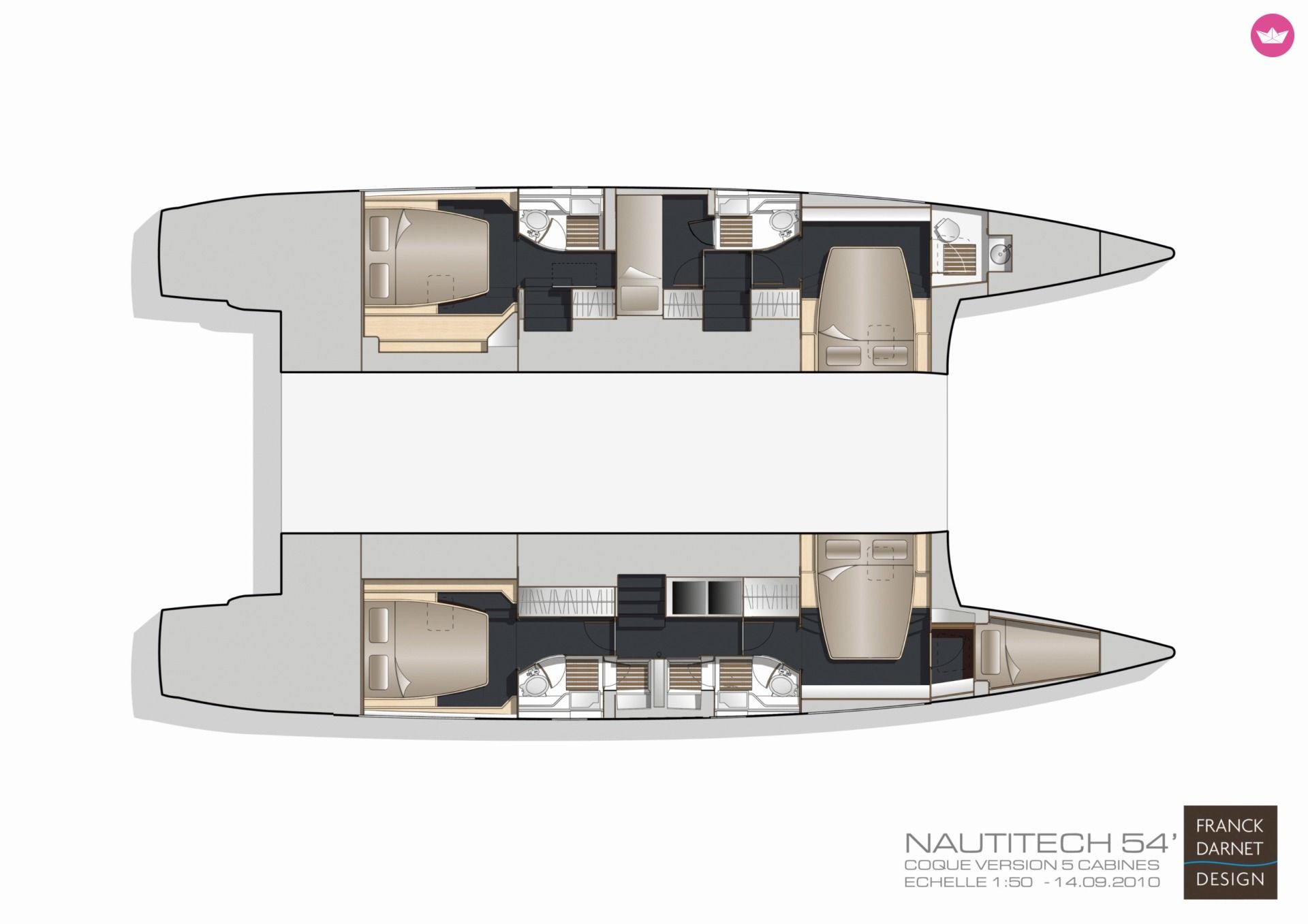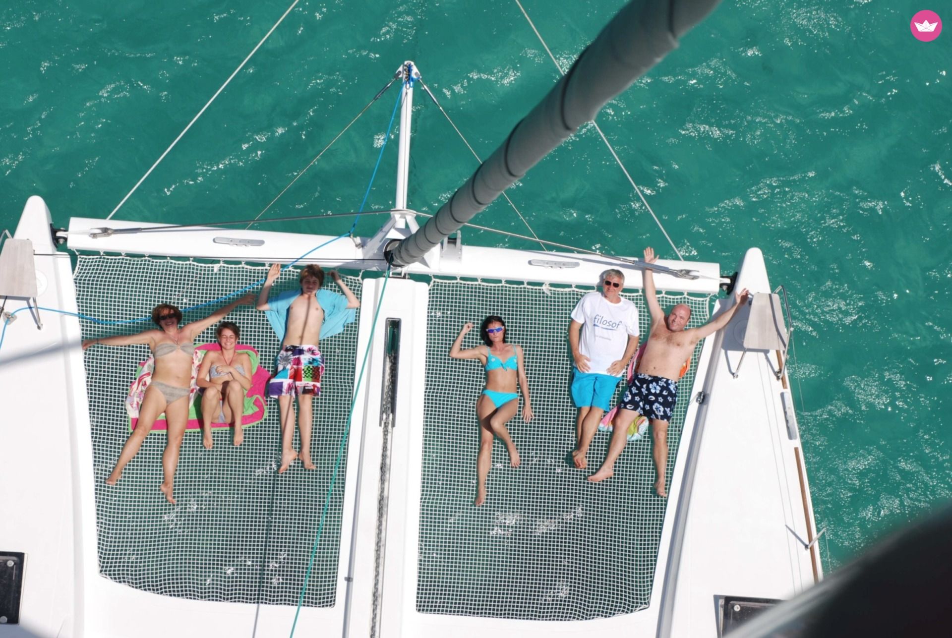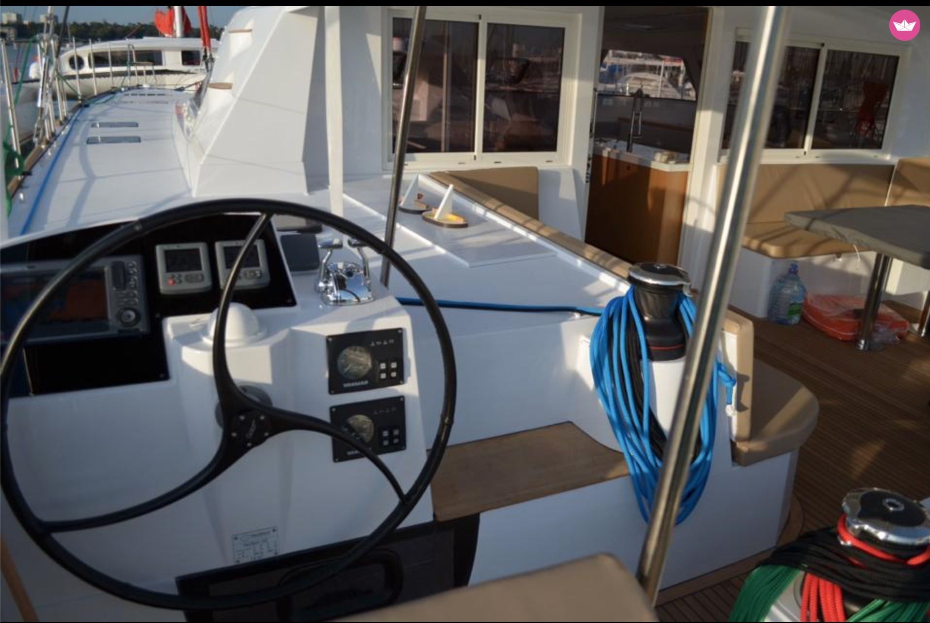 Description of Nathalie's catamaran The beautiful “Filosof” - Nautitech 542, embarks from Port Leucate and will fulfil every dream of a perfect maritime holiday. Spacious enough to accommodate 10 people, with a choice of 4 double cabins and one bunk cabin. Three cabins are en suite with a further family bathroom. The crew, consisting of a Skipper and hostess, have their own separate accommodation at the bow of the boat, which is secluded from the guests. Filosof is a catamaran with a superb finish and high-end specifications. This catamaran, is totally self-sufficient, and equipped so that you do not have to dock at a mariner, but can spend fabulous nights anchored out on the water. A huge array of diverse water sports are on offer, such as a wakeboard, water ski, kayak for 2, Paddle board, snorkel and fins… everything that will make your stay unforgettable. During your stay, the skipper and hostess will cater for all your requirements. The skipper can create a bespoke itinerary for you or you can leave the destination logistics up to him. The hostess, will delight your palate, with her culinary and confectionary talents. The boat is chartable from Saturday 4 p.m. to the following Friday 5 p.m. The skipper and hostess pricing is 4300€ The cleaning at the end of the stay is 450€ An optional comfort pack is available at an additional 30€ per person, it includes bed sheets, 2 towels, a washcloth and a fouta.(swimming towel) A deposit of 20% is required for the total estimated catering provision cost.. This enables us to source provisions to cater for your preferential requirements. This should be completed on our provided list before your arrival, with the final payment being calculated, on all consumables at the marina. The captain holds an account of the expenses on board and will either give you back the difference or asks for the complement, if needed before the start… thus, no unpleasant surprises! If you have any questions on the different itinerary options or about the boat, feel free to send me a message via Catamaran Yacht Charter.