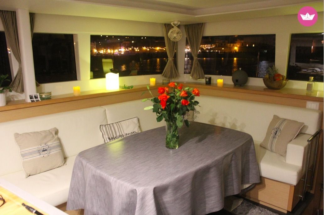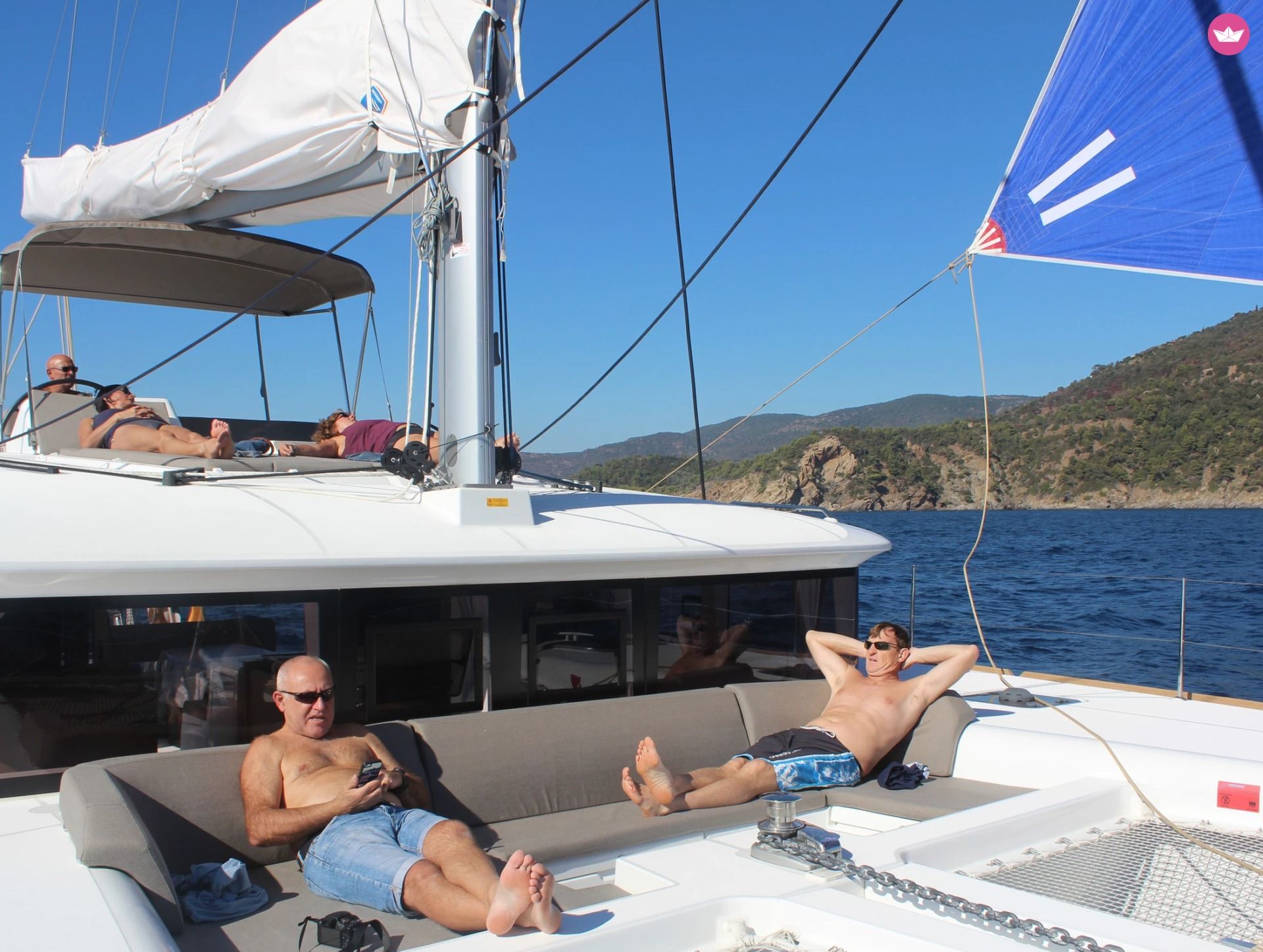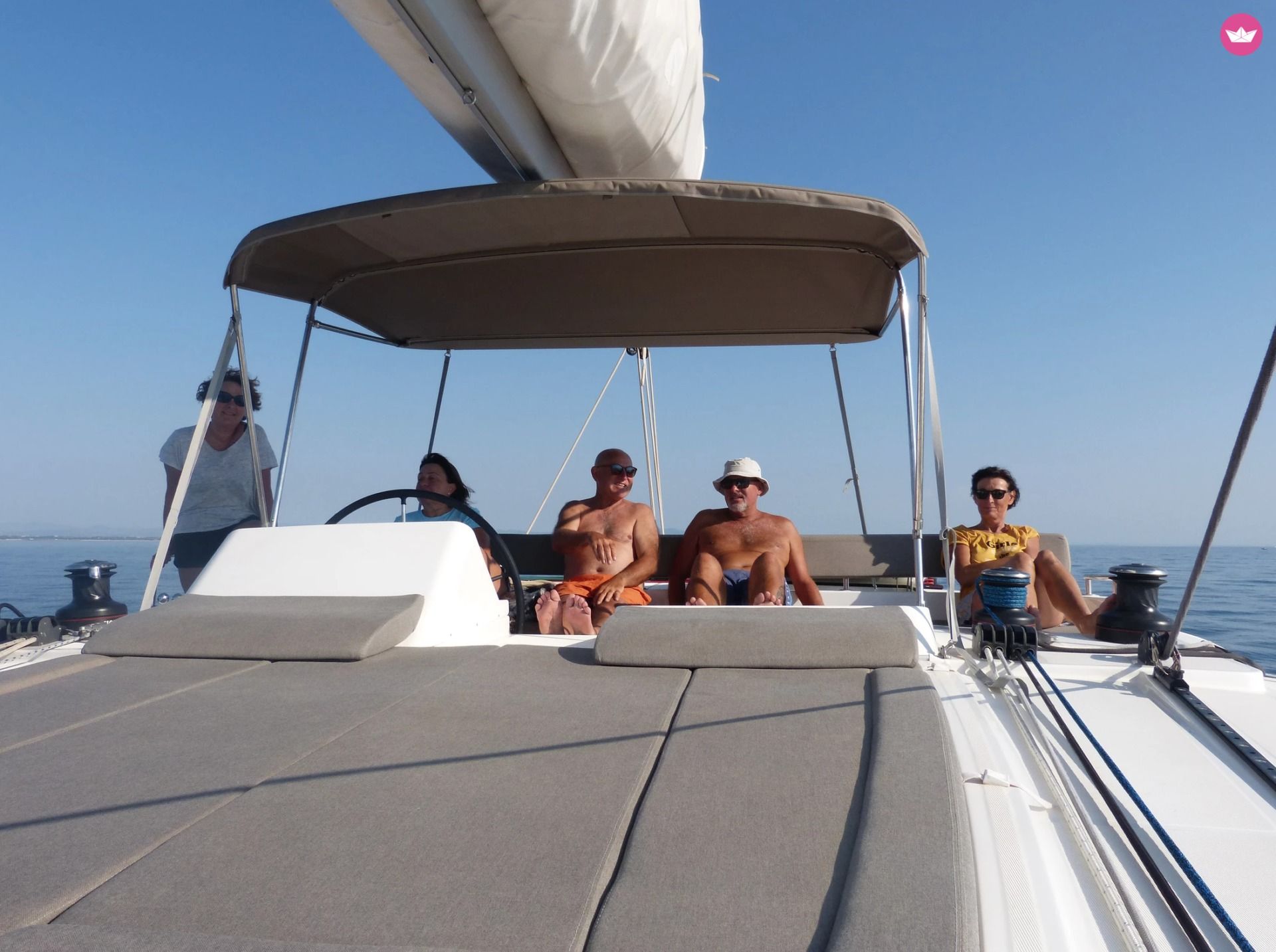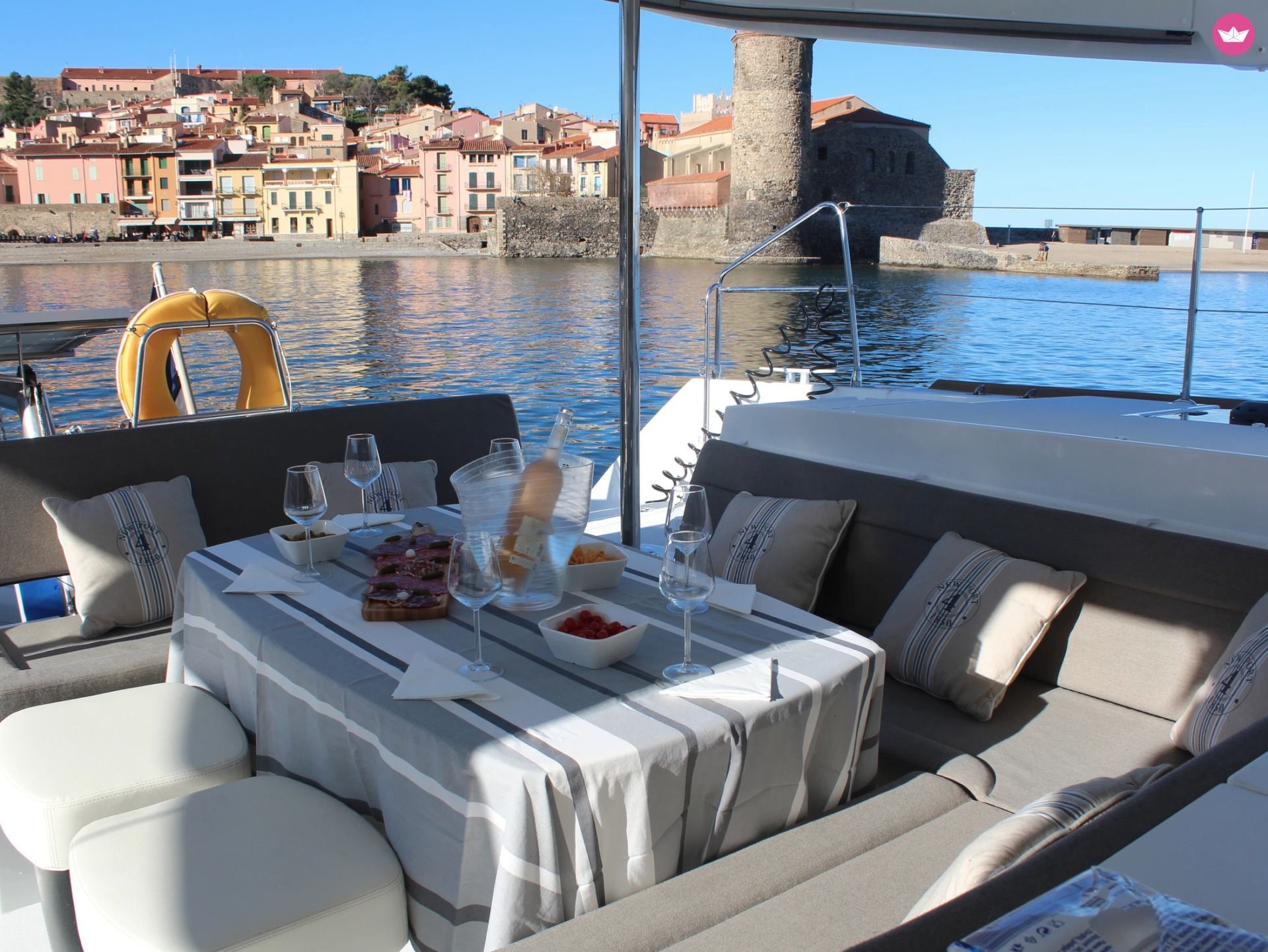 Description of PASCAL's catamaran , Bonjour à tous, Nous vous proposons d’embarquer à la journée sur notre catamaran Lagoon 450 Fly Bridge de 2016 ! Le programme de la journée se partage entre 4 heures de navigation et une excursion dans la magnifique ville de Collioure. Départ du Port de Canet-en-Roussillon à 10h du matin : Nous larguerons les amarres du Port de Canet-en-Roussillon pour une navigation de 2 heures en direction du village typique de Collioure. Arrivée à midi à Collioure Après une navigation de 2 heures, nous arriverons vers midi pour un mouillage de rêve dans l’anse de Collioure. Vous serez déposés en annexe dans le magnifique petit port de Collioure où vous aurez la possibilité de vous promener et de vous restaurer en toute tranquillité. Retour à 15h au départ de Collioure Le retour est prévu à 15 heures pour une arrivée au Port de Canet-en-Roussillon vers 17 heures. Vous trouverez à son bord une annexe semi-rigide 3,60m motorisée (Honda 20 cv). Un large bain de soleil avant. Son principal atout est le flybridge qui se situe sur le toit du carré central et qui permet de naviguer avec une vue à 360° ! N'hésitez pas à me contacter via la messagerie Catamaran Yacht Charter pour échanger, préparer et planifier votre sortie au mieux ! Bonne journée et à bientôt !