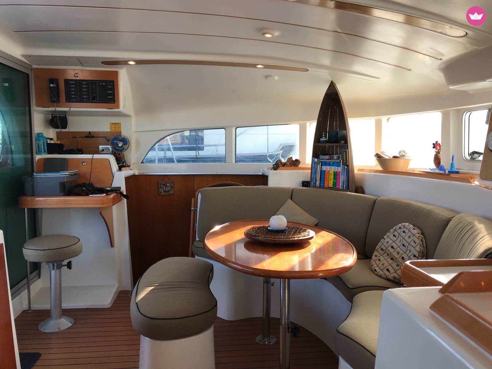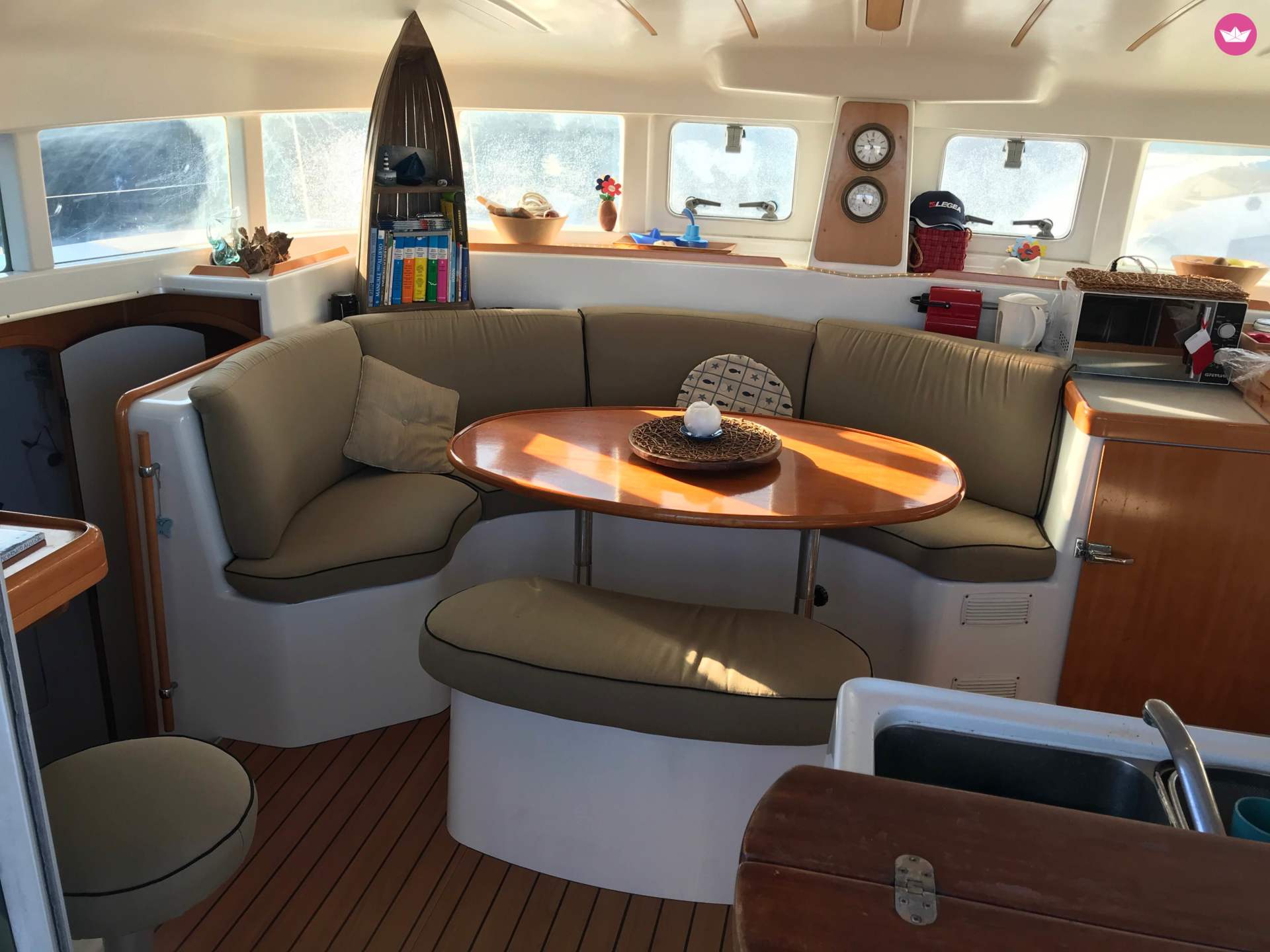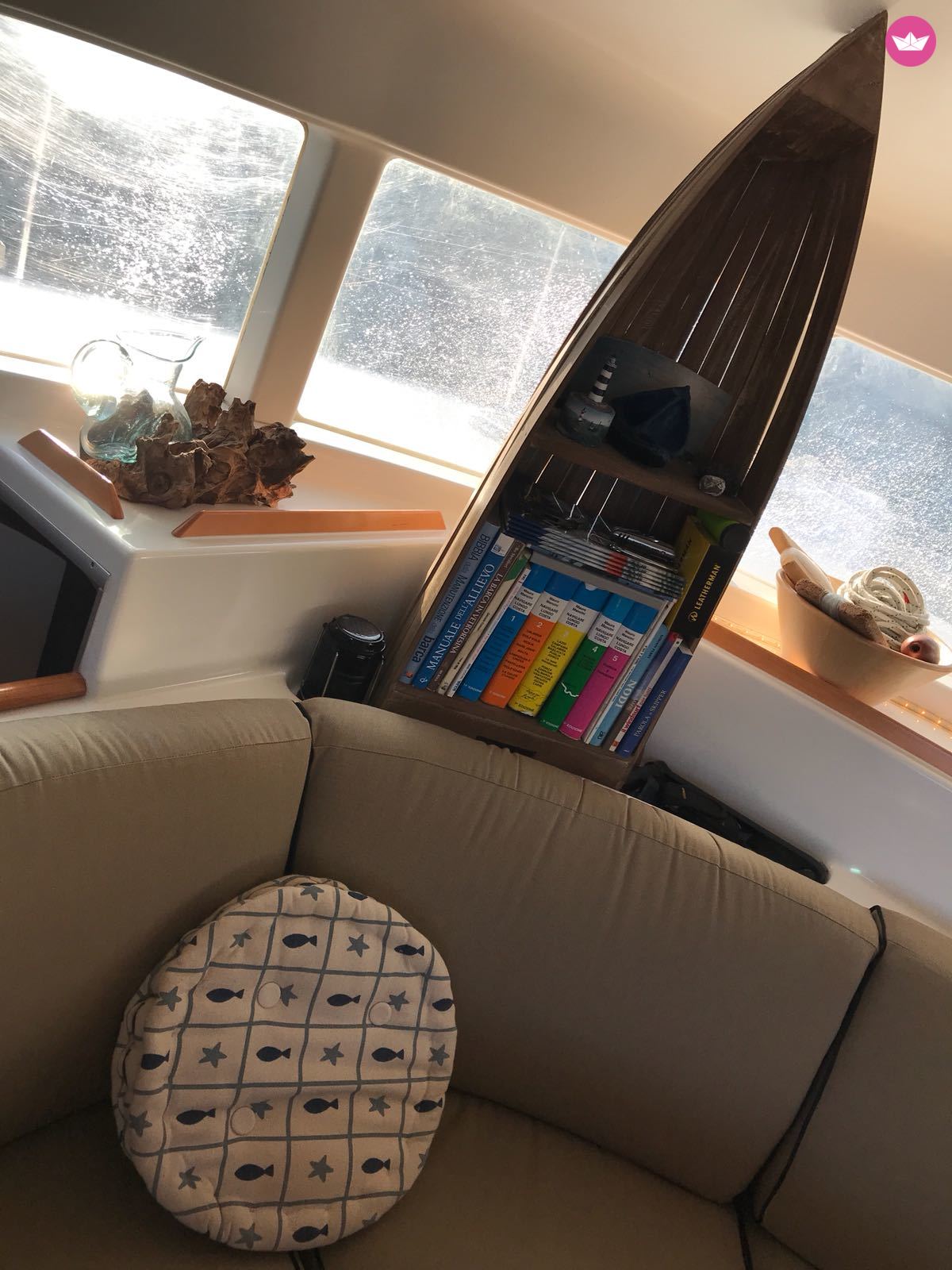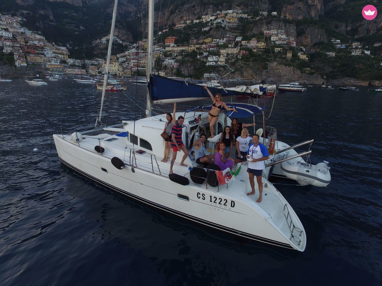 Description of Carlo's catamaran Sail aboard this beautiful catamaran to discover, from another perspective, some of the most beautiful and exclusive locations in Campania and in the area of Naples! This catamaran, Lagoon 380, can comfortably accommodate up to 12 passengers while offering 8 comfortable beds. It has 6 cabins (4 doubles and two singles) for a total of 10 beds (8 passengers and 2 crew members). It has two bathrooms, transformable dinette of wood and a full equipped kitchen. It is also equipped with every comfort, and you can find on board a tender/dinghy from 2.5 horses with fiberglass keel. There's also a canoe on board. During the week on board, there will be many locations that you will have the opportunity to discover: from the Flegree Islands (Ischia and Procida), the Neapolitan Island (Capri), the Amalfi coast with Positano, Nerano, Praiano, Vietri sul Mare, Furore, Conca dei Marini, Amalfi and Sorrento. We could also visit the Emerald Cave near Amalfi and the island of “Li Galli” in front of Positano. You will have the opportunity to make pleasant aperitifs or try excellent dinners in typical Neapolitan restaurants that you can find along the coasts or on the islands. The hospitality on board is assured! The price of the skipper is not included in the rates indicated and cost 150€ for day. Galley, fuel and any moorings are to be considered apart, except for the mooring of boarding and disembarking. Bed linen and set of three towels: €20 per person; mandatory final cleaning: €180. Do not hesitate to contact me if you want more information. I'll wait for you on Catamaran Yacht Charter!