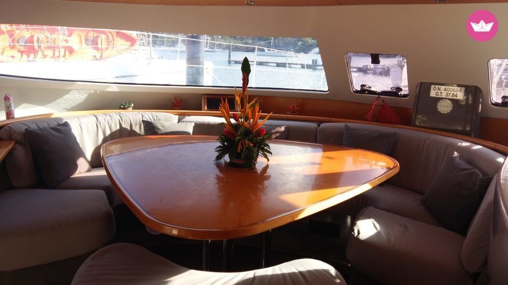 Description of Jacqui's catamaran Charter our Fountaine Pajot Bahia 46 from Saint-Vincent, Caribbean.The catamaran has 3 double cabins for 6 people. A complimentary kit (with rum, coke, water, wash up liquids, soap, paper napkins, trash bags, and a bag of ice in the fridge) will be given to you upon arrival. Leaving from the island of Saint-Vincent in Saint-Vincent and the Grenadines is a real advantage. You will be on the northernmost island of the Grenadines, allowing you to simply sail south to visit other Grenadines islands such as: Bequia, Battowia island, Baliceaux, Mustique, petit Mustique, Sevan island, Canouan, Tobago cays, and more. Also, Saint-Lucia is located right on top of Saint-Vincent (north) if you have a longer charter. If you have a question, you can send it to us via the Catamaran Yacht Charter messaging system. See you soon in the Grenadines!