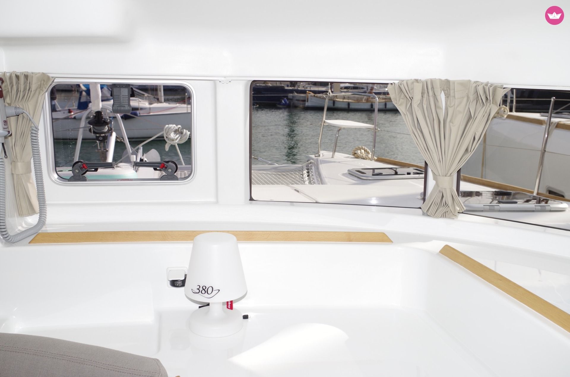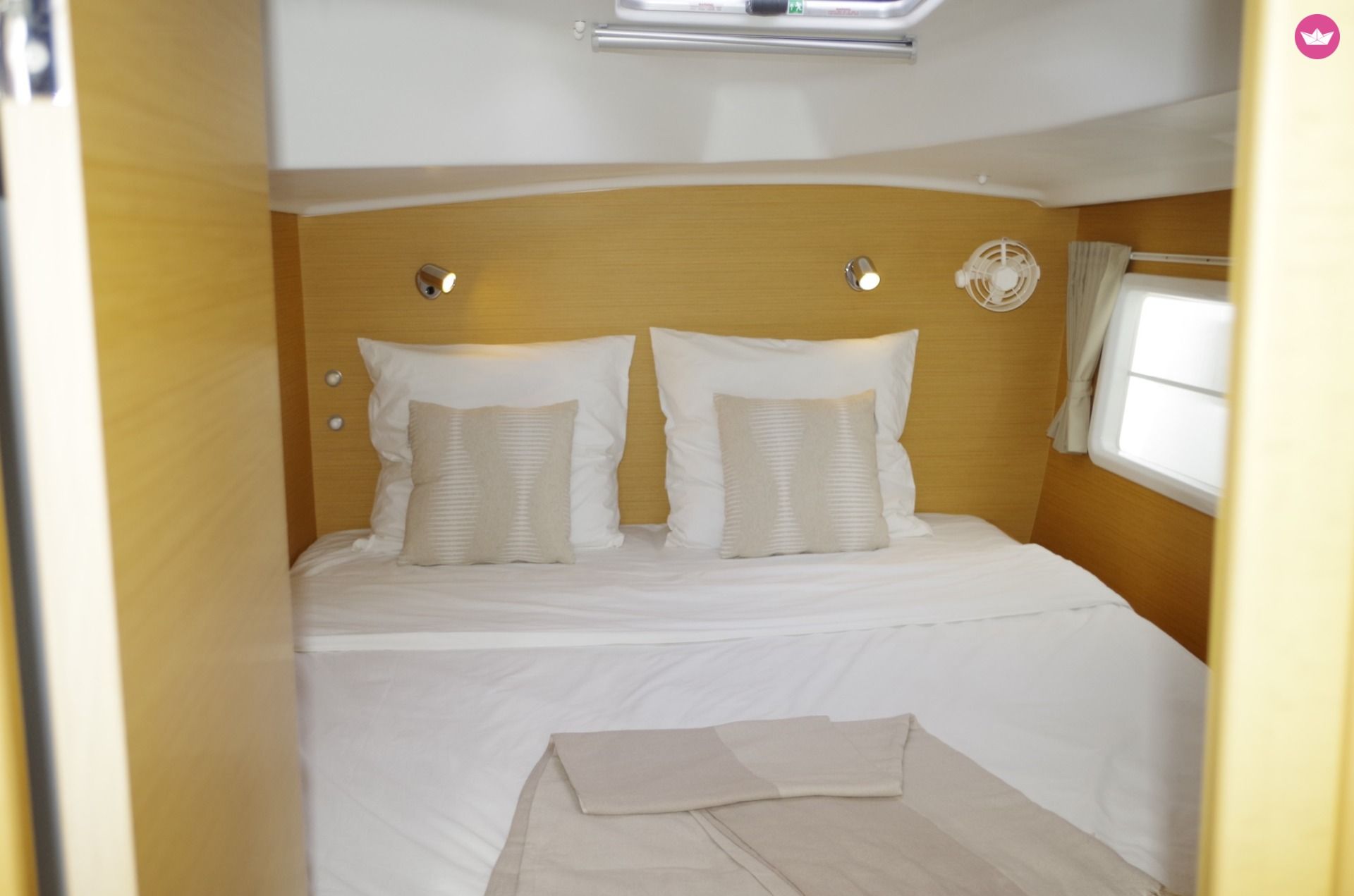 Description of Dominique's catamaran , Bonjour à tous, Je loue mon Lagoon 380 au Port du Brusc, catamaran habitable et maniable idéal pour la croisière. Il est bien évidemment tout équipé pour la navigation et l'habitabilité, plaisant à manœuvrer à la voile et avec ses deux moteurs. Au portant, il dépassera aisément les 10 noeuds si le vent le permet, tout en gardant un comportement très sécurisant et stable. En montant à bord de ce catamaran très récent de 2016, vous comprendrez rapidement les raisons de son succès, en effet il dispose de 4 cabines doubles pour un total de 10 couchages, ce qui est exceptionnel pour un bateau de cette taille. Son carré est également très bien agencé et lumineux, avec une vision à 360 degré sur l'extérieur, parfait pour profiter des paysages et mouillages de rêves que propose la région. Voguez vers les Calanques, l'Archipel de Riou, les Îles d'Hyères et du Levant, destinations de charme à seulement quelques heures de navigation. Forfait obligatoire : Nettoyage : 150€ Pile et gaz : 40€ Forfait optionnel : couchage : 20€ par cabine skipper : 250€ par jour N'hésitez pas à me contacter via la messagerie Catamaran Yacht Charter pour planifier votre prochaine croisière ! A très bientôt