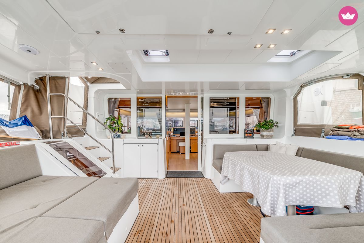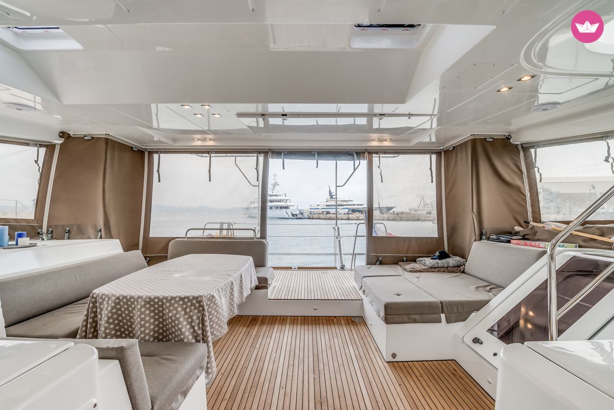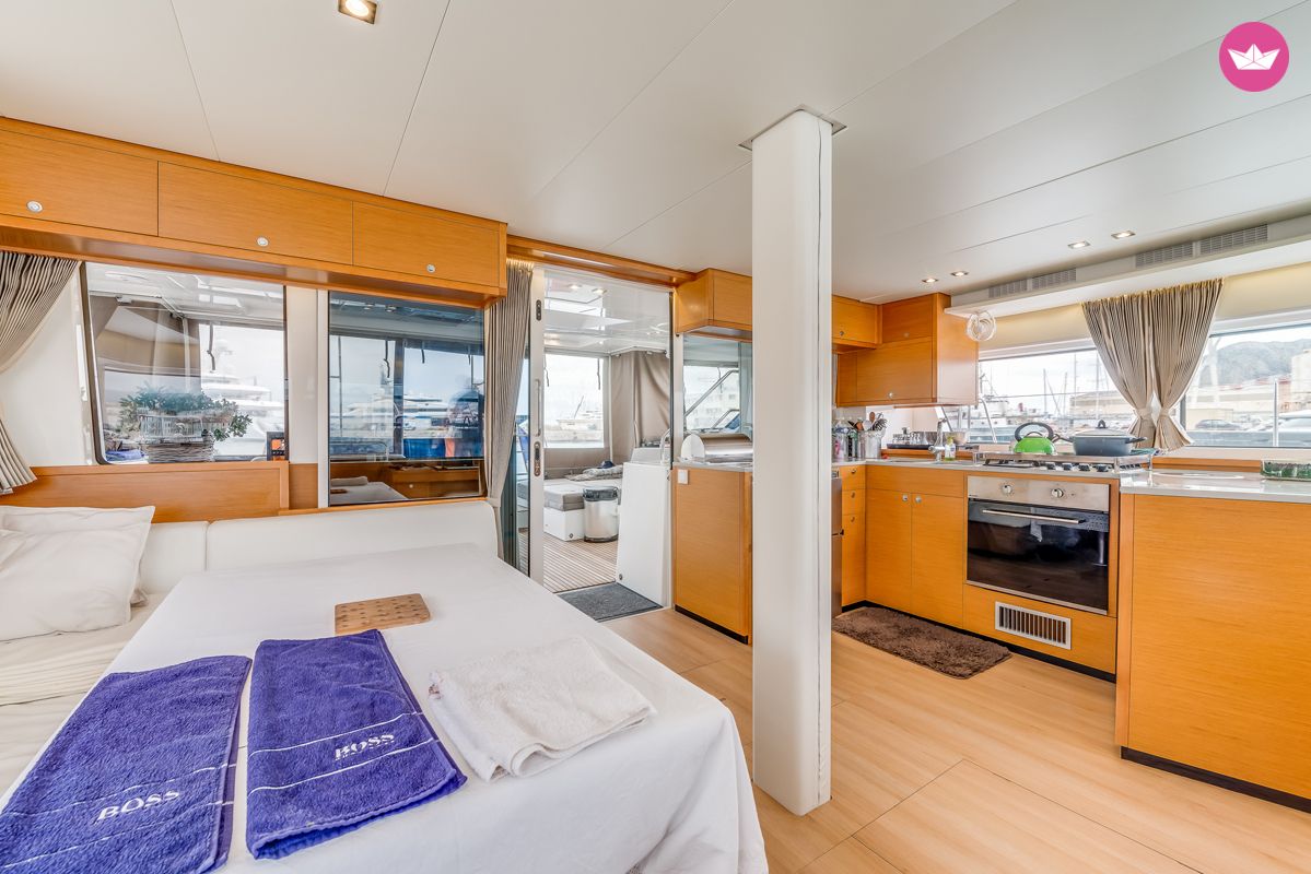 Description of Eric's catamaran , Bonjour à tous ! Je propose à la location ce superbe Lagoon 52F très bien équipé. Les qualités de ce splendide catamaran ne sont pas à décrire : il est très confortable, sécurisant, marin et propose une bonne vélocité en navigation. C'est une référence dans sa catégorie. Il s'agit de la version 4 cabines du modèle, il peut donc accueillir 8 personnes en croisière. Il propose de grands espaces bien aménagés, aussi bien intérieurs qu'extérieurs, avec un carré très vaste et lumineux. Le bateau est suréquipé : dessalinisateur, panneau solaire, éoliennes, barbecue, plancha, machine à café, générateur, lave-linge... Vous trouverez également une grande annexe motorisé d'un hors-bord 50 CV. Le port de départ est Hyères, ce magnifique cata est idéal pour une croisière d'une semaine en famille ou entre amis à la découverte des îles de Porquerolles, port Cros, Giens... Vos projets de navigations dépendront du temps que vous disposez, mais sachez que ce bateau a la possibilité de vous emmener où vous le souhaitez ! Informations : - Embarquement le samedi à 9h00 et débarquement le vendredi à 14h30 (vide de tout effet personnel). - Inclus dans le tarif : literie, serviettes de toilettes et de plages. - Non inclus : Skipper obligatoire à 250 €/jour et nettoyage fin de location à 300€. Option : Hôtesse 250 € / jour. Caution par CB ou chèque : 1000€ Pour plus d'informations, n'hésitez pas à me contacter via la messagerie Catamaran Yacht Charter. Veuillez me consulter pour des devis personnalisés. A bientôt à bord ! Eric