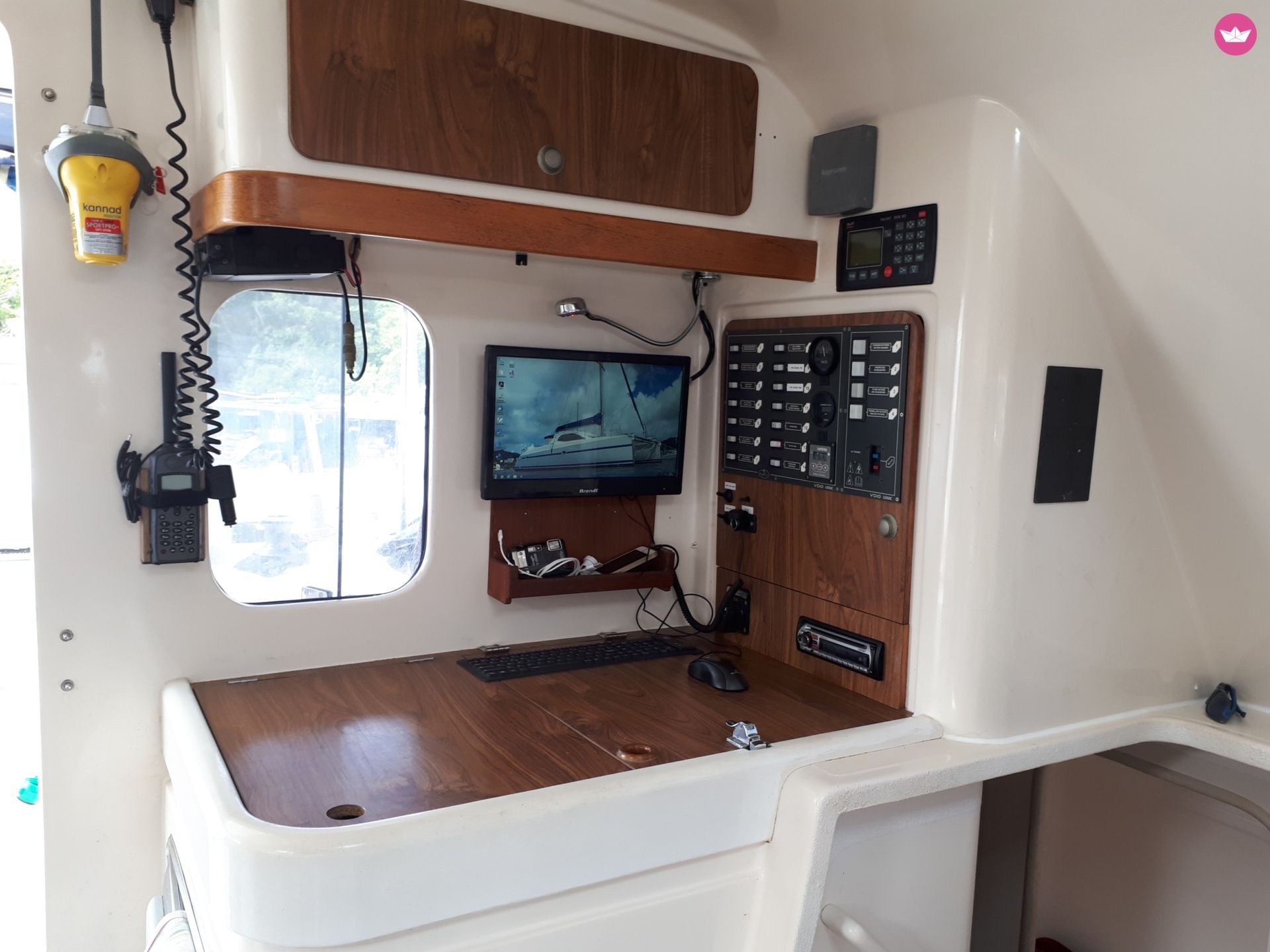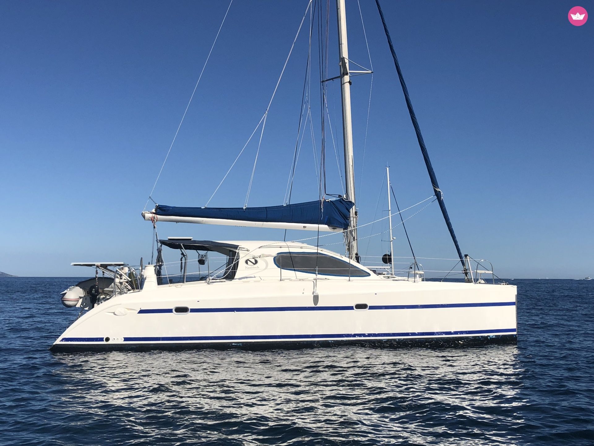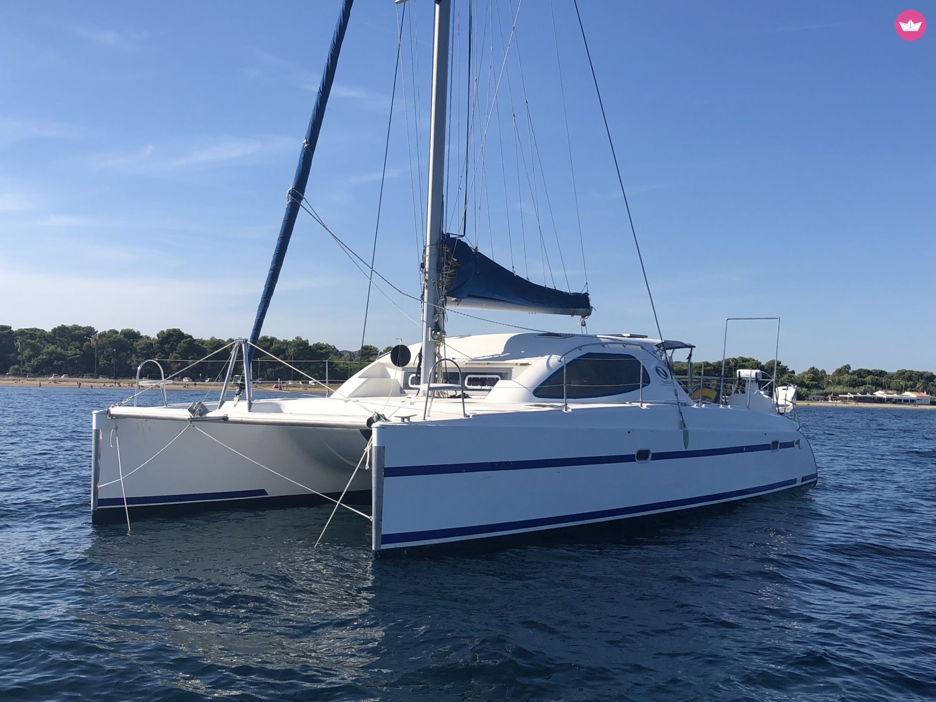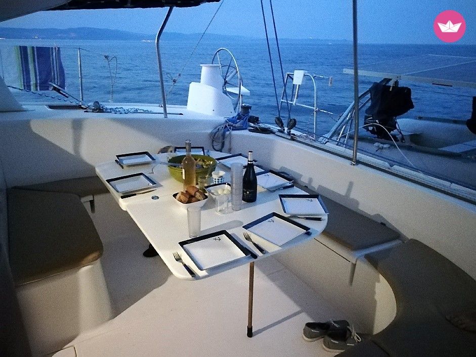 Description of FRANCIS's catamaran Bonjour, My catamaran is for rent; Bare boat or charter with skipper are possible This catamaran built in 2000 have been refitted this year (new cushions, new standing rigging, new dinghy, new ropes, new sails, computer routing software...She cross atlantic back from caribean in May Equipped with 4 cabins (double beds) and a simple bed, 9person can live onboard. Two head/bathrooms, kitchen, inverter 220 V & 110 V, solar panels...etc The catamaran is located 5 mn from the airport. You can cruise to 'les iles d'Or", Porquerolles , Port Cros and le Levant, but also to Marseille, or St Tropez . Extras : Skipper ( 200€ par jour) If you need some more details, please send me an email. Francis.