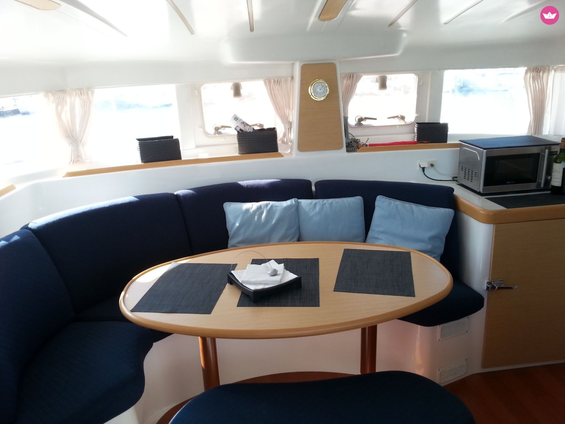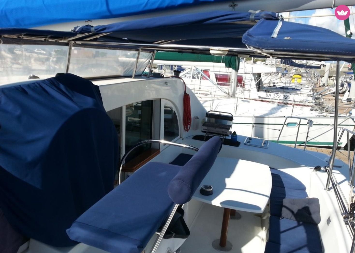 Description of Alain's catamaran , Catamaran de 2007 équipé pour navigation hauturière .4 cabines, 2 cabinets de toilette J ai remonté ce bateau du sud du Portugal en Mai 2016 il est très sécurisant pour de la navigation grand large, j ai navigué été 2016 de La Rochelle a saint jean de luze Il se situe dans la marina du Verdon sur Mer qui est à peu prés à 10 heures de La Rochelle ou du Bassin d Arcachon La description complète sera envoyée sur demande Possibilité de préparation de l avitaillement. Découverte de la région -initiation a la voile pour débutant Prestation : formule jour : 56 euro pars personne (8 maxi) 2007 catamaran equipped for ocean navigation .4 cabins, 2 toilets J walked up the boat in southern Portugal in May 2016 it is very safe for the open sea navigation, I have been sailed in 2016 from La Rochelle to Saint Jean de luze It is located in the marina of the Verdon sur Mer is on about 10 hours from La Rochelle or the Bay of Arcachon The full description will be sent on request Possibility of preparation of food bunkering