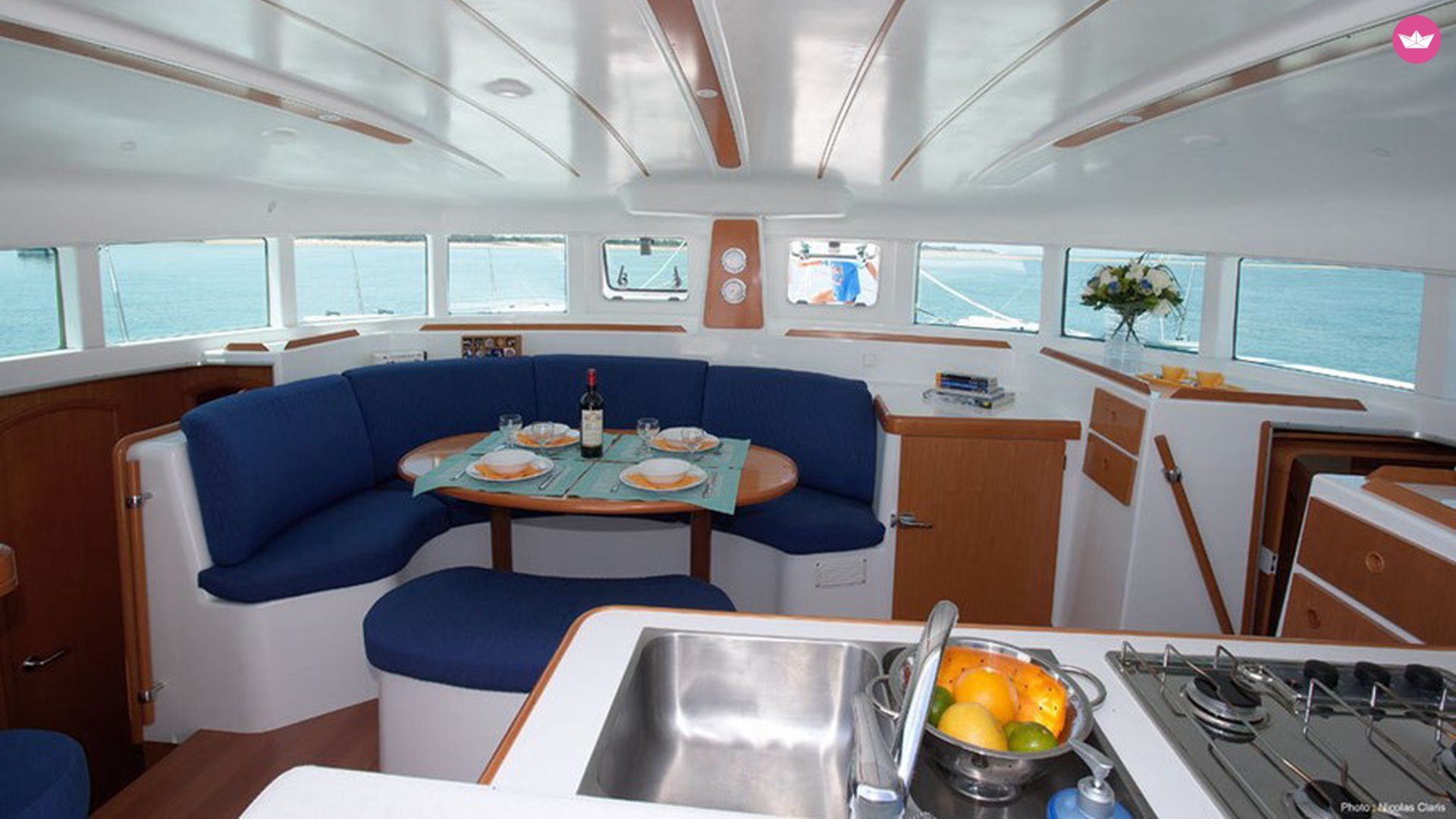 Description of Cristina's catamaran , El lagoon 380 S2 es un espectacular catamaran de 12 metros de largo por 6,5 de ancho, ideal para salidas con amigos o familia por sus amplios espacios y por contar con una capacidad autorizada de 12 personas en salidas diurnas y de 10 en salidas con pernoctaciones. Su travesía tendrá comienzo en las costas de Ibiza, en el puerto de San Antonio para ser exactos. Contara con gran libertad de tierra y podrá recorrer las magnificas calas e islas que rodean a la región. En cuanto al interior, la embarcación posee 2 baños completos, 4 amplios y luminosos camarotes, y un salon convertible. El catamaran viene completamente equipado: electrónica completa, ploter gps, radar, sonda corredera, VHF portatil, piloto automático, tv, inversor de 220, cargador de baterías, equipo de música, nevera, cocina con horno, tres neveras, con altavoces exteriores, bañera cubierta y bimini en gobierno, iluminación exterior, pescantes para auxiliar. Notar que el Pack Confort es obligatorio y el mismo incluye: limpieza, menaje de hogar, sábanas, toallas, auxiliar con fuera borda. Disponemos de una gran flota de Veleros y Catamaranes en Valencia. Consulta disponibilidad y precios por medio del servicio de mensajería de Catamaran Yacht Charter!