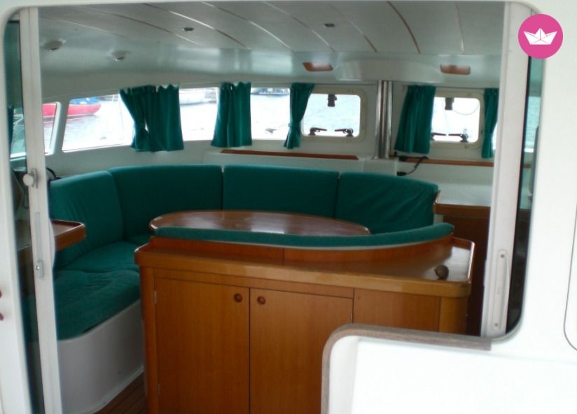 Description of PATRICK's catamaran , Bonjour, Rocksea, voilier d'exception, vous propose une évasion sur la grande bleue, un séjour de rêve au départ de la Martinique. . Pour votre plaisir, les locations à la journée, pour un week-end ou sur une plus longue durée sont proposés! Les points forts de Rocksea : - convivialité avec le grand carré à l’avant et le trampoline pour profiter pleinement de l’aventure. - confort avec ses 4 chambres doubles et 2 cabines uniques. Sa grande cuisine aménagée (four, frigo, …) et sa salle à manger ouverte sur la mer ! Sans oublier les deux salles d’eau munies de toilettes et douches.Gros desalinisateu 200l/h, winch électrique,bimini rigide, chauffage des cabines et carre,voiles et moteurs neufs. - du dépaysement : le trampoline pour la bronzette, des paysages inaccessibles par la terre... La mer à perte de vue. La liberté et l'osmose avec le milieu nature. Depuis Les Anses-d'Arlet, de nombreuses sorties s'offrent à vous. Vous pourrez mettre le cap sur l'île de Sainte-Lucie pour ensuite arriver à Saint-Vincent et les Grenadines. De superbes mouillages et de nombreuses criques s'offrent à vous. Tarifs Skipper : 150€ / jour Si vous souhaitez plus d'informations, vous pouvez m'envoyer un message via le site Catamaran Yacht Charter. A très vite.