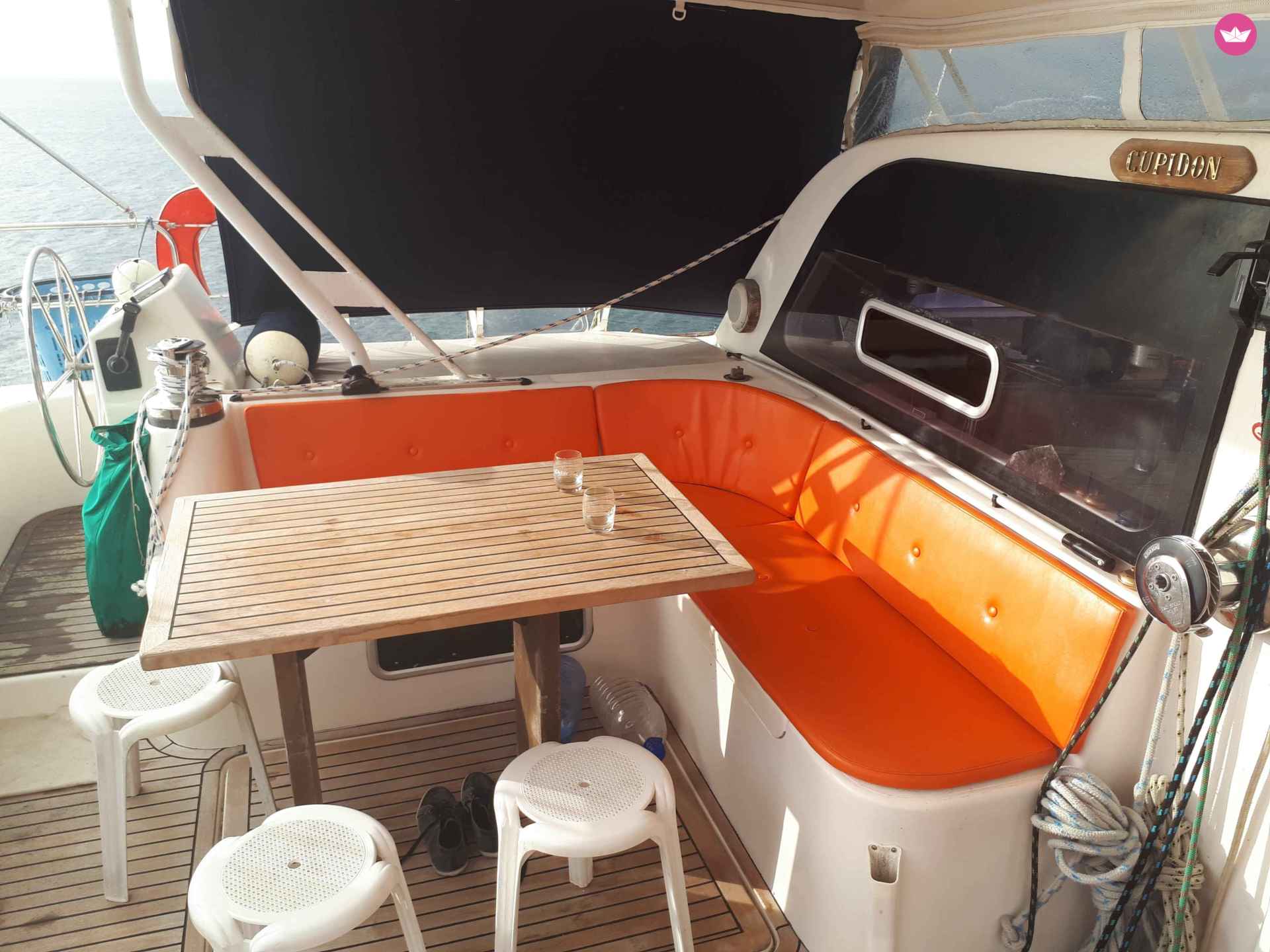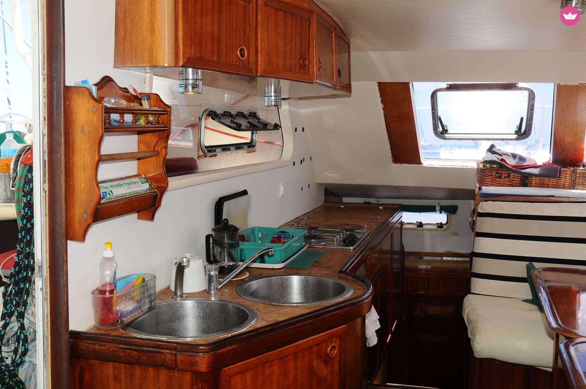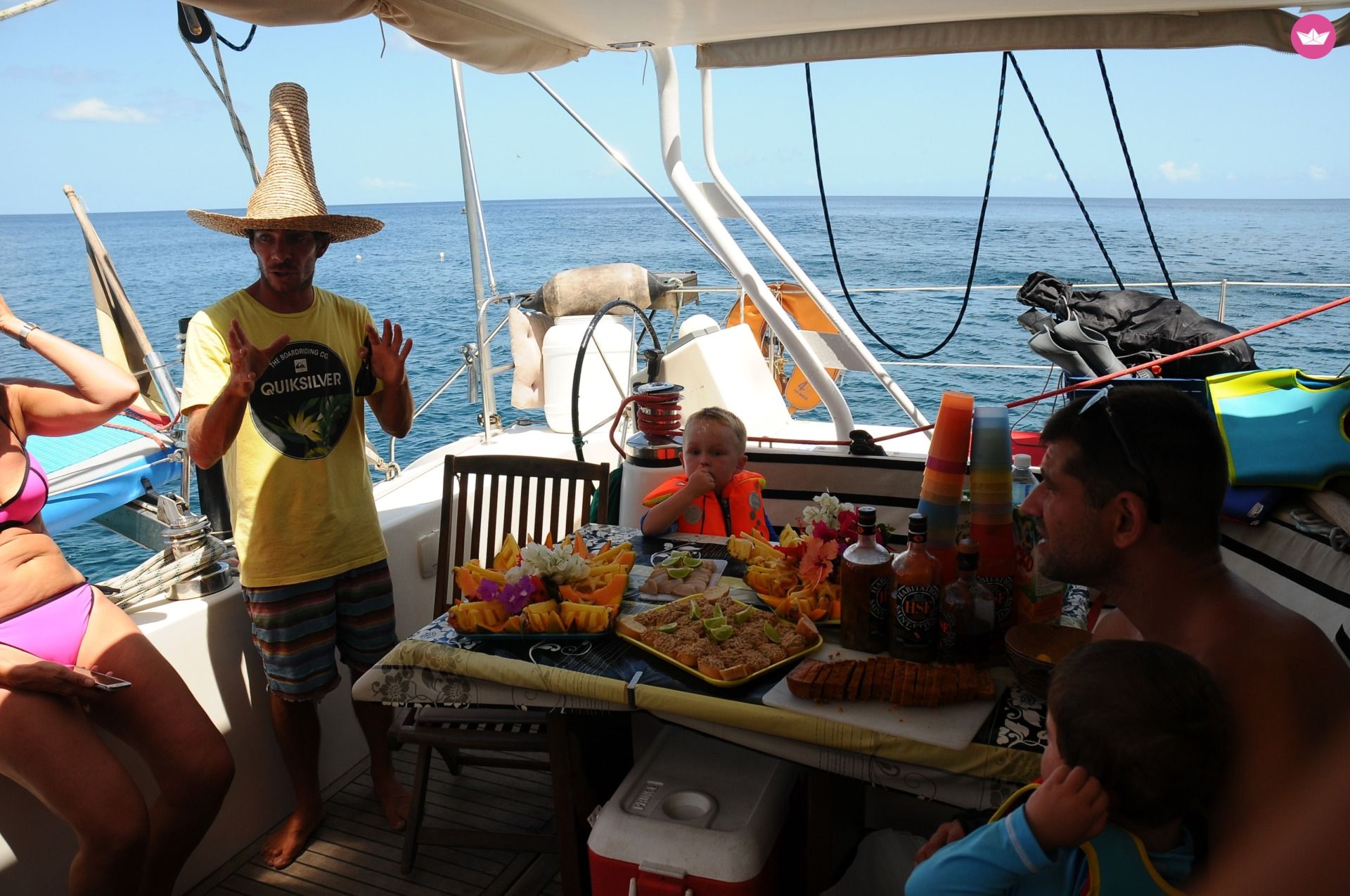 Description of Francis's catamaran , Calendrier mis à jour regulièrement et réponse rapide Le catamaran est un Catana 42S rapide et confortable . Son équipement est très complet (4 cabines doubles pour 8 passagers panneaux solaires, convertisseur, geenaker, paddle board, kayak, etc.) et son tarif attractif qui démarre à 2 600 € la semaine en font une des meilleures offres du moment. Cupidon se loue avec skipper ou marin-guide, de préférence. Cela vous laisse la possibilité de skipper vous même le catamaran accompagné d un équipier confirmé et discret ou de vous laisser mener pour votre croisière Cupidon est disponible au départ de la Martinique ou moyennant un supplément, de n'importe quelle île de l'arc . A votre demande nous pouvons organiser votre transfert Aéroport/Marina. Si vous avez des demandes particulières, faite le nous savoir, nous ferons de notre mieux pour les satisfaire. TARIFS Nos périodes de tarification sont décalées par rapport à celles proposées par le site. Du 21 décembre au 5 janvier : 4 400 €/semaine ( com incluse ) et 4800 avec skipper ou équipier guide du 6 janvier au 1 mai : 3 400 €/semaine et 3800 avec skipper ou équipier guide Du 2 mai au 20 décembre : 2600 €/semaine et 3300 avec skipper Vous réglerez la différence entre le prix payé sur le site et le tarif avec skipper/marin directement sur place. Durant votre croisière, la caisse de bord est à votre charge Elle est destinée à payer les repas, les boissons, le gasoil, les taxes douanières ainsi que les bouées. Comptez 15 à 30 euros/jour/personne selon votre appétit et le parcours. Elle est à ajouter au tarif de location et sera gérée par vos soins. Pour information : Gasoil : Comptez en moyenne deux heures de moteur par jour = 2X6 litres = 12€/jour Les Taxes de douanes, elles varient suivant l'île visitée (de 0 à 80€) pour l'équipage entier à chaque entrée sur un territoire étranger. Les bouées : lorsque le mouillage d'une ancre est impossible, il convient de payer une bouée pour la nuit. Comptez 15 à 20€/nuit. Repas et boissons : tout dépend de votre appétit et des restaurants envisagés durant votre croisière. Un budget de 15€/jour/personne est raisonnable. Merci de nous interroger nous nous adaptons au mieux de votre programme : one-way, organisation des transferts Francis le propriétaire et skipper pro se fera un plaisir de vous accueillir à bord pour vous faire découvrir les Caraïbes et sa passion des mammifères marins Cupidon est spécialement équipé pour la recherche de mammifères marins ( dauphins, baleine, cachalot ) hydrophone, go pro d étrave, matériel photos, annexe de 15cv ... Ce sera assurément une belle croisière ! Possibilités de combiner votre séjour avec une villa situé au Morne vert dans le nord Caraïbe de la Martinique véritable petit coin de paradis N hésitez pas à me contacter, je peux vous aider à organiser votre séjour combiné dans le nord de la Martinique en vous mettant directement en relation avec des prestataires de qualités A très bientôt Francis