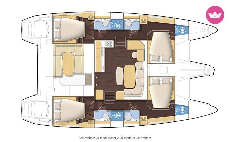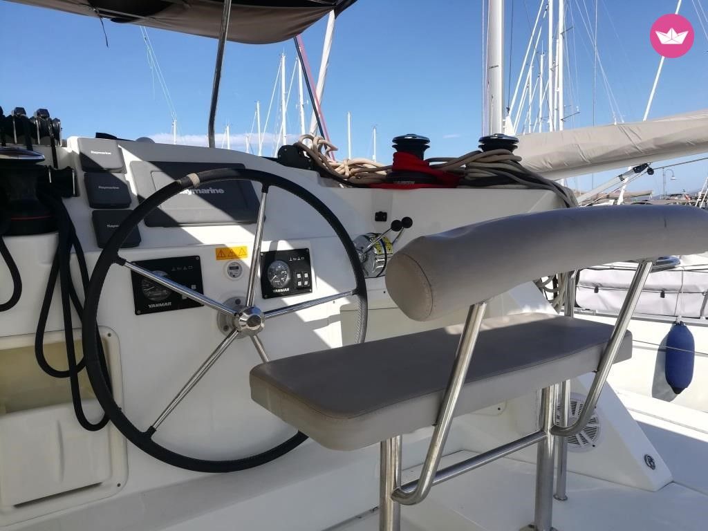 Description of Vittorio's catamaran Lagoon 421 - year 2012 - 4 cabins, 4 toilets, skipper cabin and toilet. From Tropea to Aeolin Islands. No place better represents the true nature of the Mediterranean as well as the Aeolian Islands with their blend of fire sea and earth; the “Sciare di fuoco” (fire slides) of Stromboli and the mud baths of Vulcano recall the origin of the islands. The depths surrounding the archipelago are home to a great variety of marine life, from dolphins to whales and sperm whales. The island of Panarea is green, trendy, alternative, irreverent and lives only at night. The remote Filicudi, Alicudi and Ginostra islands have no electricity and enjoy their wilderness secured by an untainted sun. In the center of the archipelago Lipari and Salina ensure secure moorings with elegant and sophisticated seaside villages.