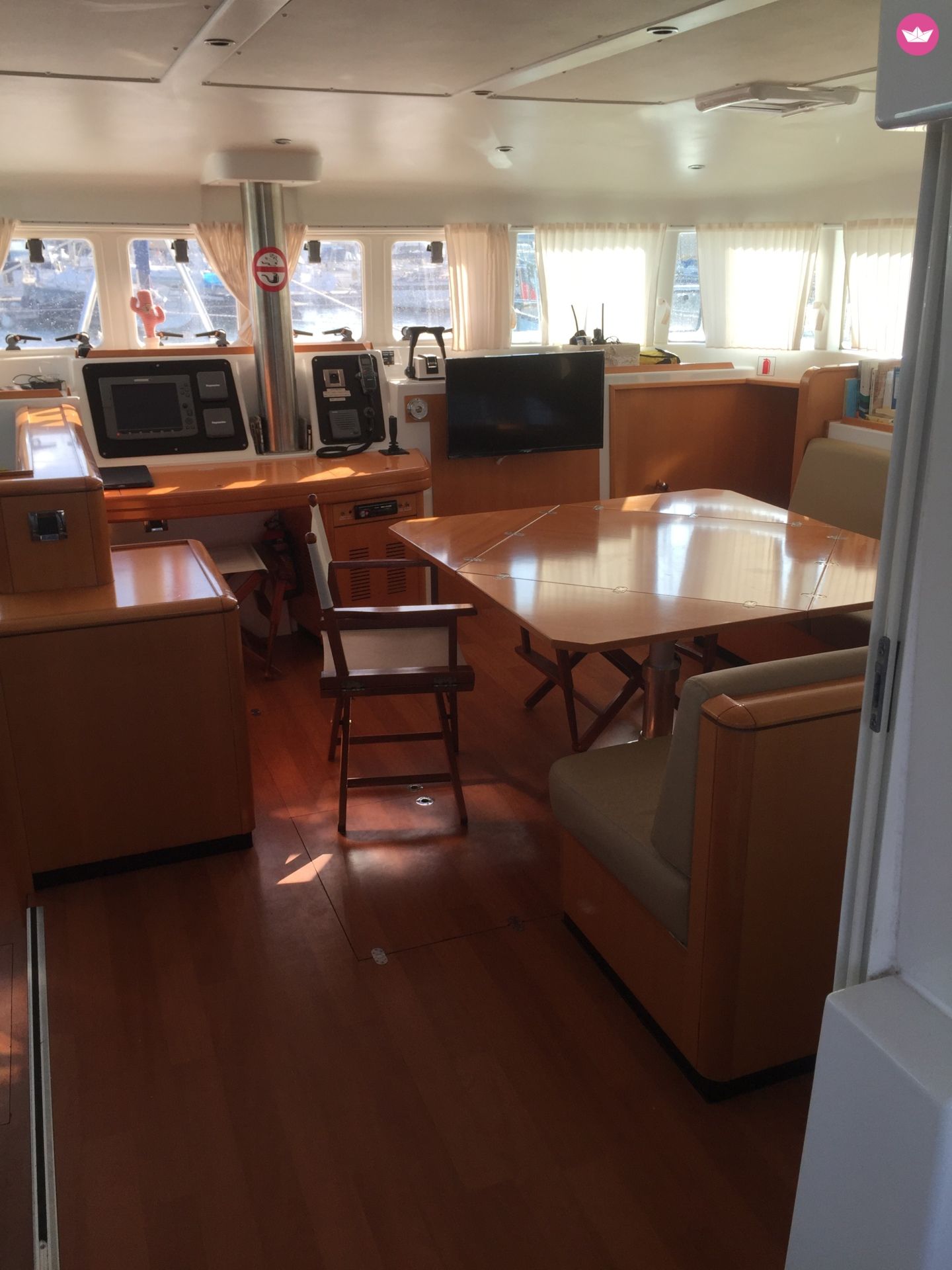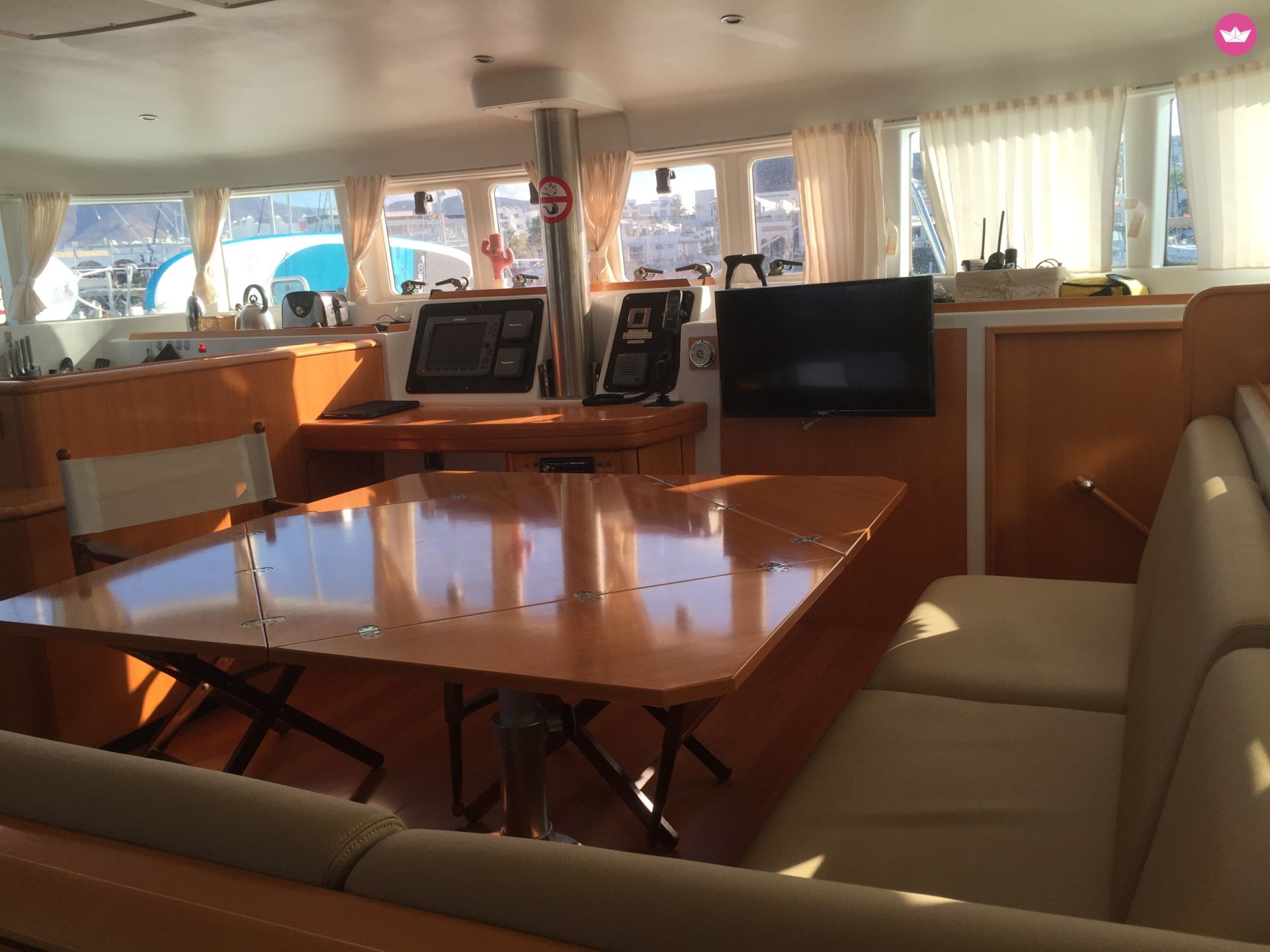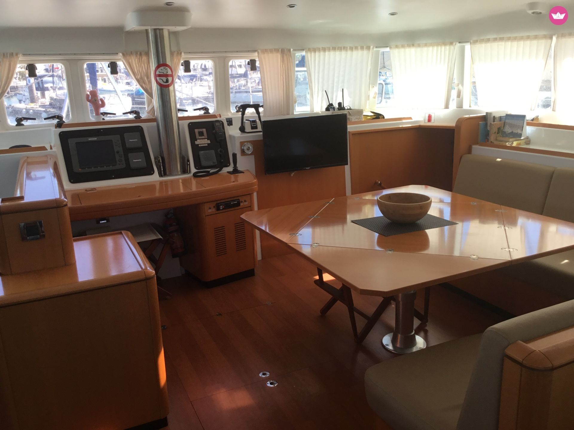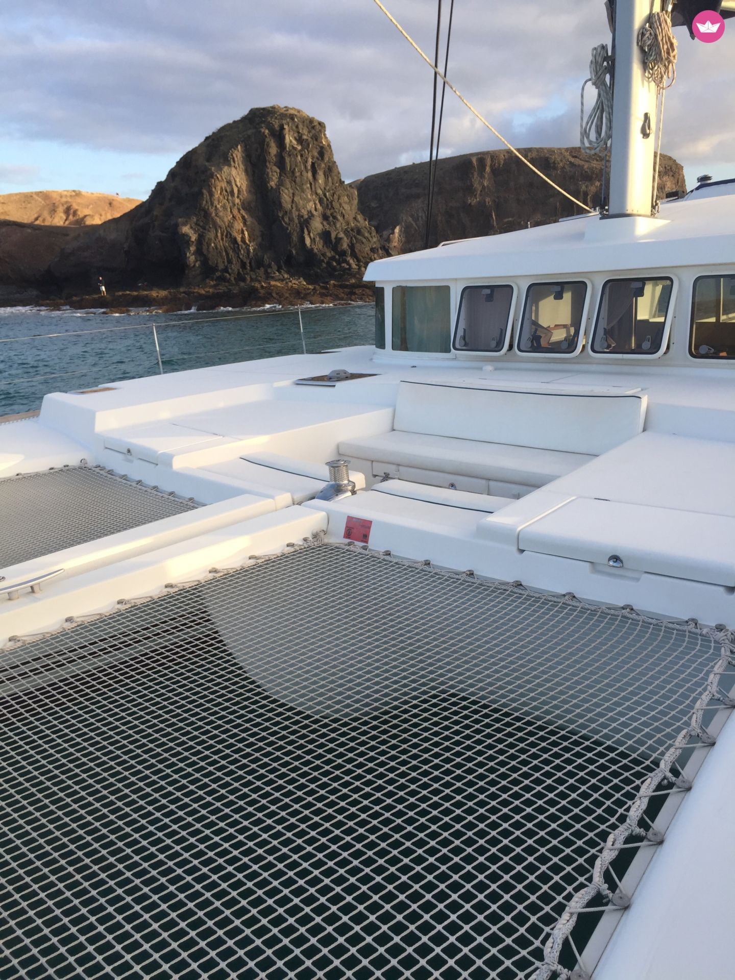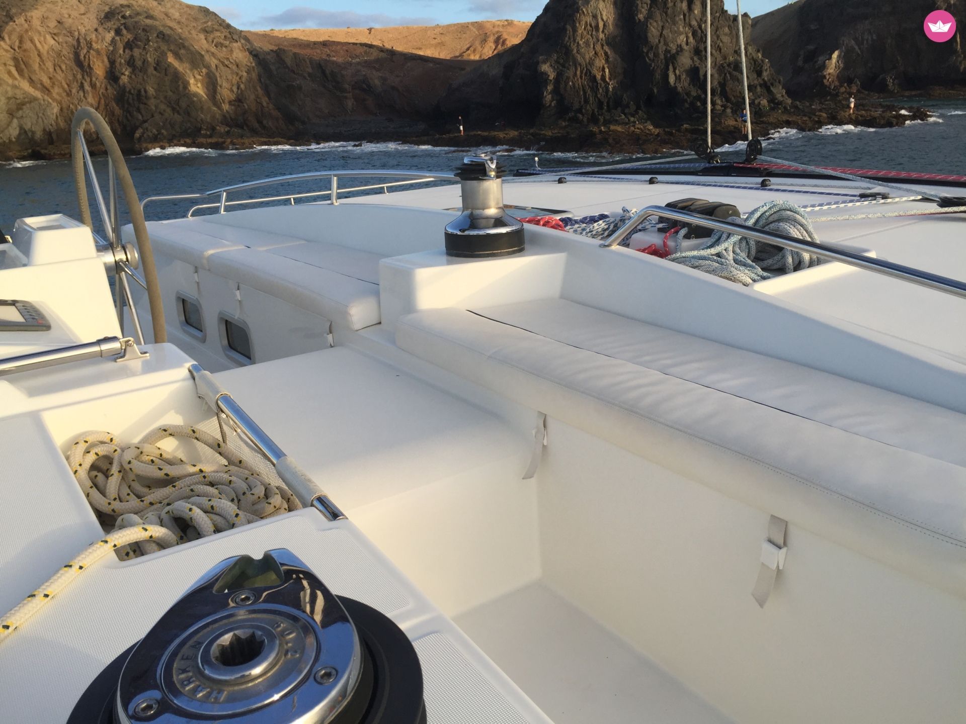 Description of Nacho's catamaran , Ofrecemos un Lagoon 500 del 2007 totalmente remodelado y equipado en el 2017. A bordo dispondrá de lugar para hasta 10 pasajeros mas la tripulación (obligatorio). La embarcación se ofrece en Lanzarote durante la temporada baja (Enero a Mayo; Noviembre a Diciembre). Durante el resto del año podrá adquirir la misma en las Islas Baleares. En cuanto al interior, contara con 4 cabinas dobles con baño en suit, 1 cabina con literas con baño en suit, y una cabina para la tripulación. A lo largo de los 15,54 metros de largo encontrara todo lo que necesita para un máximo confort a bordo: Equipo de música con altavoces en interior y cubierta, TV en Salon , tabla Padel Sup, neumática de 4m con motor fueraborda, todo el equipo de seguridad, mesa interior y exterior para 10 invitados, Generador, potabilizadora, convertidor 220v, ventiladores, cocina de gas y horno, Microondas, Lavadora, 3 Frigorífico y 1 congelador. Debe notar que contamos con los siguienter extras obligatorios que no están incluidos en el precio en lista: - Tripulación: 220€ / día; 1.540 € / semana. - Confort Pack: 420€ / semana; incluye gas, limpieza final, sabanas y toallas. También disponemos de los siguientes extras opcionales: - Azafata/cocinero: 100€ / día; 700 € / semana. - Tabla de Pádel Surf: 100€ / semana. - Equipos de Snorkel: 10 € / semana. - Internet Wifi a bordo: 50€ / semana. No duden en enviarnos sus dudas o consultas! Estaremos a su total disposición para resolverlas.