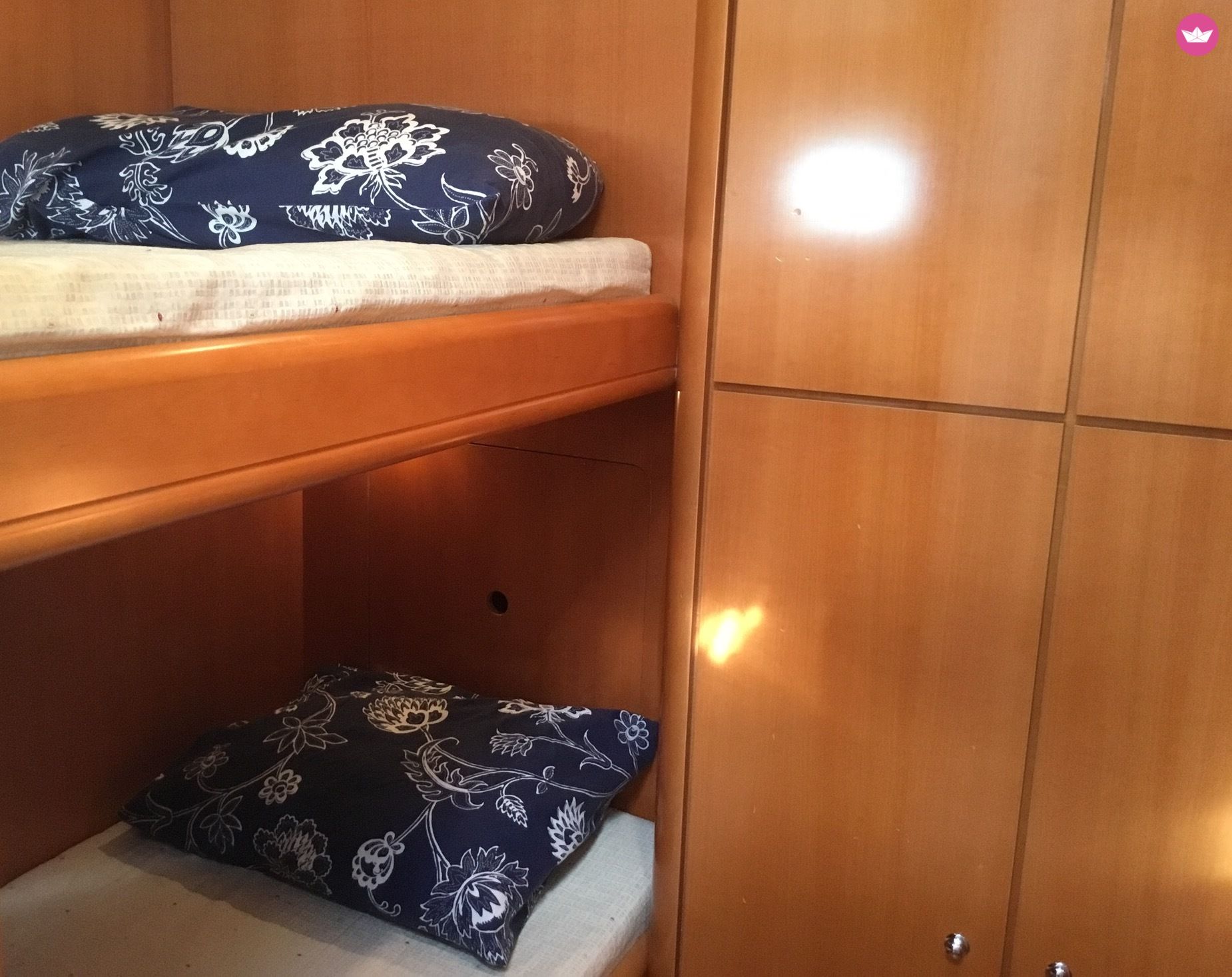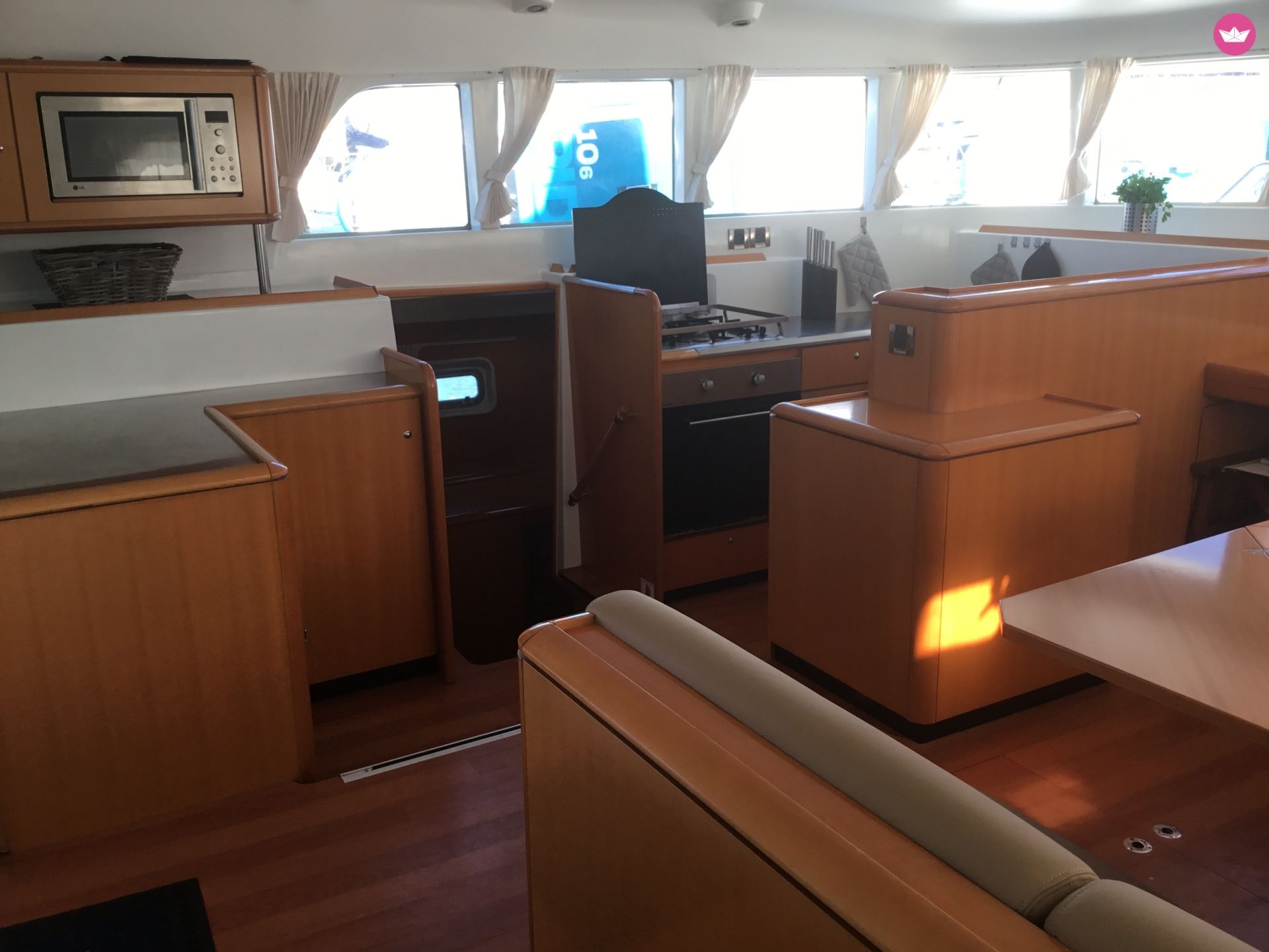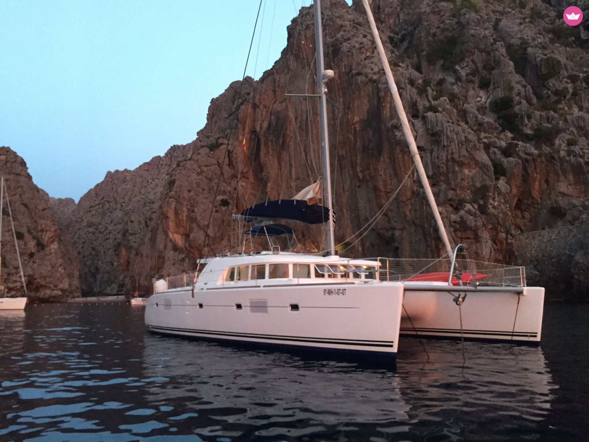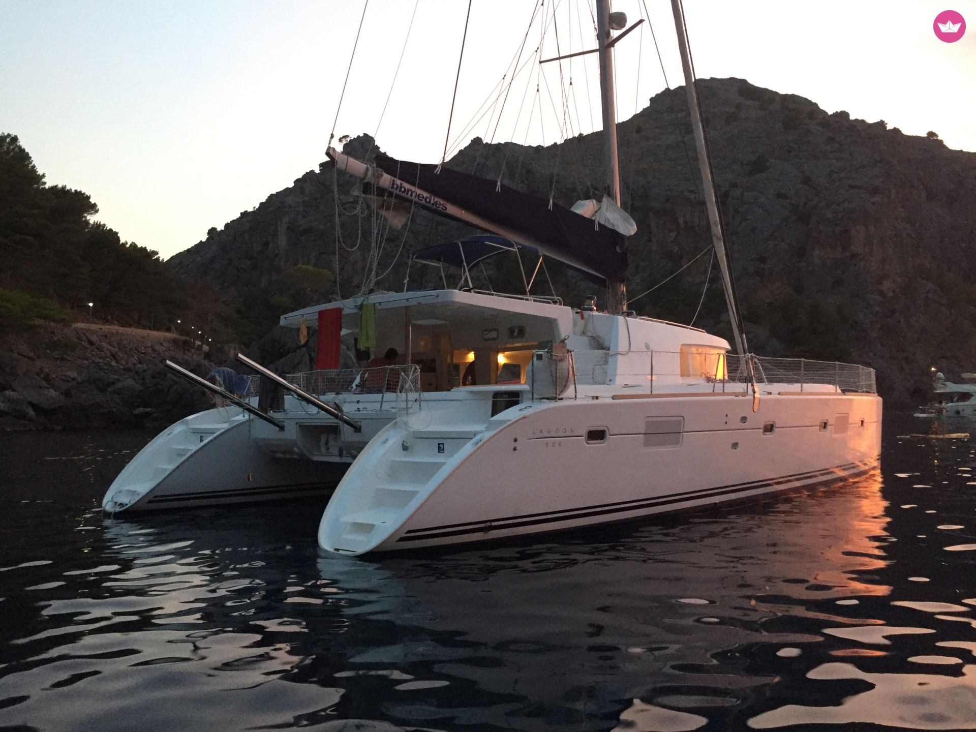 Description of Nacho's catamaran , Ofrecemos un Lagoon 500 del 2007 totalmente remodelado y equipado en el 2017. A bordo dispondrá de lugar para hasta 10 pasajeros mas la tripulación (obligatorio). La embarcación se ofrece en Lanzarote durante la temporada baja (Enero a Mayo; Noviembre a Diciembre). Durante el resto del año podrá adquirir la misma en las Islas Baleares. En cuanto al interior, contara con 4 cabinas dobles con baño en suit, 1 cabina con literas con baño en suit, y una cabina para la tripulación. A lo largo de los 15,54 metros de largo encontrara todo lo que necesita para un máximo confort a bordo: Equipo de música con altavoces en interior y cubierta, TV en Salon , tabla Padel Sup, neumática de 4m con motor fueraborda, todo el equipo de seguridad, mesa interior y exterior para 10 invitados, Generador, potabilizadora, convertidor 220v, ventiladores, cocina de gas y horno, Microondas, Lavadora, 3 Frigorífico y 1 congelador. Debe notar que contamos con los siguienter extras obligatorios que no están incluidos en el precio en lista: - Tripulación: 220€ / día; 1.540 € / semana. - Confort Pack: 420€ / semana; incluye gas, limpieza final, sabanas y toallas. También disponemos de los siguientes extras opcionales: - Azafata/cocinero: 100€ / día; 700 € / semana. - Tabla de Pádel Surf: 100€ / semana. - Equipos de Snorkel: 10 € / semana. - Internet Wifi a bordo: 50€ / semana. No duden en enviarnos sus dudas o consultas! Estaremos a su total disposición para resolverlas.