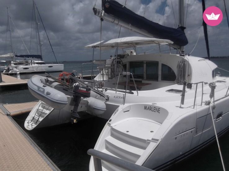 Description of Marina's catamaran , Profitez d'une belle sortie en mer des Caraïbes en montant à bord de ce Lagoon 380. Un catamaran audacieux avec peu de perte d'espace qui permet d'accueillir jusqu'à 8 personnes à son bord grâce à ses 4 cabines doubles et ses deux salles d'eau. La GV et le génois ont été changé en 2016 et il est très bien équipé pour une belle navigation hauturière au large de l'île principale de Cuba. Ainsi découvrez l'Archipel de Los Canarreos, magnifique regroupement d'environ 350 îlots au sud ouest de votre port de départ, Cienfuegos. Faites route vers l'Île de la Juventud et le parc national de Punta Francese, Cayo Largo, et leurs plages comme Playa Sirena et Playa Paraiso. La zone de navigation est fantastique, donc n'hésitez pas à prendre contact avec moi pour préparer ensemble votre prochaine croisière à Cuba. Options facultatives : Barbecue : 100€ Draps : 15€ / personne Instructeur de plongée : 75€ Skipper : 80€ Cuisinier : 50€ Rachat de franchise : 180€ Paddle : 150€ Options obligatoires : Nettoyage du bateau : 100€ Pour information : Si rachat de franchise souscrit, la caution tombe à 440€
