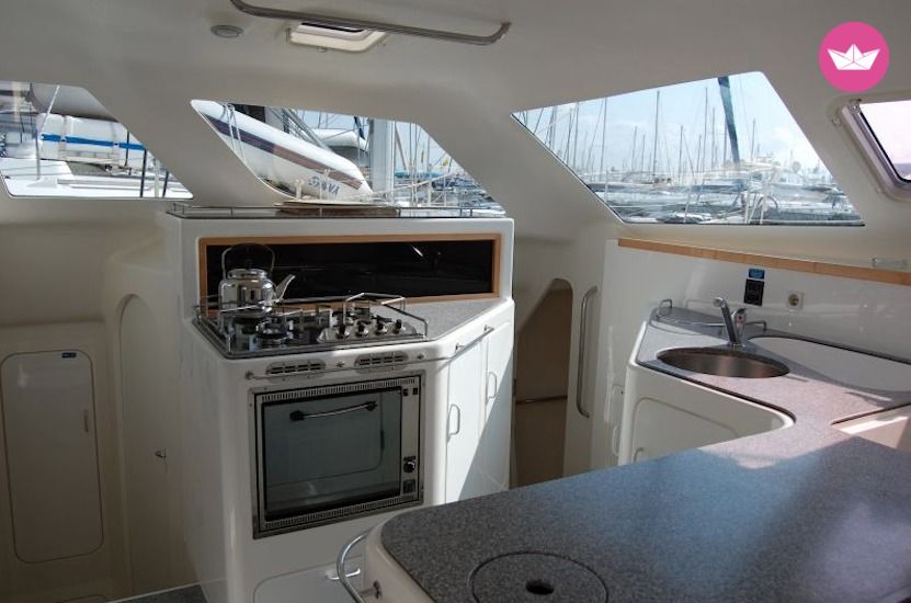 Description of Marina's catamaran , Nous mettons à votre disposition ce magnifique catamaran Voyage 440 au départ de Cuba, à Cienfuegos, ville inscrite au patrimoine de l'Unesco, 230 km au sud de la Havane. Point de départ idéal pour aller découvrir les nombreuses îles qui bordent le littoral du sud-Cuba. Ce superbe catamaran de 2006 dispose de 4 cabines et vous fera découvrir les plus beaux mouillages des Caraïbes. Il accueille jusqu'à 10 personnes à son bord en navigation pour votre plus grand confort. C'est l'idéal pour une belle virée en mer avec vos amis ou en famille. Découvrez Cayo Guano, Punta del Este ou Cayo Sal. Plongez à l'eau, enfilez vos masques et partez en sortie snorkeling dans le plus beau bassin aquatique du monde ! Puis laissez vous couler jusqu'à Cayo Largo et profitez d'une nature luxuriante qui ne vous laissera pas indifférent. Options facultatives : Barbecue : 100€ Draps : 15€ / personne Instructeur de plongée : 75€ Skipper : 80€ Cuisinier : 50€ Rachat de franchise : 180€ Paddle : 150€ Options obligatoires : Nettoyage du bateau : 100€ Pour information : Si rachat de franchise souscrit, la caution tombe à 440€