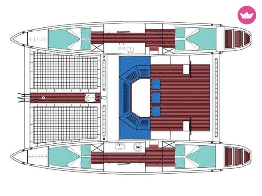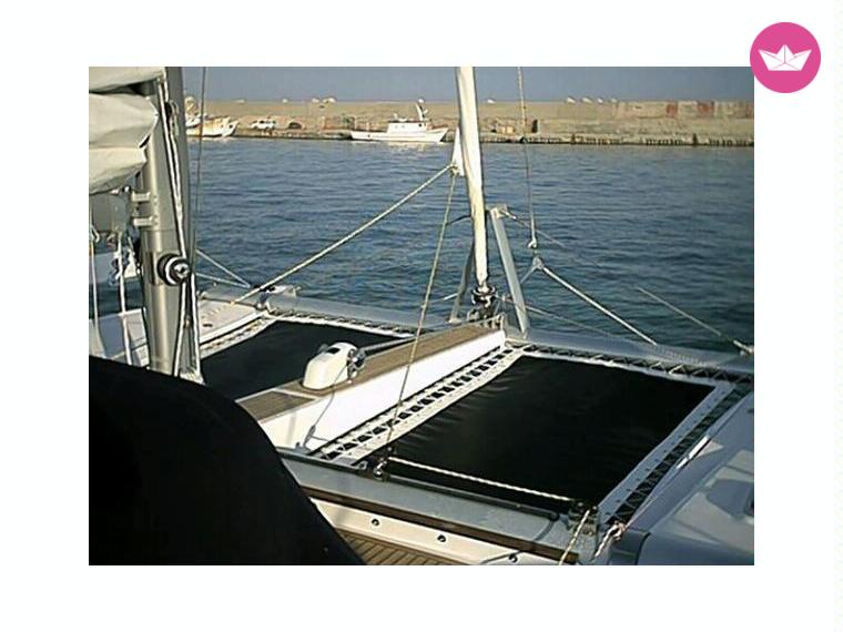 Description of Davide's catamaran Sun Way Lady Hawke 37 is a catamaran sailing cruise characterized by the generous exterior dimensions, the huge cockpit with sofa and table offers the possibility to spend pleasant moments in the company and functional outdoor kitchen allows the chance to prepare anything in cool and ventilated place. The large bow nets make the time of 'extremely relaxing tan inviting to relaxation and meditation. Inside it has 4 double cabins (2 per boat) and two bathrooms (one per hull). The two sleeping areas make all 'private internal permanence and quiet.