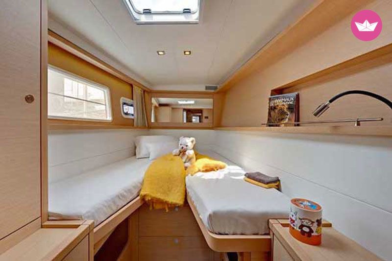 Description of Alessandro's catamaran , Noleggio nuovissimo catamarano Lagoon 450 del 2018 che ti permetterà di trascorrere giornate all'insegna del divertimento e della spensieratezza in compagnia di amici e famiglia! Il catamarano è dotato di numerosi comforts, quali: aria condizionata in ogni cabina e televisore. Eccezionale luminosità del salone e delle 4 cabine doppie, ognuna con il suo bagno. Le cabine hanno moltissima luce naturale, grazie alle ampie vetrate sugli scafi, la cucina è a "U" per il massimo comfort in mare ed è situata tra il pozzetto e il salone. I vani motore sono poi situati lontano dalle zone abitate e perfettamente isolati. Il catamarano viene noleggiato con uno skipper professionista a bordo (prezzo 180€ al giorno). A bordo potrai gratuitamente usufruire di ottima birra alla spina (senza limiti!), un gommone per gli sport acquatici, 2 canoe e attrezzatura da pesca e snorkeling. Fra gli extra: - Pulizie finali (obbligatorie) 180€ - Hostess 110€ al giorno - Wifi: 40€ per 5gb - Sistema di protezione: 150€ - Biancheria da letto 30 € a cabina - Asciugamani 10 € a persona Il noleggio di 3 giorni si intende con imbarco venerdì alle 17 e sbarco domenica alle 17.00 Prenota ora la tua crociera su Catamaran Yacht Charter!