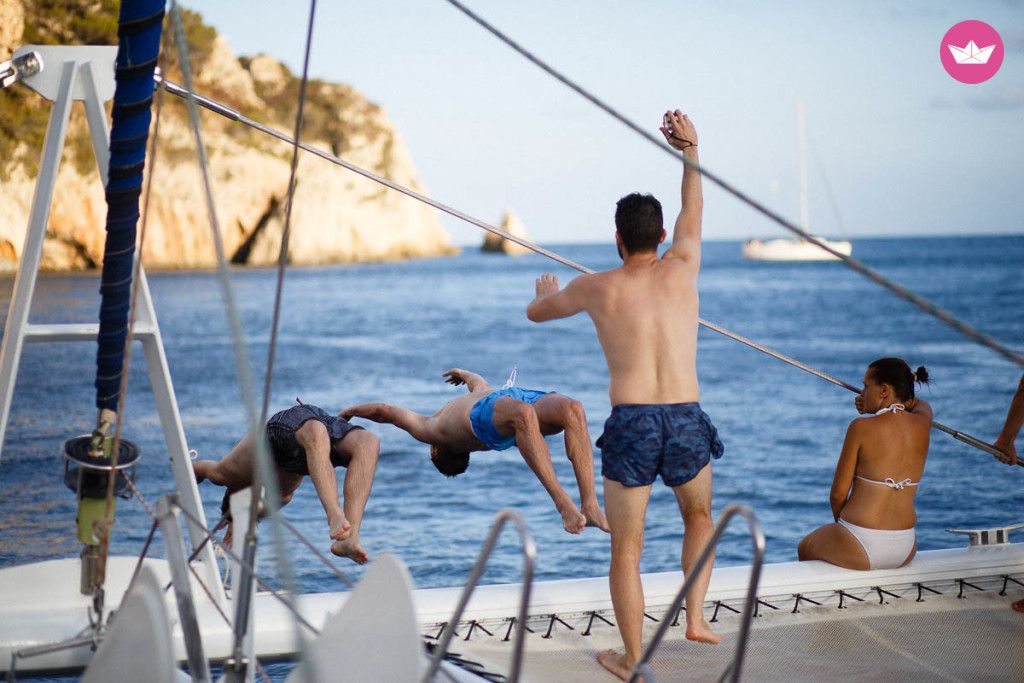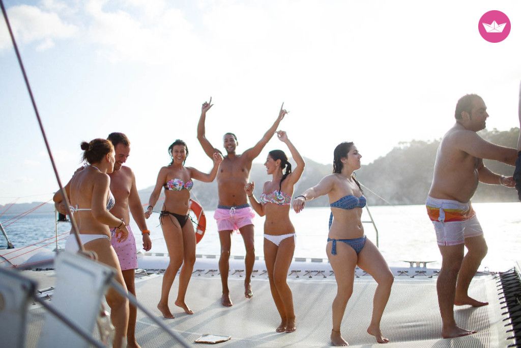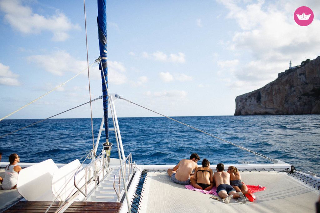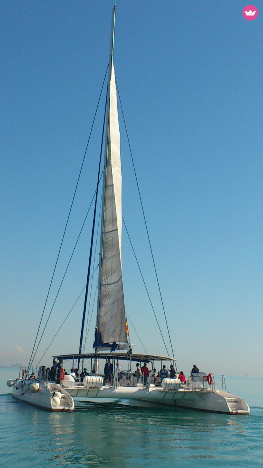 Description of Eva's catamaran , Les presentamos el inmeso Catamarán que gracias a su larga manga es muy estable y navega muy cómodamente. Su diseño especial, permite disfrutar de un día en el mar mientras se navega cómodamente a vela y se disfrutan las facilidades que existen a bordo. La embarcación dispone de asientos cómodos en sombra y en el sol, bar y servicio de catering, equipo de música & micrófono, solarium, escaleras y tobogán de baño, barbacoa, WC, lonas transparentes para la cubierta central (para protegerse de lluvia y viento) y sobre todo, la experiencia de saber como atender a nuestros usuarios. Temporada baja (1 Octubre - 31 Marzo): 1 hora:1089 euros 2 horas:1815 euros 3 horas: 2420 euros 4 horas:3025 euros 5 horas:3630 euros 6 horas:4235 euros 7 horas:4719 euros 8 horas:5082 euros Temporada alta ( 1 Abril - 30 Septiembre): 1 hora:1452 euros 2 horas:2420 euros 3 horas:3388 euros 4 horas:4235 euros 5 horas:5082euros 6 horas:5808 euros 7 horas:6413 euros 8 horas:6957.50 euros INCLUYE: barco, tripulación, salida del puerto base y regreso al mismo, gasoil durante la actividad, seguros y 21% IVA. NO INCLUYE: amarre fuera del puerto base, catamaranes adicionales, coste de traslado de catamaranes adicionales, catering, bebidas, y otros conceptos no especificados. Para grupos inferiores a 30 pasajeros se aplica un descuento de 20% sobre los precios generales arriba mencionados. Para grupos hasta 60 pasajeros se aplica un descuento de 10% sobre los precios generales arriba mencionados. Los descuento son aplicables solamente en caso de salida desde el puerto base. Los descuento no son aplicables para los sábados. Los precios arriba indicados son tarifas diurnas y de uso exclusivo de los catamaranes. Para actividades nocturnas puede haber un suplemento. Las tarifas están sujetas a disponibilidad y son válidas para fechas fuera de periodos de grandes acontecimientos deportivos.