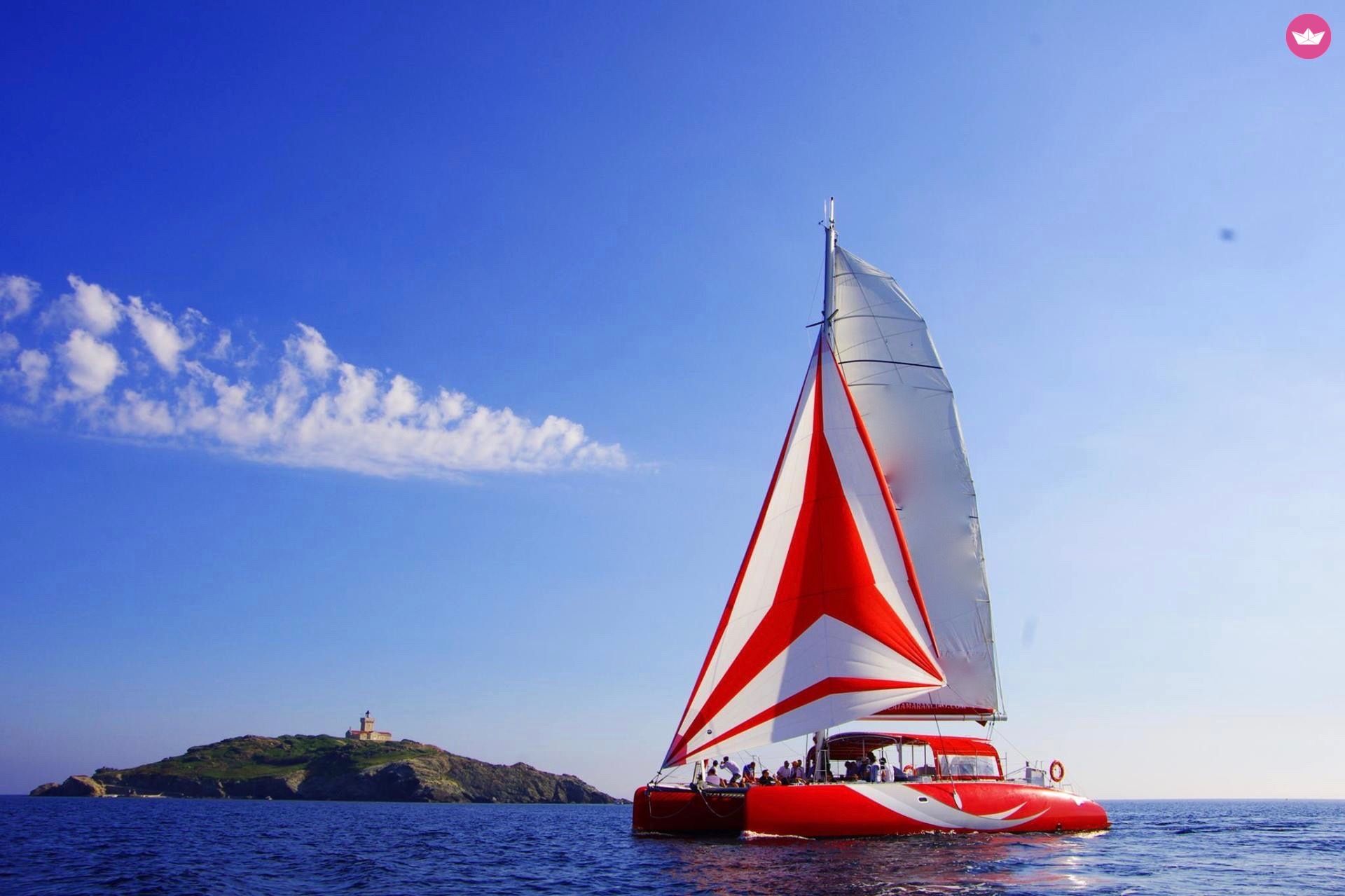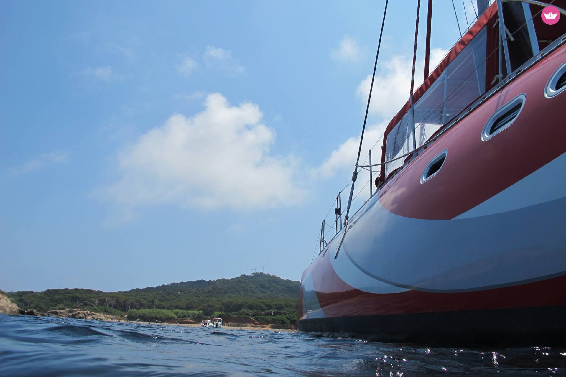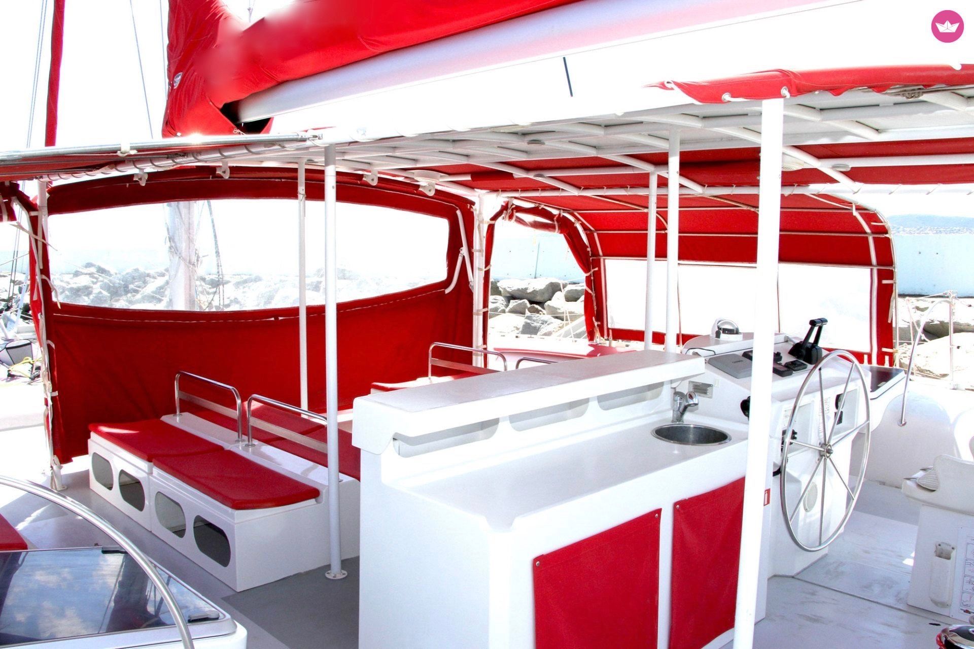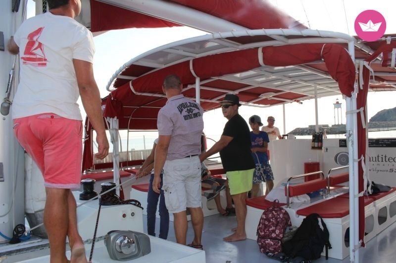 Description of François's catamaran , Nous vous proposons ce superbe catamaran pouvant accueillir 28 personnes! Il mesure 16 mètres et fait 8,10 mètres de large. Entièrement équipé pour votre confort, il dispose d'une sonorisation, de toilettes, de douches et d'un frigo ainsi que de nombreuses places assises. Nous proposons également des équipements nautiques de loisirs : Palmes, masques et tubas, Kayaks, Paddle Il est idéal pour lors de vos privatisations pour des évènements: enterrement de vie de jeune fille, mariages, anniversaires, team building. Vous pourrez ainsi profiter d'une belle sortie en mer et découvrir Saint Raphaël et ses alentours dans un cadre exceptionnel. Pour un groupe jusqu'à 28 personnes.