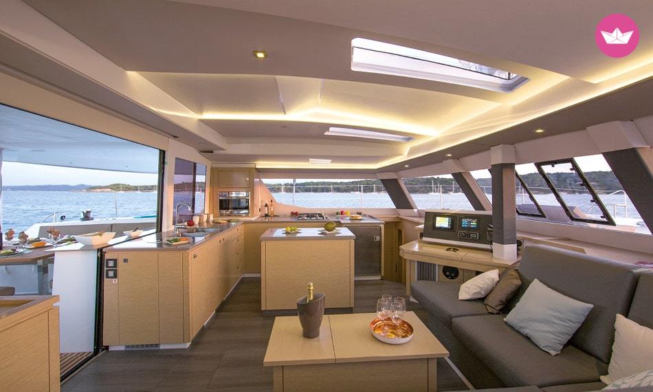 Description of Helene's catamaran , Bonjour à tous, Nous vous proposons à la location ce splendide Fountaine Pajot Saba 50, ce dernier a été mis à l'eau en 2018. En parfait état, il sera idéal pour des croisières en famille ou entre amis au départ de la Martinique. Embarquement à partir de 18h00, la première nuit s'effectue à quai. Le lendemain après la mise-en-main, vous pourrez partir en mer. Pour un débarquement à 10h00, prévoyez un retour à quai entre 8h00 et 8h30. ** 3 Formules de location sont possibles : - Sans équipage (seulement à partir de 1 semaine de location) - Avec skipper - All inclusive : skipper, hôtesse, pension complète, tous frais annexes compris sauf transfert aéroport. A partir de 6 personnes, il faut prévoir un supplément de 50€ par tête. Nous pouvons vous conseiller plusieurs itinéraires selon la durée de votre projet de navigation. Par exemple : - Martinique / Grenadines : 11 jours (10 nuits) - Martinique / Saint Lucia : 8 jours (7 nuits) - Martinique / Guadeloupe : 11 jours (10 nuits) - Martinique / Dominique : 8 jours (7 nuits) ** Inclus dans les tarifs : - Location du bateau avec son matériel de navigation et de sécurité - Guide nautique, cartes marines, équipement complet de cuisine - Bimini, GPS, Pilote, Centrale de navigation, Radio, MP3, Prise 220V - Literie (draps, oreillers, taies d'oreillers, serviettes de toilette, torchons) ** Non Inclus dans les tarifs : - Transport aérien et transfert - Nettoyage (pas obligatoire sauf pour one-way) - Fuel - Autres consommables : Essence HB, eau et gaz - Taxes douanières - La caution (Visa, master Card ou Eurocard uniquement) ** Options sur demande : - Skipper : 180€ par jour + nourriture - Hôtesse : 140€ par jour + nourriture - Rachat de franchise avec caution réduite (obligatoire si location avec skipper) : 30 à 50€ par jour. - Nettoyage : 250€ - Changement d'équipage à la base (nuit à quai, linge, eau, électricité, service clientèle) : 200€ - Palmes, masques, tubas : Gratuit selon disponibilité - Stand-up paddle / kayak : Prix sur demande - BBQ : Gratuit selon disponibilité