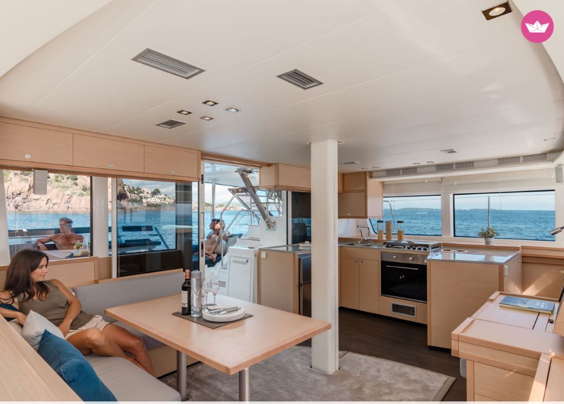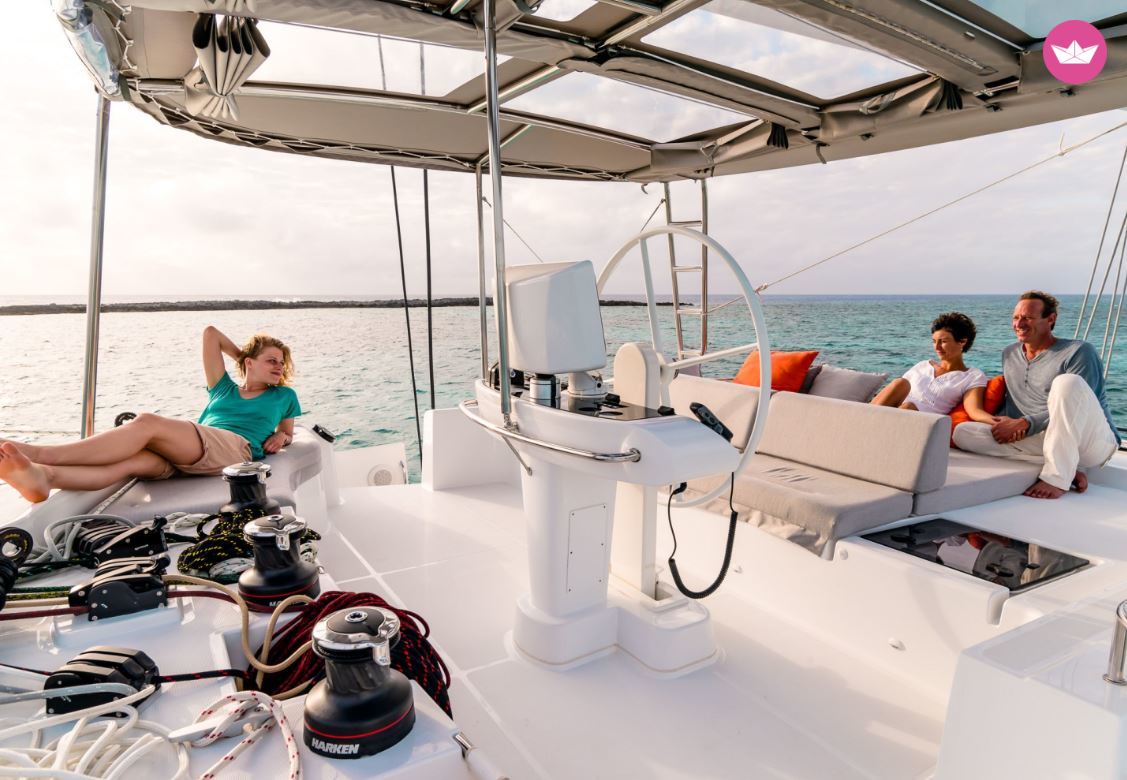 Description of Helene's catamaran , Bonjour, Nous proposons à la location avec skipper ce superbe Lagoon 52 de 2016, disponible au départ du Marin. Notre skipper vous fera découvrir les plus beaux endroits de cette région magnifique et propice à la détente et à la navigation. ** 2 Formules de location sont possibles : - Avec skipper - All inclusive : skipper, hôtesse, pension complète, tous frais annexes compris sauf transfert aéroport. A partir de 6 personnes, il faut prévoir un supplément de 50€ par tête. Nous pouvons vous conseiller plusieurs itinéraires selon la durée de votre projet de navigation. Par exemple : - Martinique / Grenadines : 11 jours (10 nuits) - Martinique / Saint Lucia : 8 jours (7 nuits) - Martinique / Guadeloupe : 11 jours (10 nuits) - Martinique / Dominique : 8 jours (7 nuits) ** Inclus dans les tarifs : - Location du bateau avec son matériel de navigation et de sécurité - Guide nautique, cartes marines, équipement complet de cuisine - Bimini, GPS, Pilote, Centrale de navigation, Radio, MP3, Prise 220V - Literie (draps, oreillers, taies d'oreillers, serviettes de toilette, torchons) - Prestation du skipper ** Non Inclus dans les tarifs : - Transport aérien et transfert - Nettoyage (pas obligatoire sauf pour one-way) - Fuel - Autres consommables : Essence HB, eau et gaz - Taxes douanières - La caution (Visa, master Card ou Eurocard uniquement) ** Options sur demande : - Hôtesse : 140€ par jour + nourriture - Rachat de franchise avec caution réduite (obligatoire si location avec skipper) : 30 à 50€ par jour. - Nettoyage : 185€ - Changement d'équipage à la base (nuit à quai, linge, eau, électricité, service clientèle) : 200€ - Palmes, masques, tubas : Gratuit selon disponibilité - Stand-up paddle / kayak : Prix sur demande - BBQ : Gratuit selon disponibilité