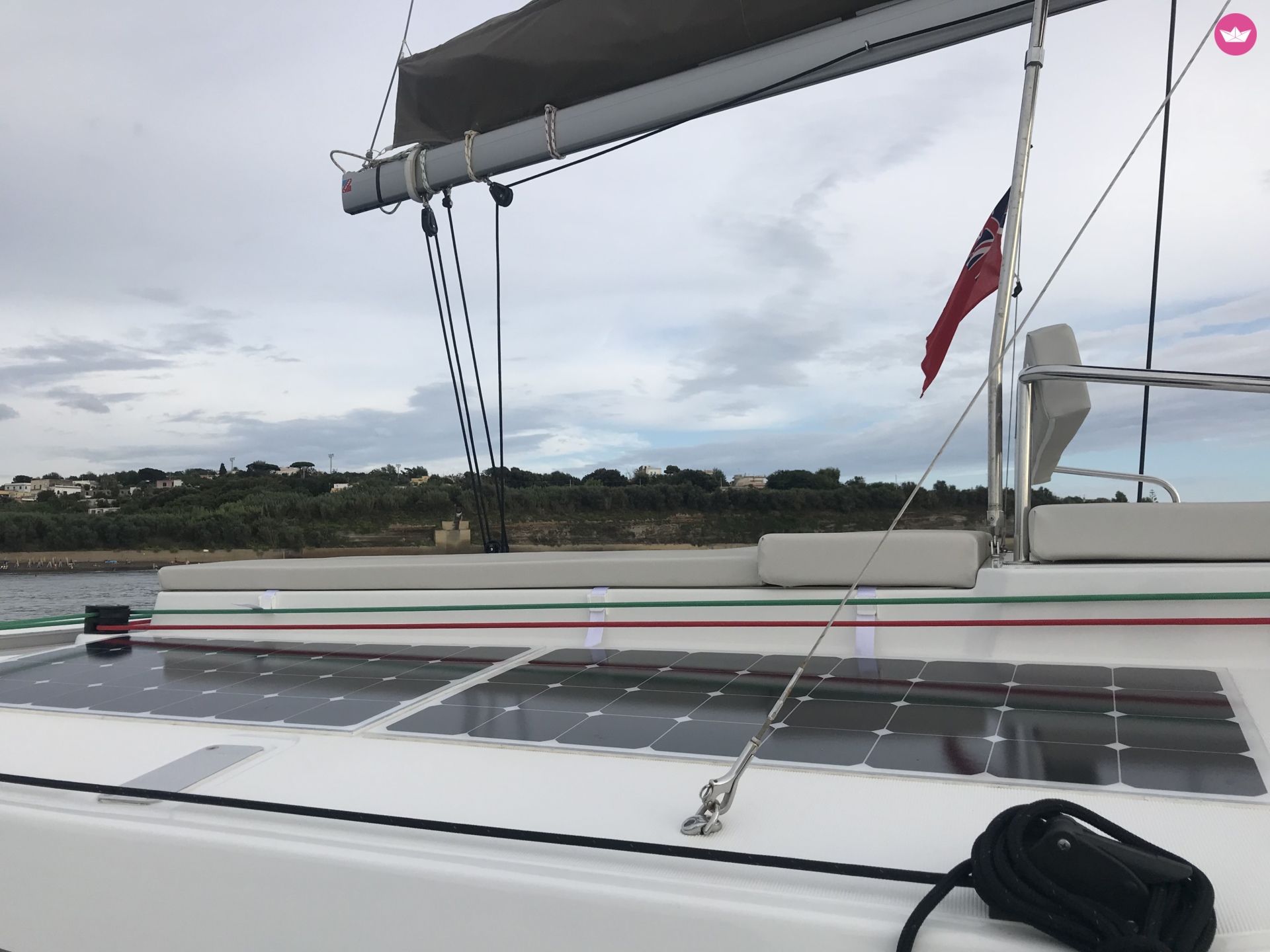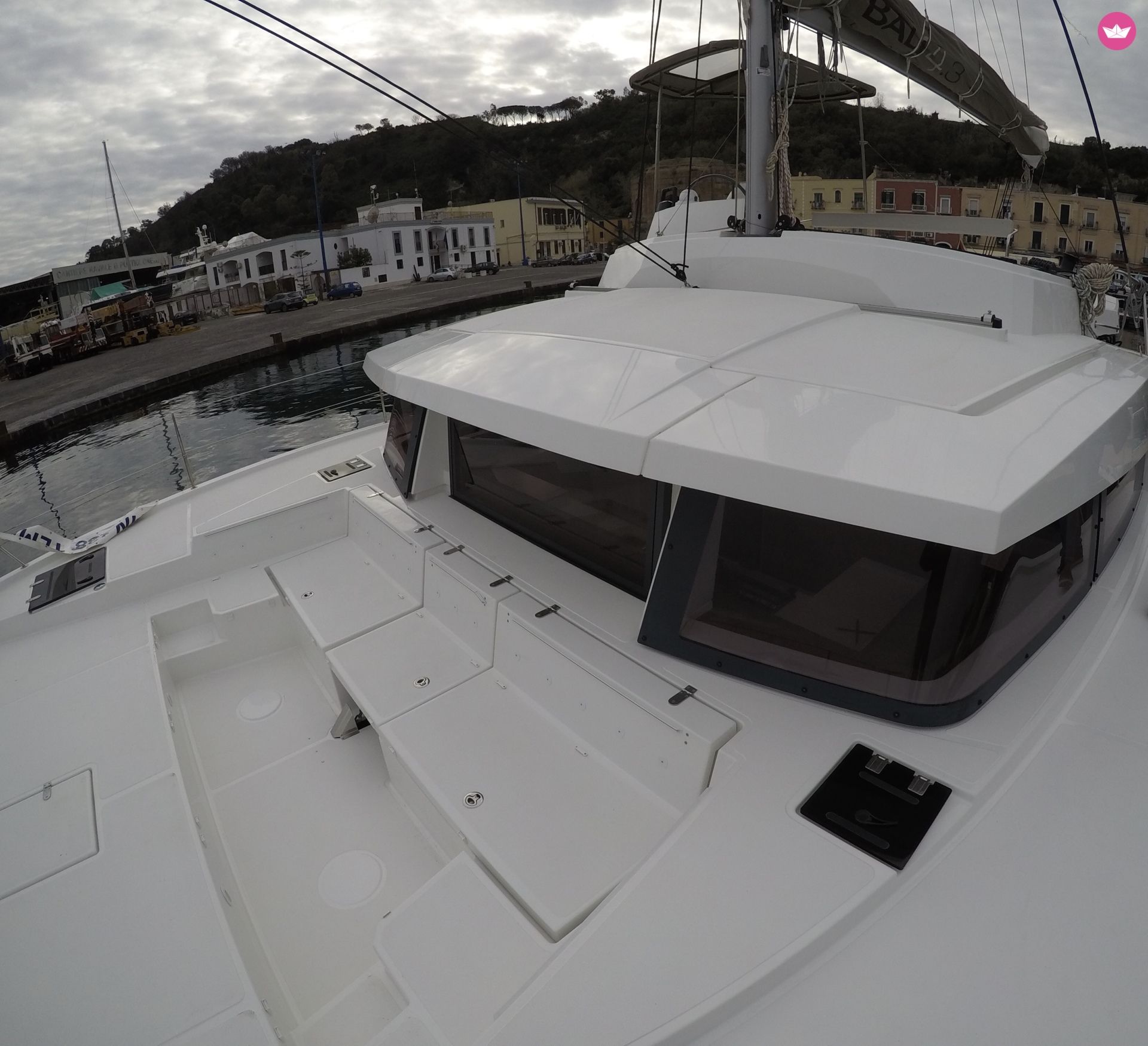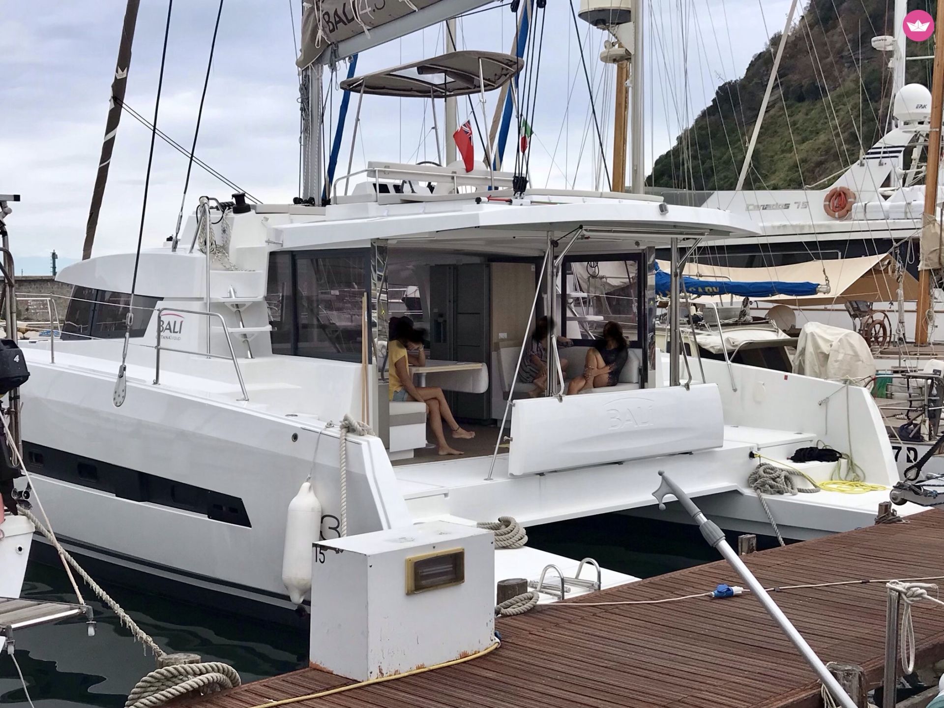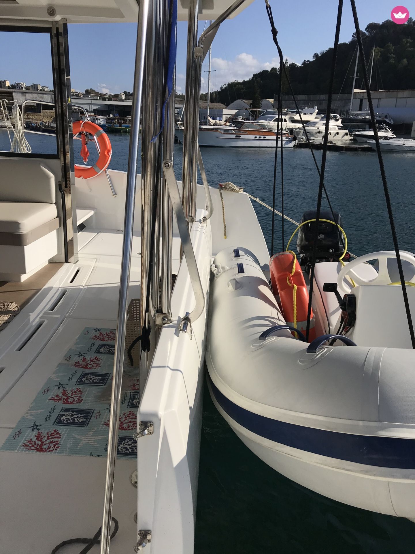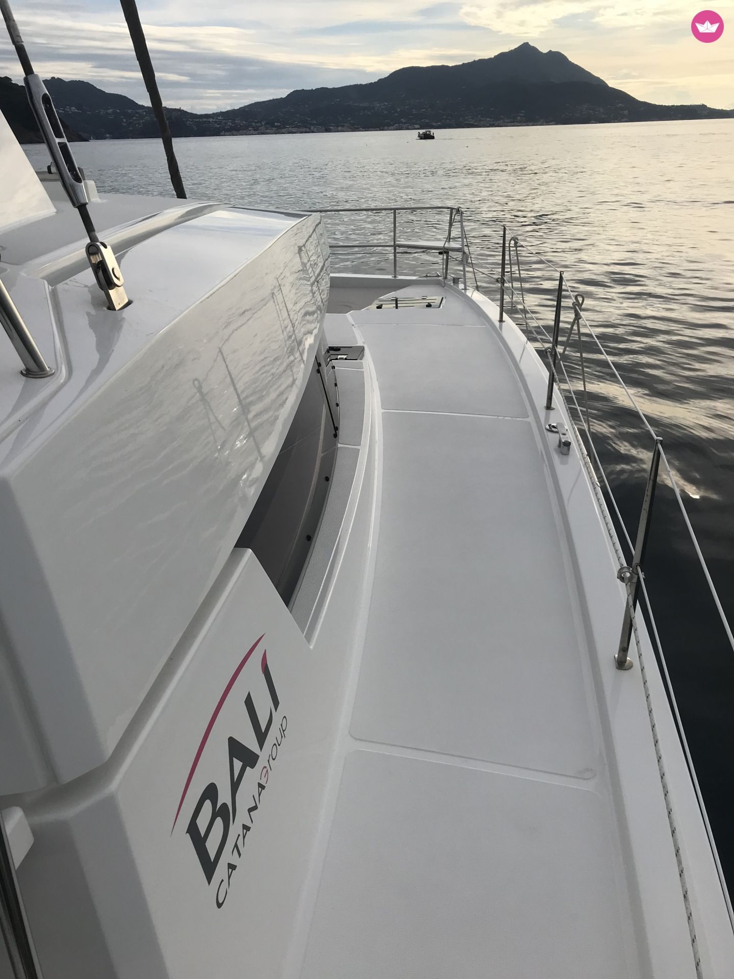 Description of Gianni's catamaran , Noleggia questo meraviglioso Bali 4.3 anno Agosto 2018!! Dispone di 4 cabine matrimoniali, 3 bagni di cui uno con doccia separata, cabina marinaio + bagno marinaio a prua. Dinette enorme con grande tavolo interno, comfort assicurato da spazi strabilianti. Cucina attrezzata di tutto come anche le cabine con tre bagni di cui uno doppio con doccia separata. Equipaggiato di numerosi optional per rendere il piu confortevole possibile la tua vacanza. Fly, cucina con forno, forno microonde, fornello a quattro fuochi, frigo all'americana a due porte, produttore di ghiaccio, divani esterni a prua e a poppa, prendisole prua e su fly. Questo è l'unico catamarano in commercio che a prua non ha la classica (e dolorosa) rete, ha invece un ampio prendisole con cuscini convertibile in tavolo per cene fantastiche al chiaro di luna. Con questo meraviglioso catamarano potrete navigare alla volta delle meravigliose isole di Capri, Procida e Ischia o anche le misteriose Pontine! Il costo dello skipper è di 150€/giorno, al checkout invece verranno effettuate le pulizie finali che hanno un costo di 200€ per periodo continuo. Lenzuola ed asciugamani € 25/pers. Tovaglie, posate piatti e pentole inclusi nel noleggio. I costi di carburante, cambusa ed eventuali ormeggi non sono inclusi nel prezzo. Contattatemi su Catamaran Yacht Charter per maggiori informazioni!