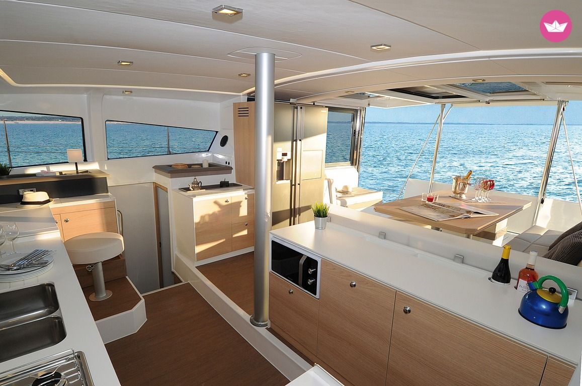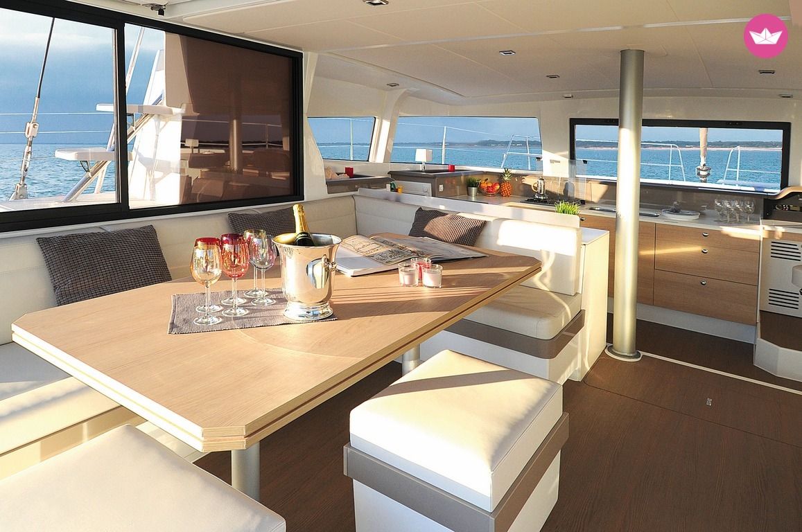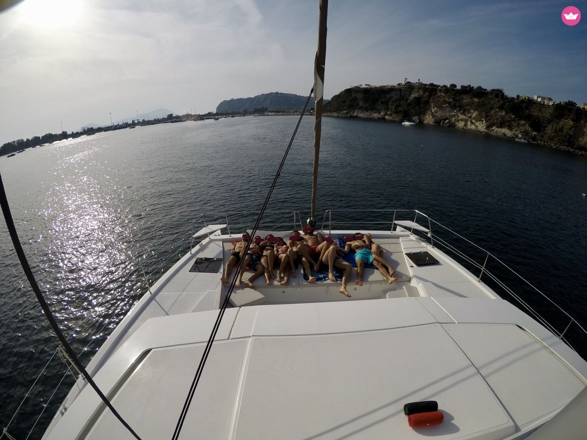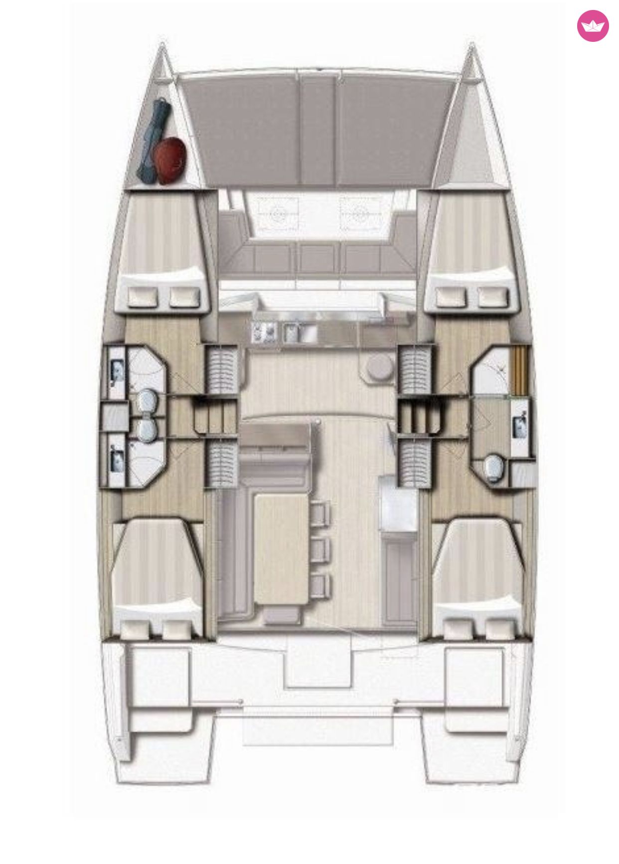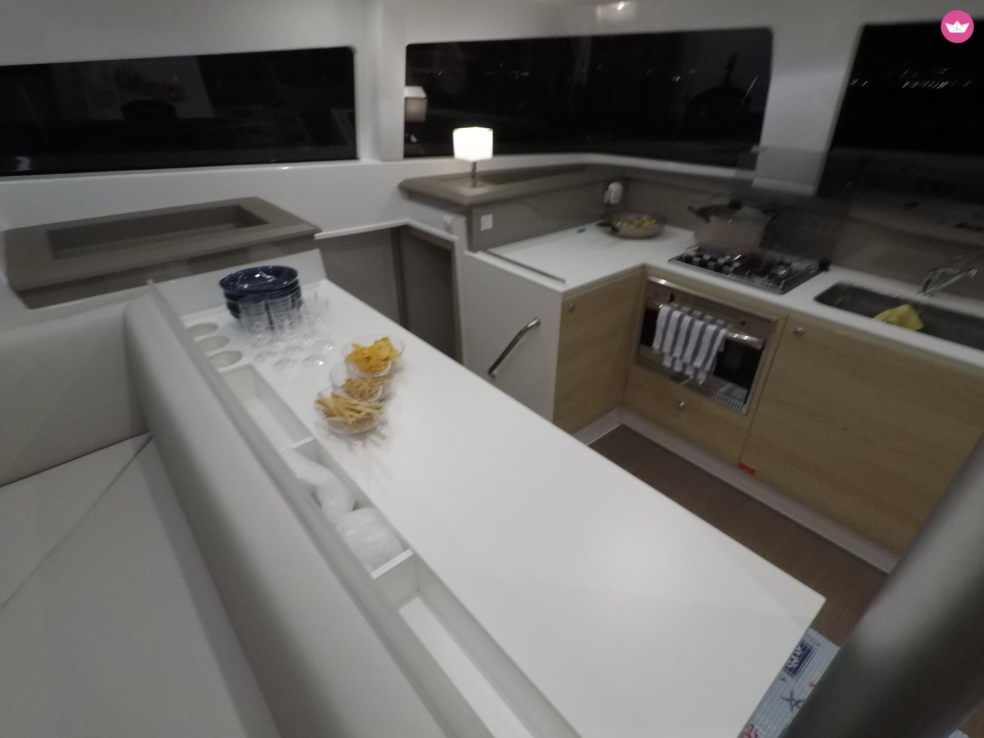 Description of Gianni's catamaran , Noleggia questo meraviglioso Bali 4.3 anno Agosto 2018!! Dispone di 4 cabine matrimoniali, 3 bagni di cui uno con doccia separata, cabina marinaio + bagno marinaio a prua. Dinette enorme con grande tavolo interno, comfort assicurato da spazi strabilianti. Cucina attrezzata di tutto come anche le cabine con tre bagni di cui uno doppio con doccia separata. Equipaggiato di numerosi optional per rendere il piu confortevole possibile la tua vacanza. Fly, cucina con forno, forno microonde, fornello a quattro fuochi, frigo all'americana a due porte, produttore di ghiaccio, divani esterni a prua e a poppa, prendisole prua e su fly. Questo è l'unico catamarano in commercio che a prua non ha la classica (e dolorosa) rete, ha invece un ampio prendisole con cuscini convertibile in tavolo per cene fantastiche al chiaro di luna. Con questo meraviglioso catamarano potrete navigare alla volta delle meravigliose isole di Capri, Procida e Ischia o anche le misteriose Pontine! Il costo dello skipper è di 150€/giorno, al checkout invece verranno effettuate le pulizie finali che hanno un costo di 200€ per periodo continuo. Lenzuola ed asciugamani € 25/pers. Tovaglie, posate piatti e pentole inclusi nel noleggio. I costi di carburante, cambusa ed eventuali ormeggi non sono inclusi nel prezzo. Contattatemi su Catamaran Yacht Charter per maggiori informazioni!
