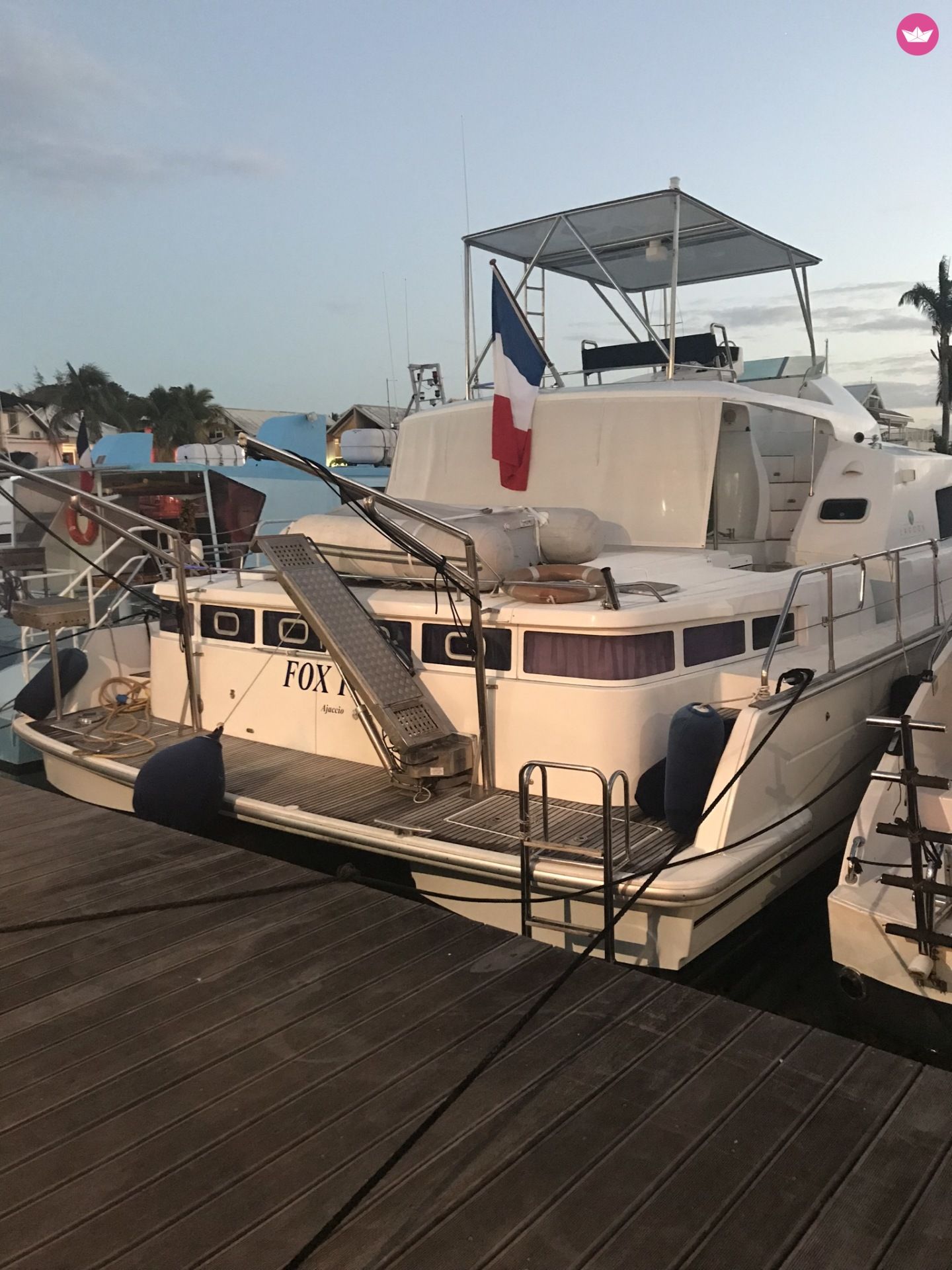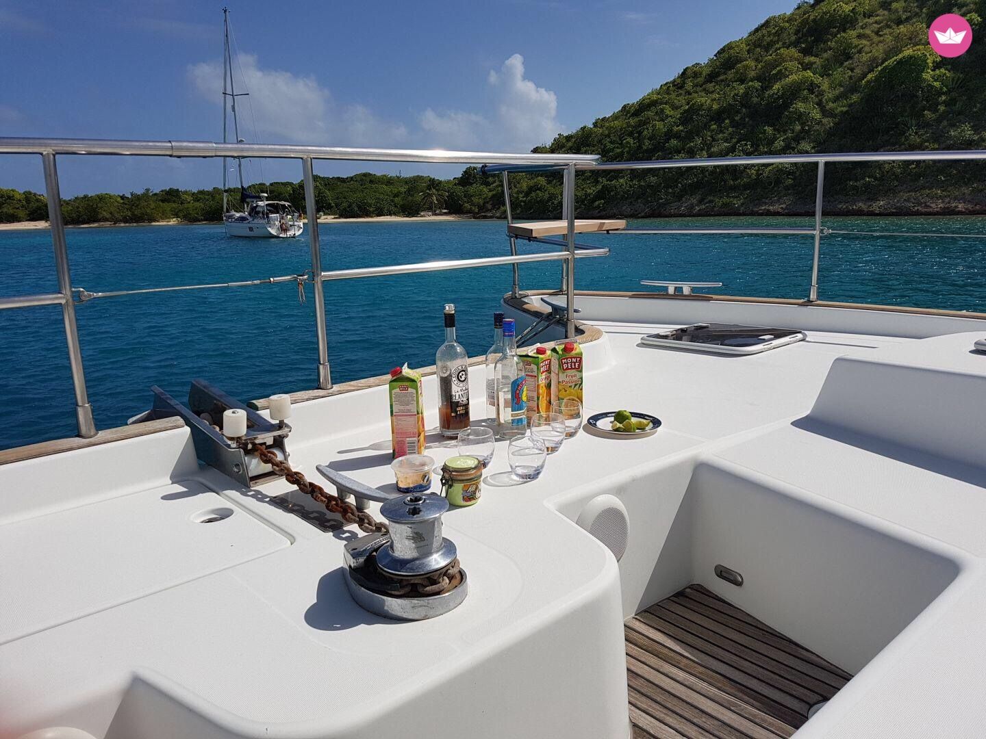 Description of Jean François's catamaran , FOX IV est un catamaran moteur de 43 pieds (13,10m x 6,42 m), motorisé par deux Volvo KAMD 300. Très bon comportement marin. Parfaitement armé pour des croisières dans son secteur de navigation. (GrandeCaraibe) Centrales de navigation, et radar sur les deux ponts. Équipé d’un desalinisateur, panneaux solaires 2000w, générateur électrique, 3 frigos, four, équipement complet pour cuisine, barbecue, plages et leurs coussins, hamac, télévision, climatisation, machine à laver « d’à point ». Canne à grande pêche.... Autonomie moyenne 900 miles. L'avitaillement et le carburant ne sont pas compris dans le prix, ils sont à régler sur place. La Caraïbe se caractérise par des secteurs de navigation qui offrent aux plaisanciers une grande diversité de paysages. Des plages de sables blonds, aux petites criques encastrées, des petits restaurants improbables, aux palaces atypiques, une faune marine variée et des couchers de soleil uniques. Bref le bonheur n’est pas que « dans le pré »! Ce bateau je l’ai désiré afin de vivre et faire partager les émotions qui sont les miennes sur cette mer Caraïbe riche de son histoire et de ses aventures. Ici, à bord, comme à terre, c’est le partage, l’amité, le respect et l’amour des belles aventures et des merveilleux trésors naturels qui nous unissent. Si il y reste en vous une part de Jack London ou de Moitessier je vous attends. Jean- François.