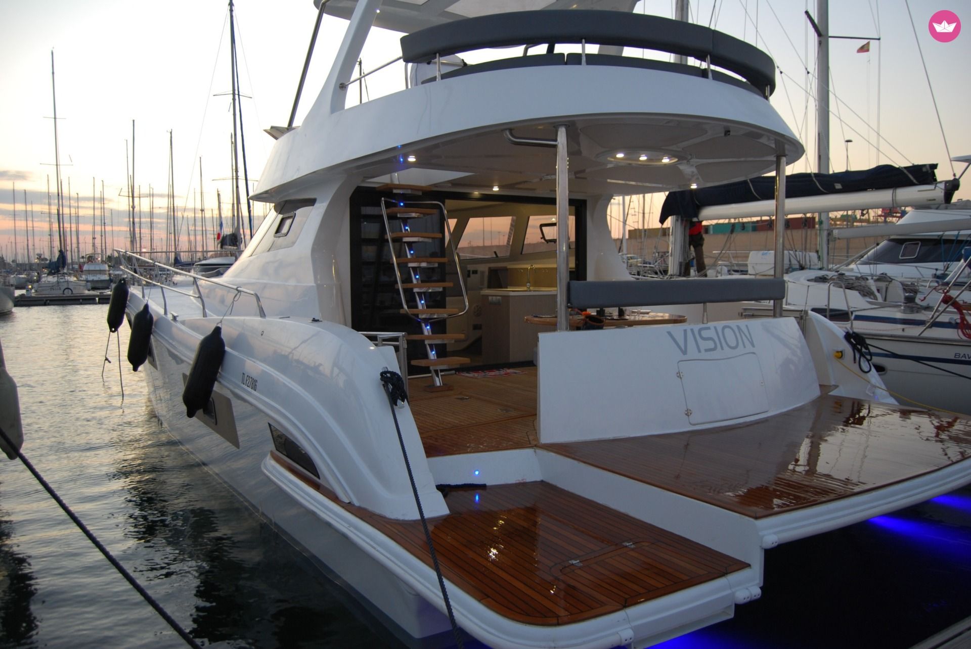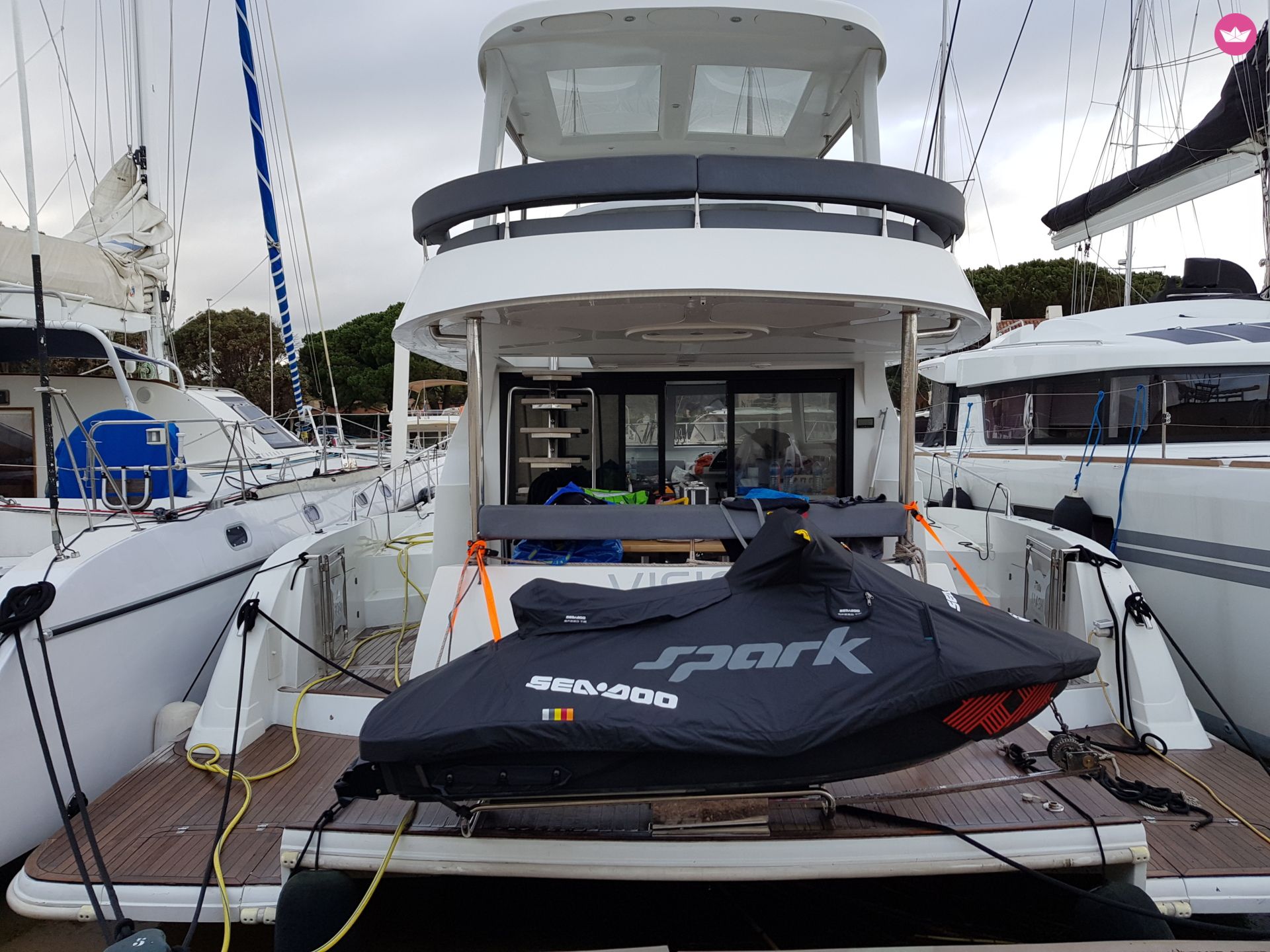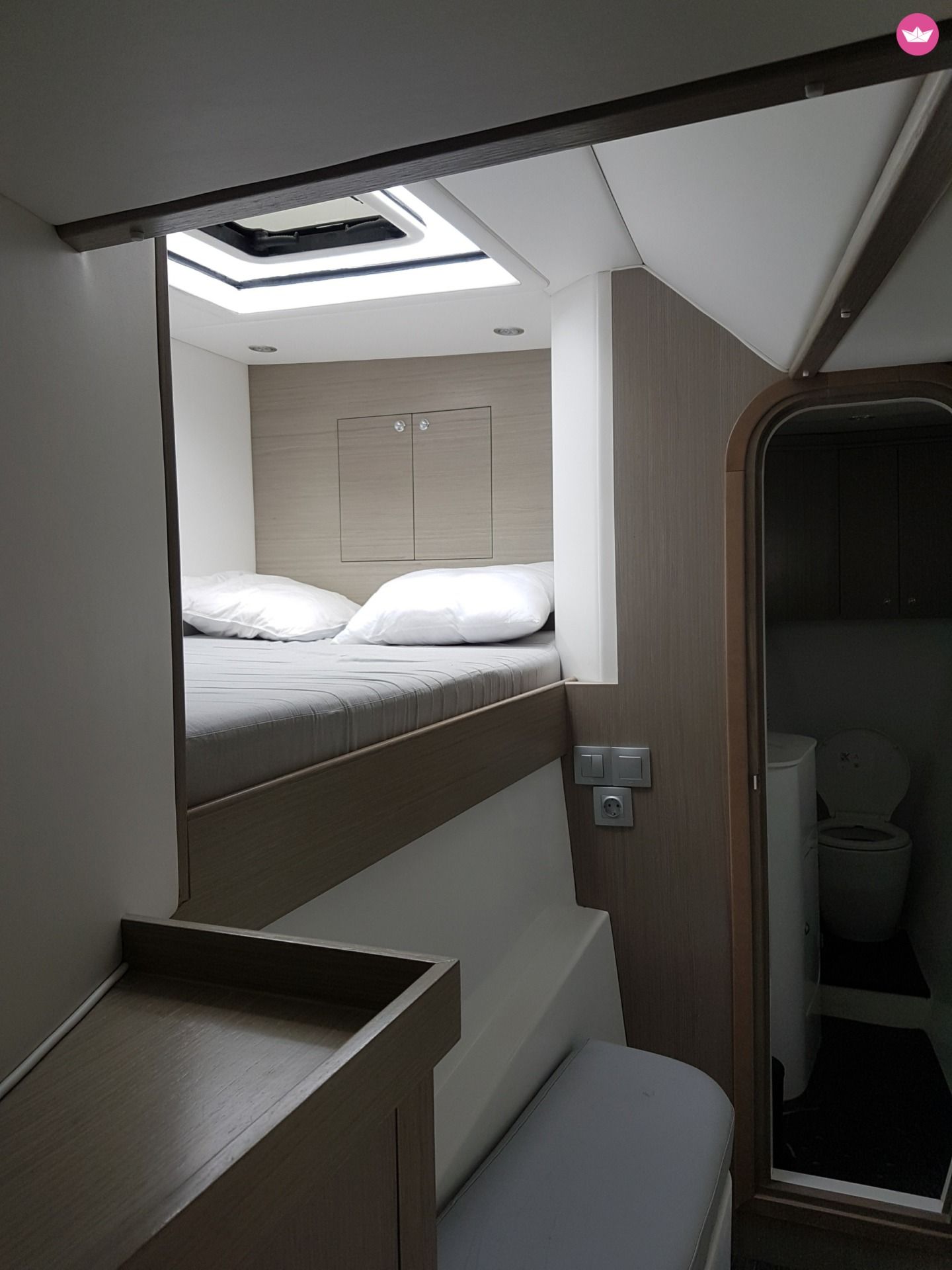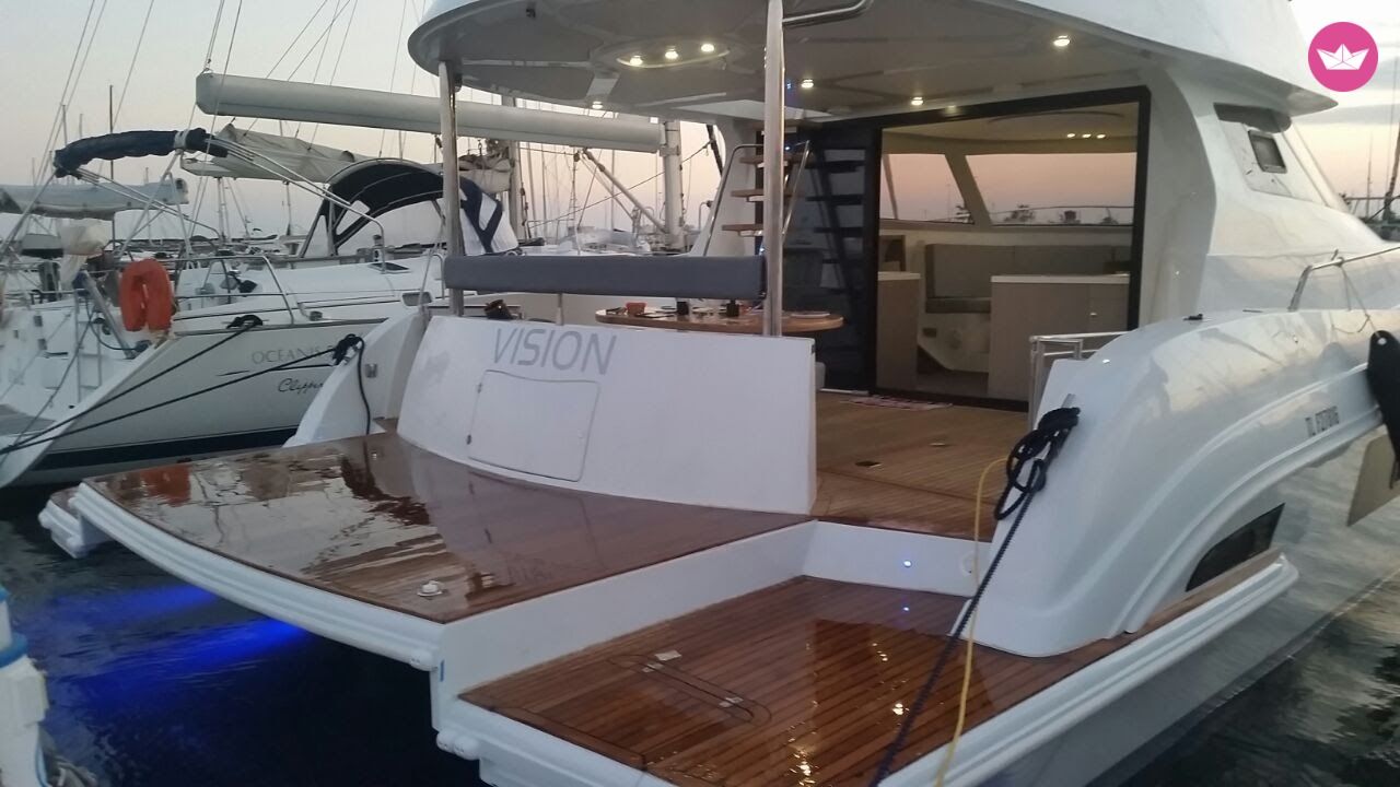 Description of François 's catamaran « VISION » This 43S catamaran of Flash catamaran shipyard is a multihull of 2015, diesel 2x220cv (very low consumption) with all the latest equipment. Generator, air conditioning, microwave oven, cooking hob., 2 fridges, 2 TV, radio cd bluetooth, watermaker (use optional), washing machine, led lihgting, electric windlass remote control, autopilot, GPS, plotter, depth sounder, 2 electric WC, fishing rod holder, double cockpit, … It is equipped with 4 double cabins with 2 showers. A large beach back in real teak. A bright square (convertible) Fly a large 18m2 equipped with a sink, fridge, sunbathing, a large table, a back seat. Discover the French Riviera with the island of Frioul, the creeks between Marseille and Cassis, the Hyeres islands (Porquerolles, Port Cros, Levant) St. Tropez, Corsica, the beauty of the Mediterranean, turquoise waters. Memories and scenery insured. The note Captain : « VISION » has allowed us to make a family trip for several months from Spain to Croatia. We hope that your time here give you so many memories. We set the price of the rental very attractive way so that you are likely to share this experience. Possibility of having a Paddle board masks and snorkels, … Rental with or without skipper ( with conditions). Offshore safety equipment new regulations in 2015. Good navigation to ALL !