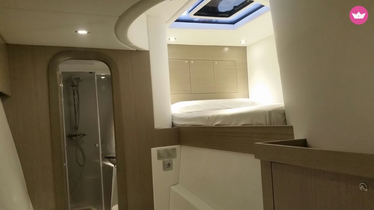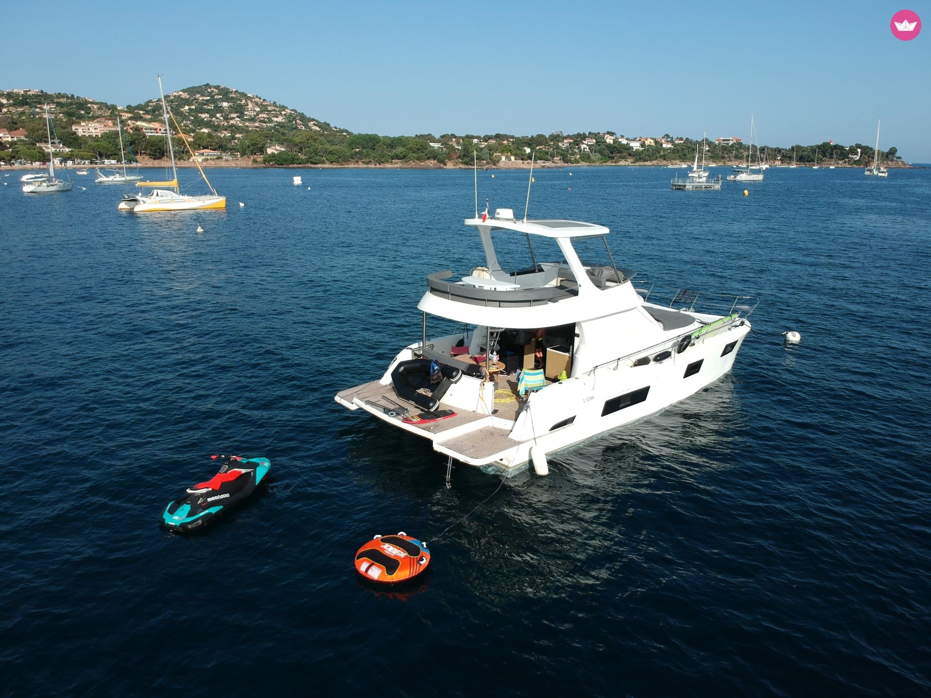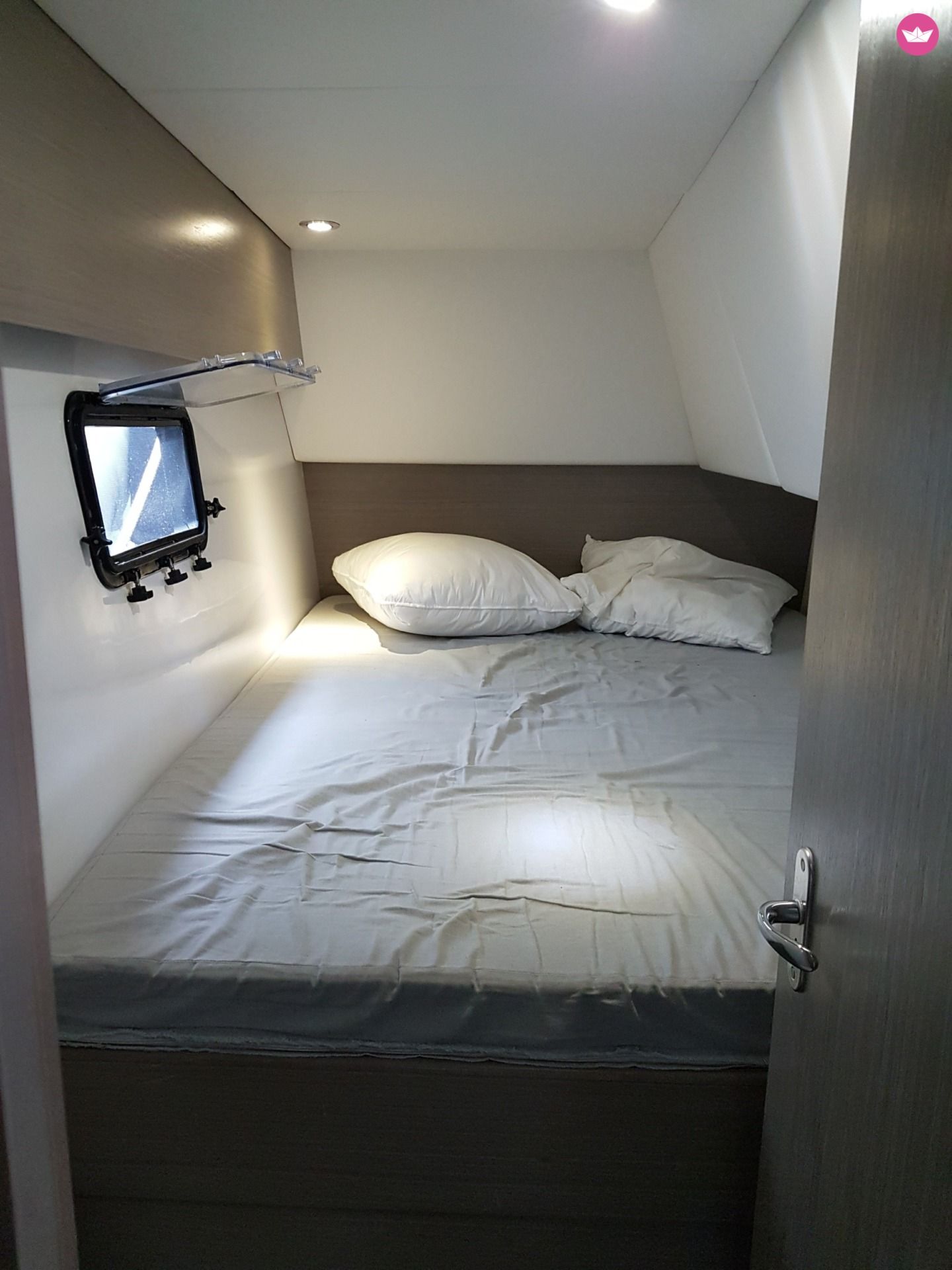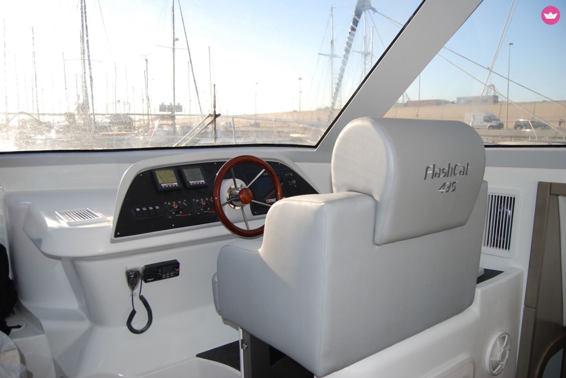 Description of François 's catamaran « VISION » This 43S catamaran of Flash catamaran shipyard is a multihull of 2015, diesel 2x220cv (very low consumption) with all the latest equipment. Generator, air conditioning, microwave oven, cooking hob., 2 fridges, 2 TV, radio cd bluetooth, watermaker (use optional), washing machine, led lihgting, electric windlass remote control, autopilot, GPS, plotter, depth sounder, 2 electric WC, fishing rod holder, double cockpit, … It is equipped with 4 double cabins with 2 showers. A large beach back in real teak. A bright square (convertible) Fly a large 18m2 equipped with a sink, fridge, sunbathing, a large table, a back seat. Discover the French Riviera with the island of Frioul, the creeks between Marseille and Cassis, the Hyeres islands (Porquerolles, Port Cros, Levant) St. Tropez, Corsica, the beauty of the Mediterranean, turquoise waters. Memories and scenery insured. The note Captain : « VISION » has allowed us to make a family trip for several months from Spain to Croatia. We hope that your time here give you so many memories. We set the price of the rental very attractive way so that you are likely to share this experience. Possibility of having a Paddle board masks and snorkels, … Rental with or without skipper ( with conditions). Offshore safety equipment new regulations in 2015. Good navigation to ALL !