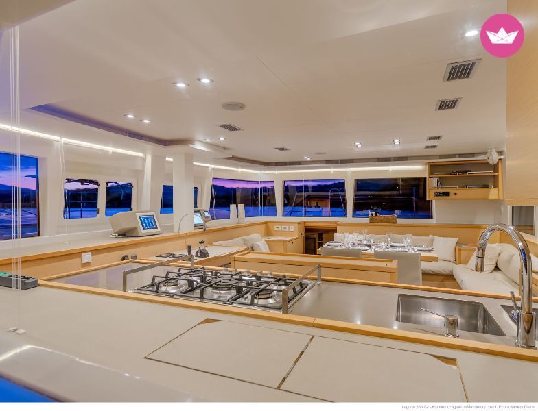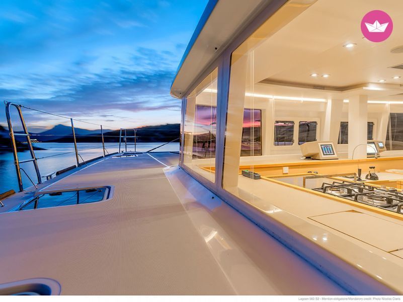 Description of Vera's catamaran Our catamaran Serenity is a Lagoon 560 that is available for skippered charters only from Marmaris in Turkey. The catamaran can comfortably accommodate 8 guests in cabins and is fully equipped with AC facilities. Its elegant style and its spacious interior will offer you a luxurious and comfortable cruising experience. Included - Final Cleaning - One set of Bed linen per crew member EXTRAS: - Transitlog + blue card (obligatory): 110€ - Spinnaker: 180€ - Outboardengine: 75€ - Towels: 5€ - Extra ben linen: 10€ - Skipper: 140€ + food - Hostess: 100 + food - Wifi: 30€ - Transfer on Request - Shopping Service on Request Message us on Catamaran Yacht Charter if you are interested. We hope to see you soon on board!
