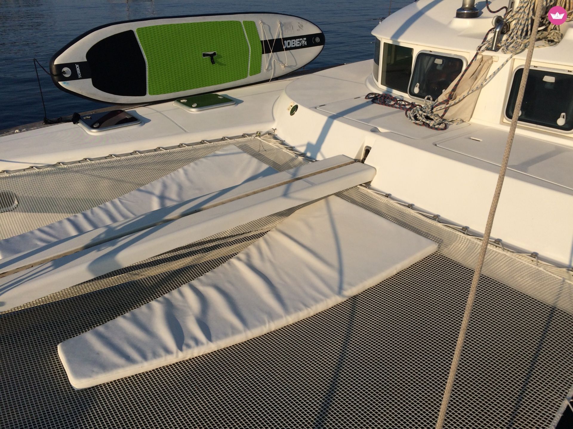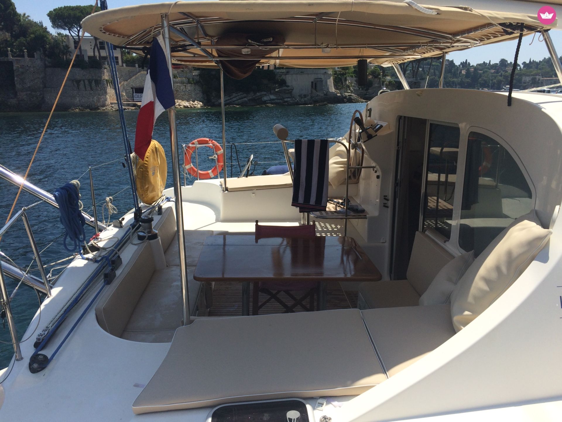 Description of Jean-Philippe's catamaran , Bonjour, Le catamaran est disponible sur la zone côtière de Monaco, Cannes jusqu’à Porquerolles incluant tous les ports intermédiaires ainsi qu'en Corse. D’une longueur de 12,37 m sur 7,09 de large, offrant une surface de pont de 88 M2, le Lagoon 410 est un catamaran à voile parfait pour une navigation côtière ou en haute mer, entre amis ou avec sa petite famille. Son architecture intérieure est remarquable. Les espaces de vie sont très bien pensés : Le carré et le cockpit sont conviviaux, avec tables et sièges confortables, le coin cuisine équipé. Le tout profite de la lumière naturelle grâce à de larges ouvertures. Dans les coques, les cabines offrent tout le confort nécessaire pour un sommeil réparateur. Rapide, agréable à manœuvrer et compact, la stabilité du catamaran en navigation ou lors des escales au mouillage vous aidera considérablement à vous détendre tout au long de votre voyage! Le bateau a bénéficier d’un refit complet en 2016 et 2017 y compris un nouveau gréement. Il dispose de nombreux éléments de sécurité pour une navigation en toute tranquillité de jour comme de nuit si nécessaire. Tel que le radar, gilets de sauvetage gonflable automatique adultes et enfants, bracelet d’homme à la mer relier au GPS. Inclus : Draps et serviette inclus Equipements snorkeling adulte / enfant Stand up paddle sur demande Annexe avec moteur hors bord ** Sur Demande : Skipper : 250€ par jours en sus. Pour de plus amples renseignements, vous pouvez me contacter sur la messagerie Catamaran Yacht Charter.