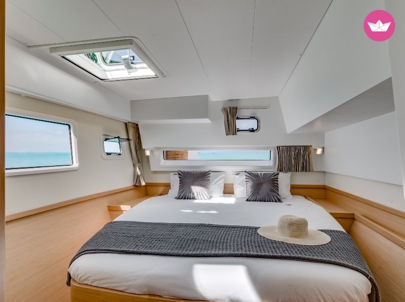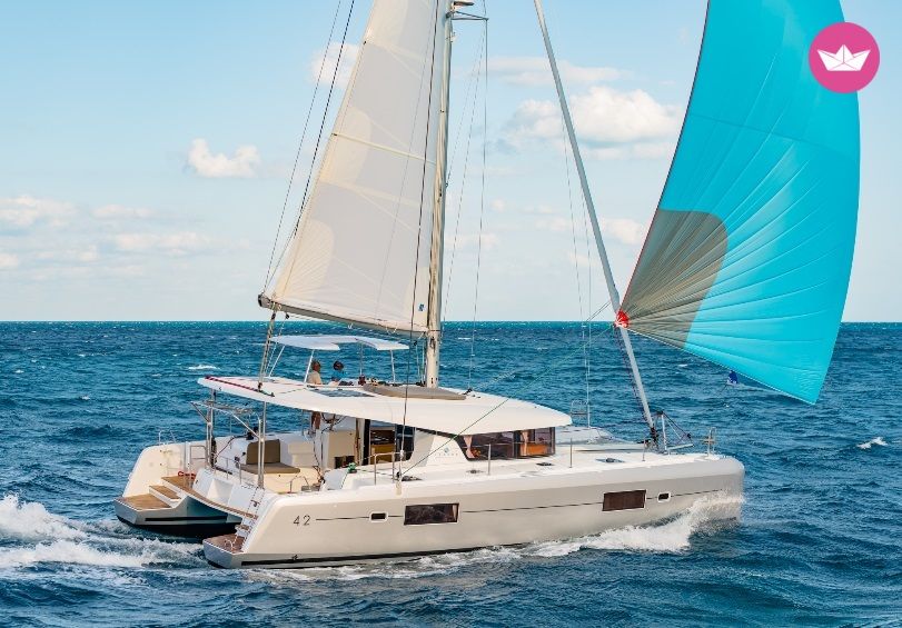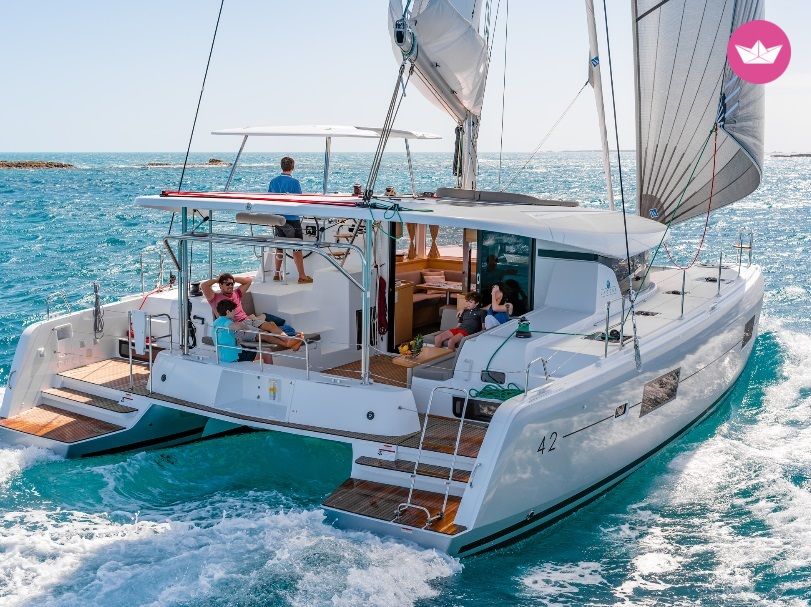 Description of Angelos's catamaran Welcome to our beautiful and adventurous Catamaran! Lagoon 42 is a 12.8m catamaran available for bareboat and skippered charters. Our boat is perfect for 8 guests with a captain, but if you wish to have be the captain by your self, the boat can host up to 10 people! The yacht combines luxury with comfort, as it has 4 cabines that can offer you a cozy feeling. But our services don't stop here! Even though our kitchen is fully equiped, with fridge, refridgerator, oven, we can also provide a variety of delicious food, snacks and drinks that can make your trips to our beautiful seasides unforgettable! Our charters offer the chance to travel to our breathtaking islands, and taste our traditional and delicious dishes! Extras: - With skipper (150€) - Food and beverages - Port fees - Fuel We will be happy to receive messages from you and, of course, sail with our Lagoon 42!