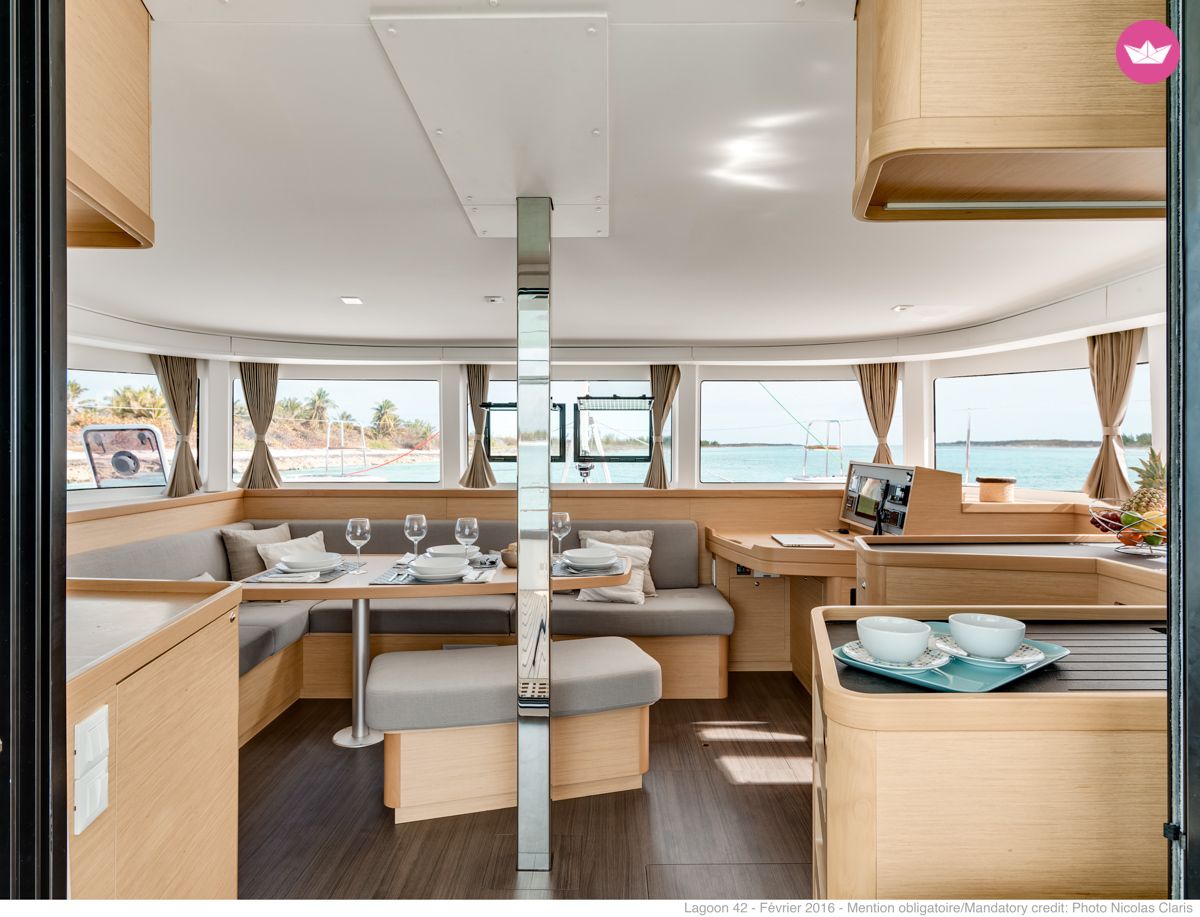 Description of Eric's catamaran , Bonjour, Venez découvrir ce nouveau catamaran LAGOON 42 de 2019 à la location! Ce dernier est au départ de Hyères et vous avez la possibilité de le louer avec ou sans skipper pour une capacité maximale de 12 personnes! En effet, ce dernier possède quatre cabines possédant chacune une salle d'eau avec WC. En comptant le carré transformable vous aurez donc la possibilité de loger tous vos invités. Ce dernier mesure 12,8 mètres de long et 7,7 mètres de large. Vous aurez ainsi tout l'espace nécessaire à votre confort! Venez donc découvrir ce superbe catamaran et naviguez aux alentours de Hyères mais également Cannes, Monaco, l'Italie ou même la Corse! En famille ou entre amis, vous adorerez votre séjour! Les options sont les suivantes: - Nuit à bord la veille (à partir de 19h) : 150 € - Literie (draps, oreillers, couvertures) : 40 € / cabine - Moteur HB 5ch : 60€/semaine - Serviettes : 15 € / personne - Skipper & Formateur : 220 € / jour - Paddle : 145 € / semaine - Canne à pêche : 65€/pers REGLEMENT : Acompte de 30 % à la réservation puis solde un mois avant votre départ. FORFAITS OBLIGATOIRES : Nettoyage de 240€ EMBARQUEMENT / DEBARQUEMENT : 9h00 / 14h30 (vide de tout effet personnel) Pour de plus amples informations, n'hésitez pas à nous contacter via la messagerie de Catamaran Yacht Charter. Cordialement.